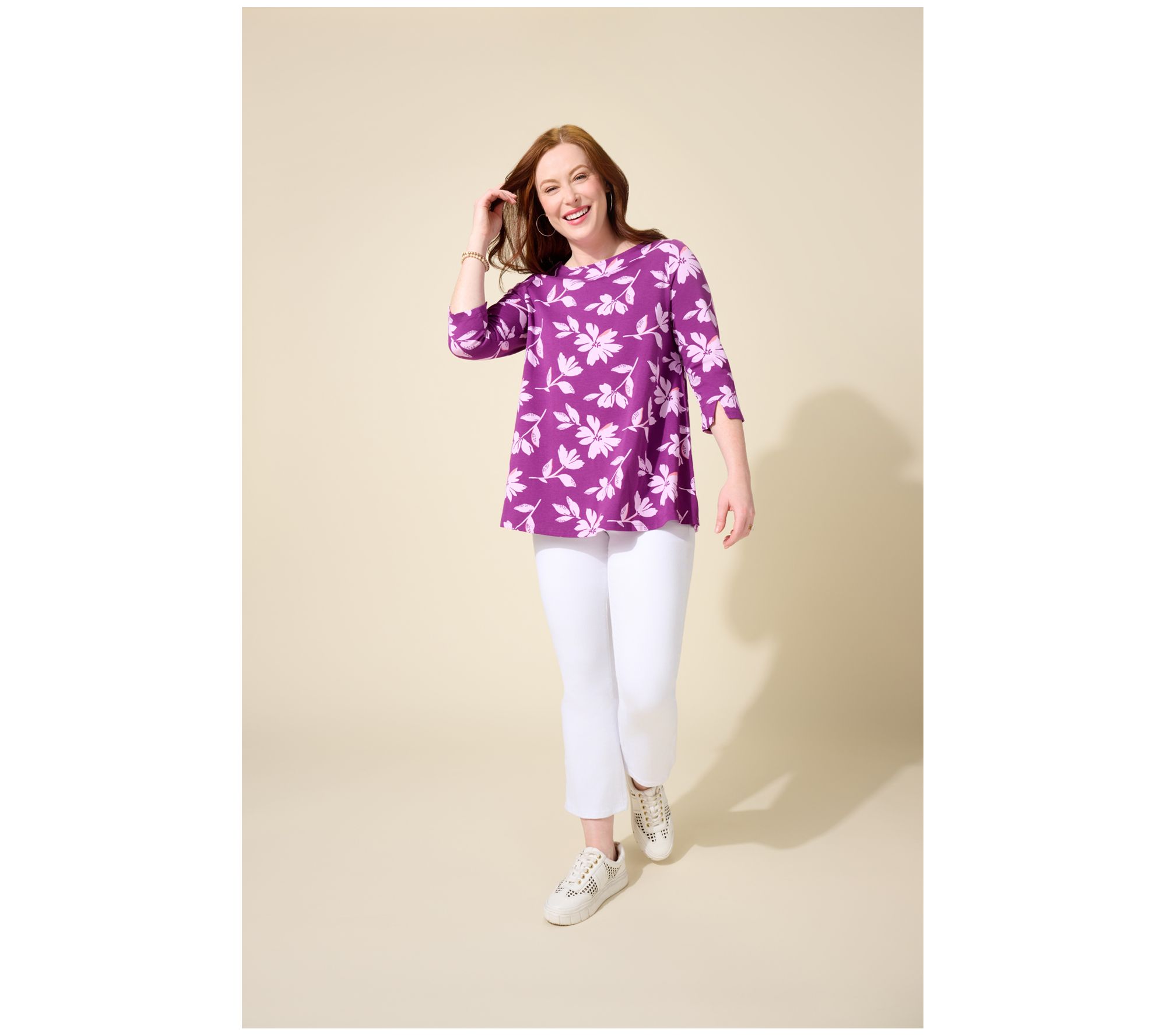 Caution: May cause continuous twirling! Turn heads while turning up the fun with this Denim & Co. swing tunic. The playful shape provides flirty, flowy movement, while the vibrant print brings instant personality. Style it with jeans, leggings, or trousers -- this tunic is your ticket to feel-good fashion that's ready for anything. From Denim & Co.® Fashions.