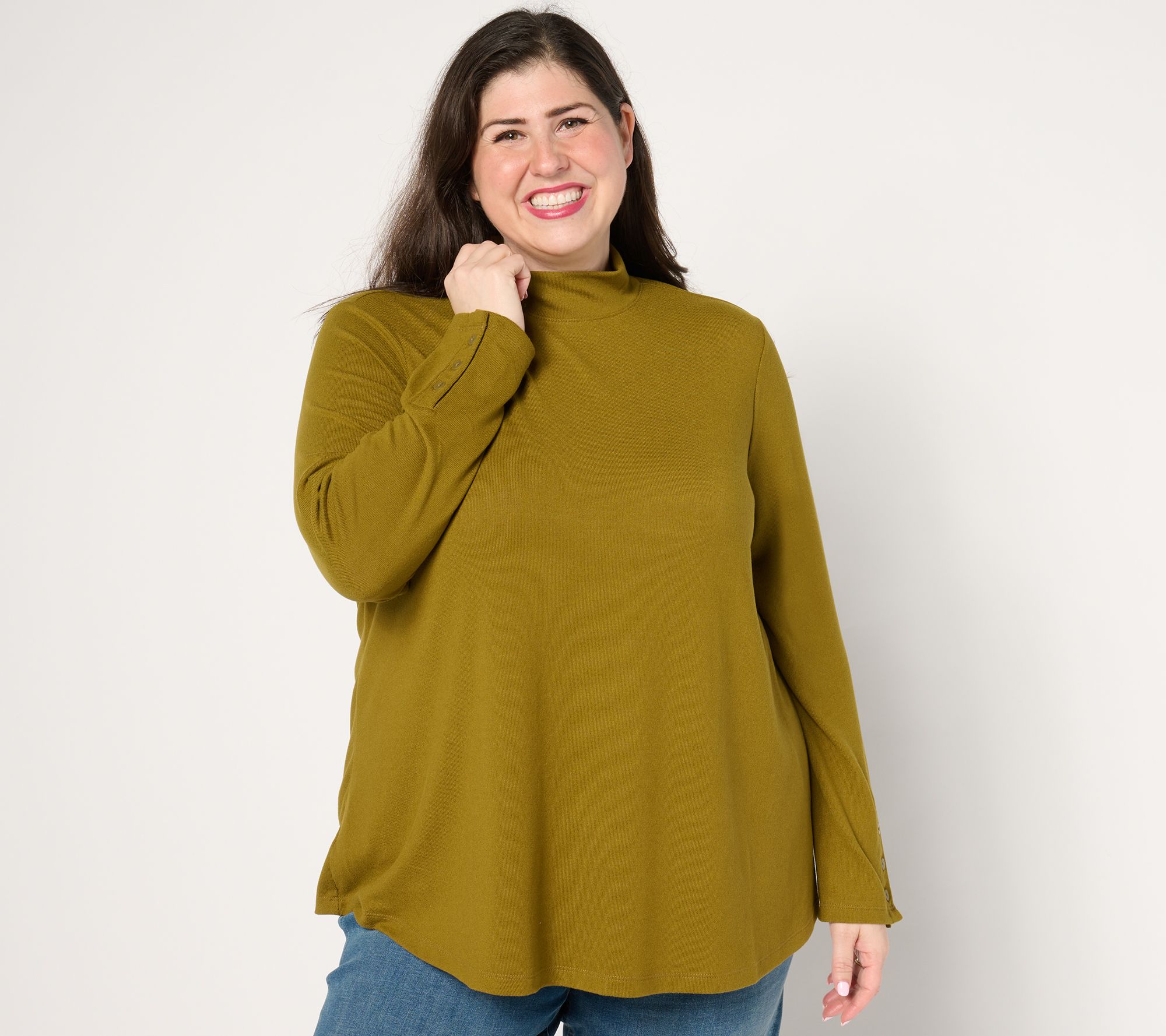 Updating your seasonal closet with cozy fashion? This Heavenly Jersey mock neck top is your new go-to for effortless style and comfort. With a slightly swing body shape, it complements all your favorite jeans and boots. From Denim & Co.® Fashions.