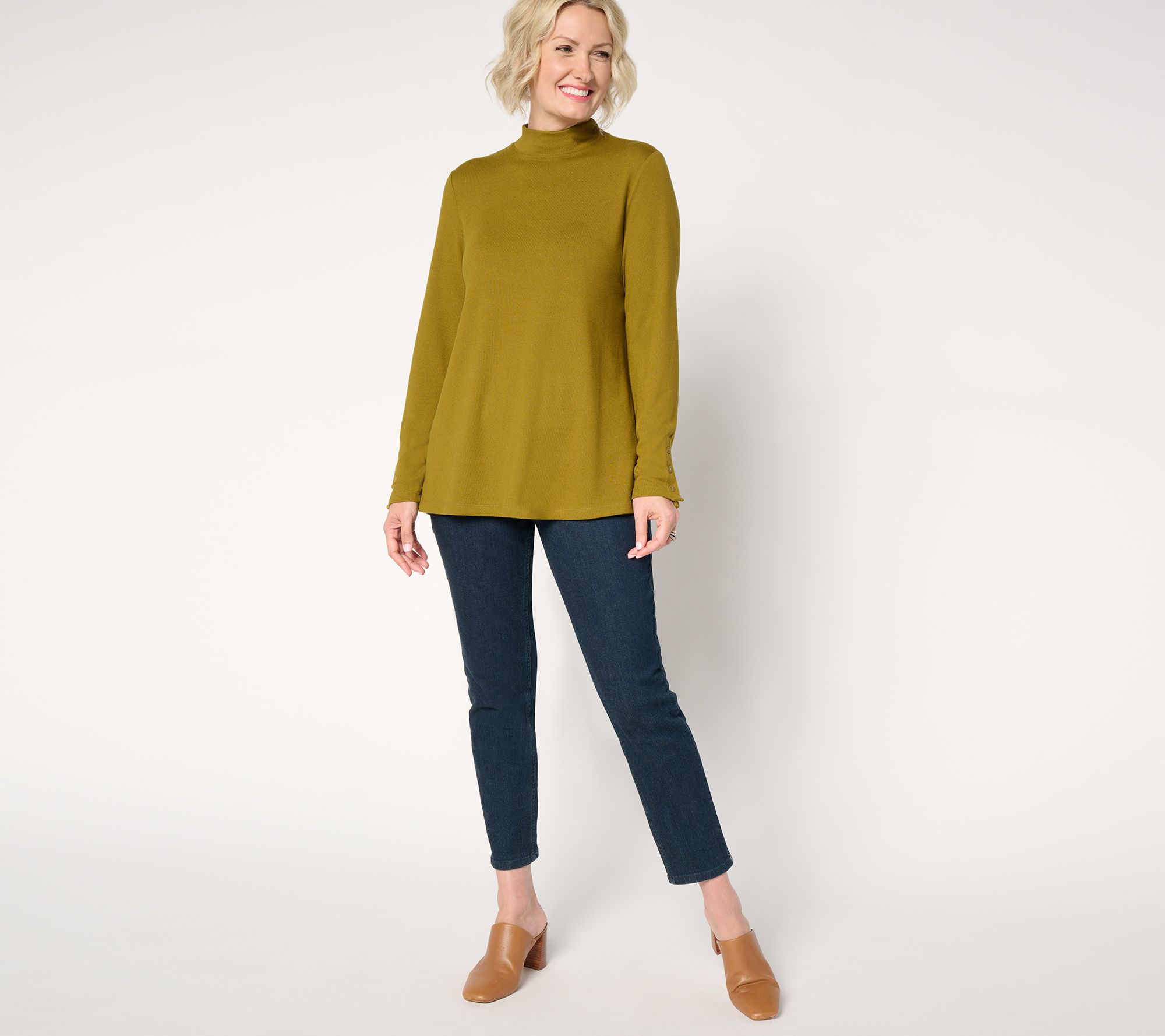 "As Is" Denim & Co. Regular Heavenly Jersey Mock Neck Tunic