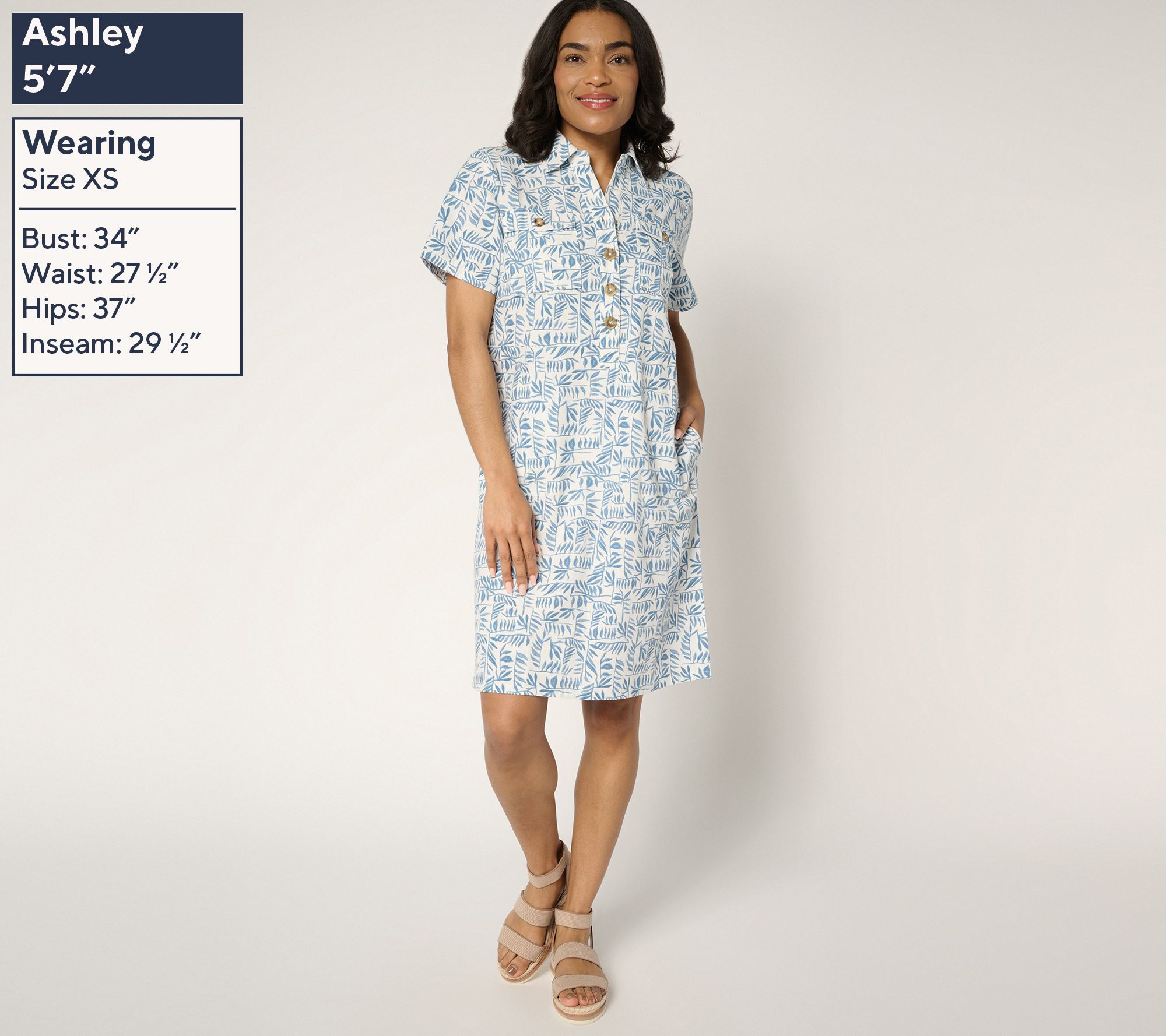 "As Is" Denim & Co. Regular Linen Blend Print or Solid Henley Dress