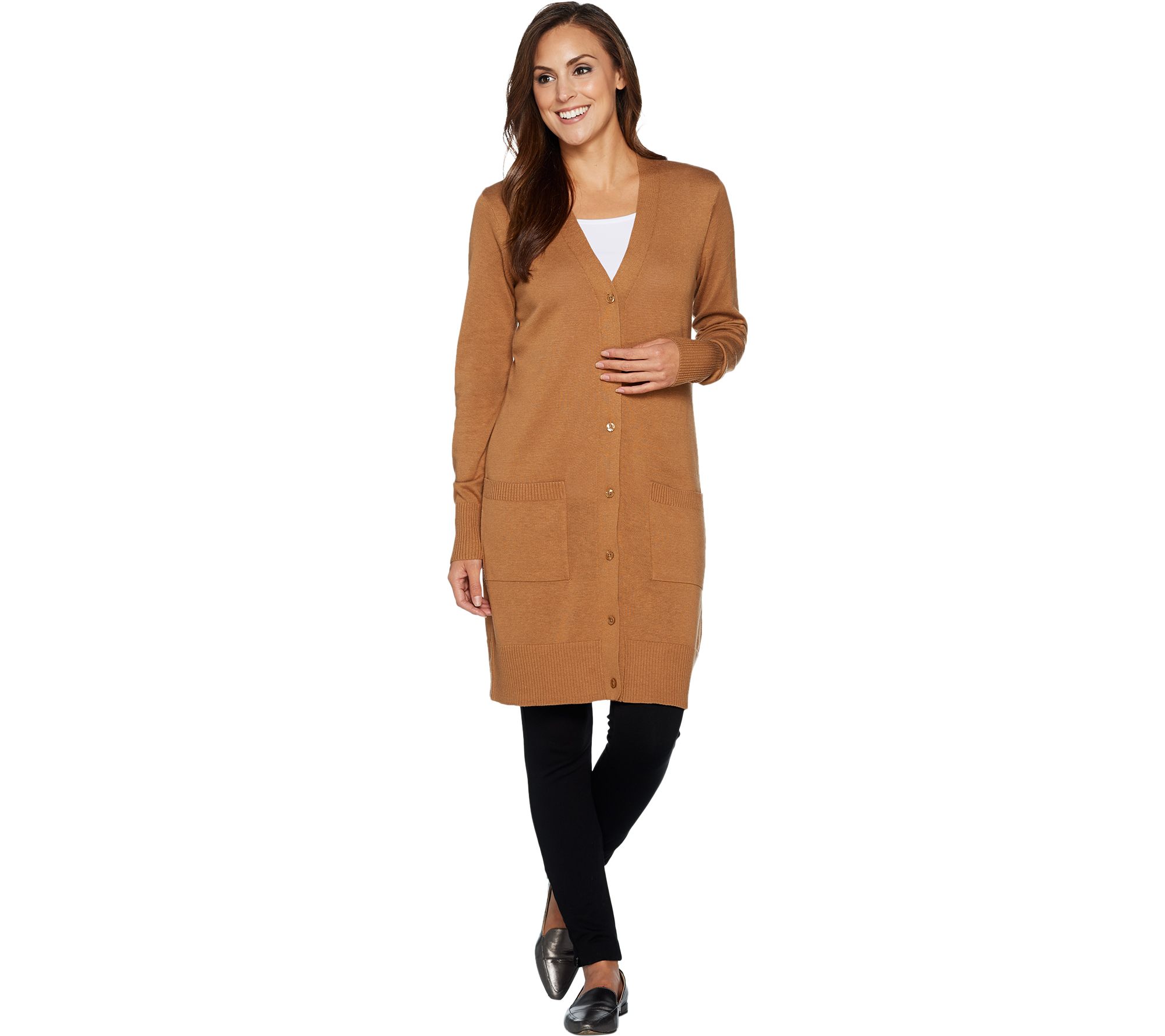 Chill in the air? Layer this classically styled, long, button-front cardigan with jeans or leggings to stay comfy and covered all season long. From Denim & Co.(R) Fashions.