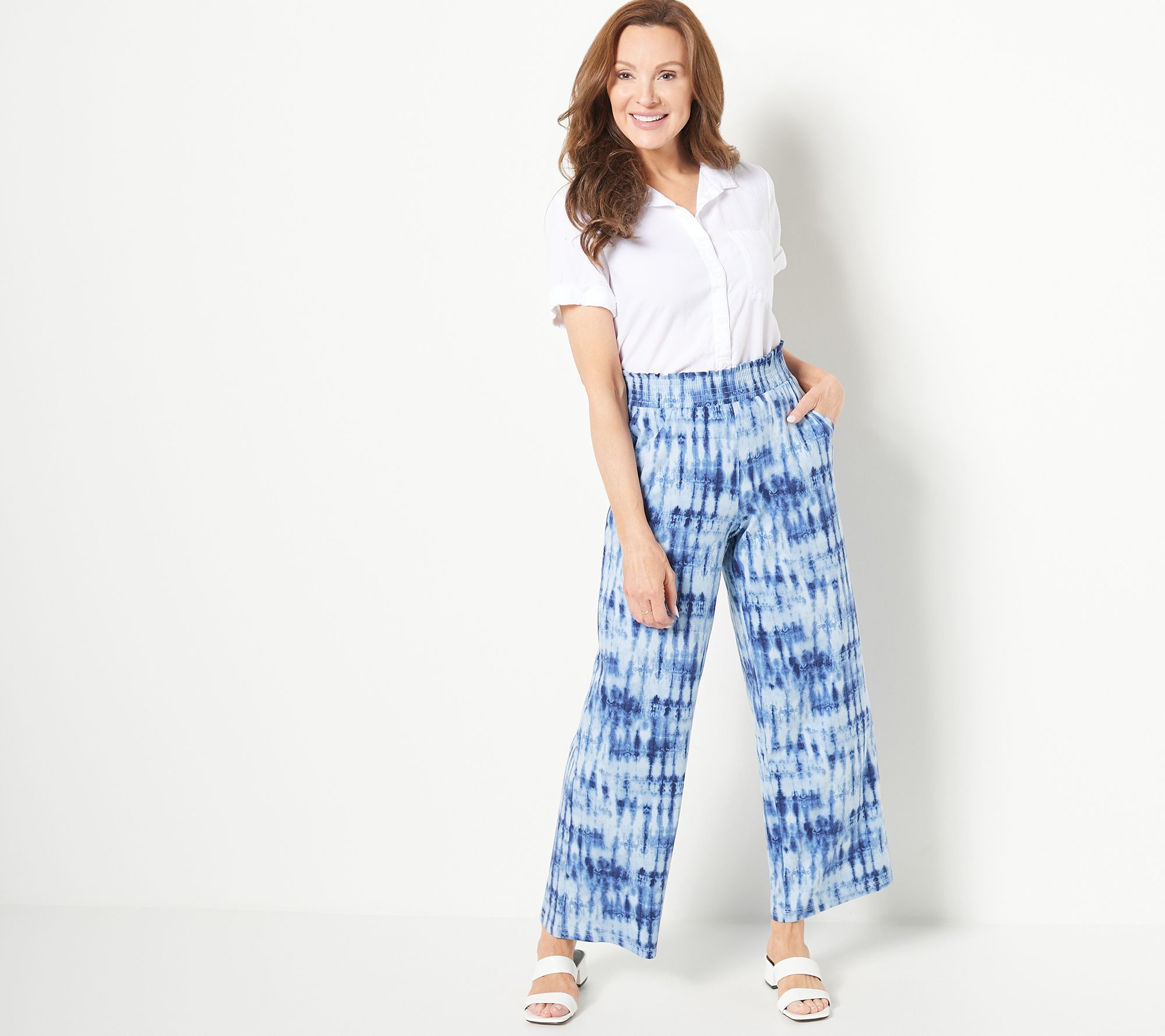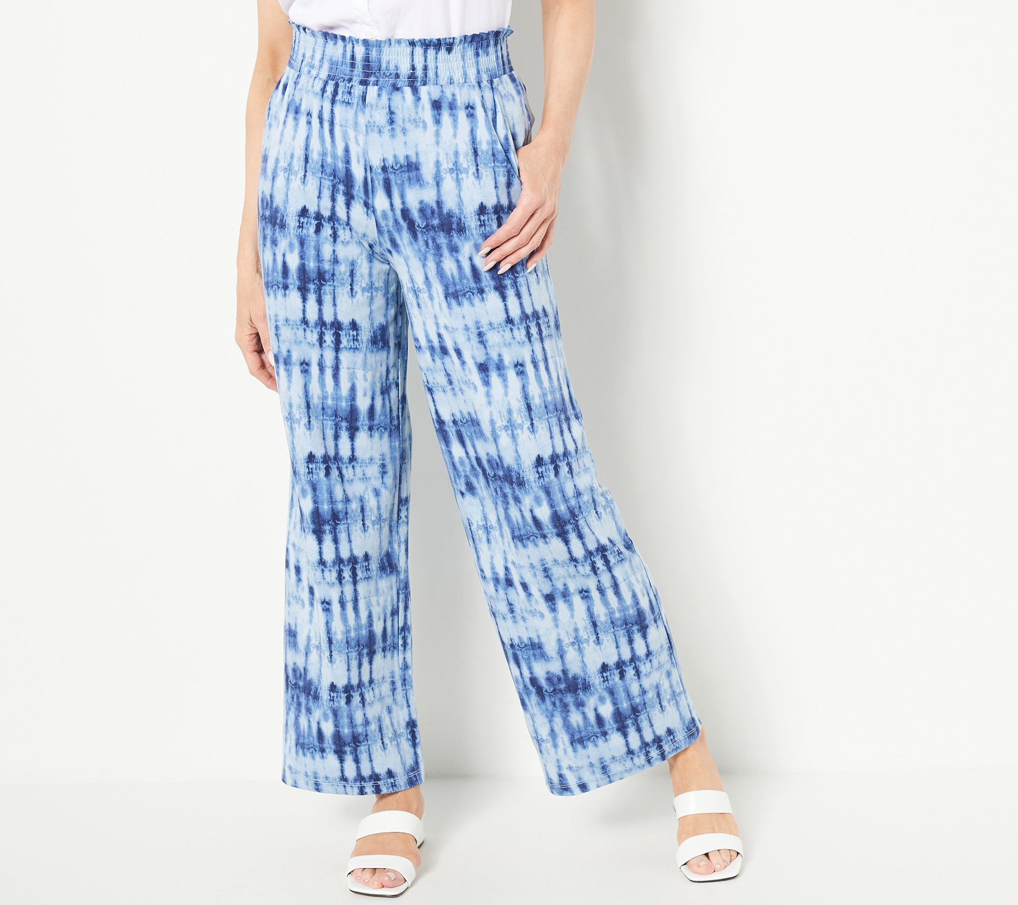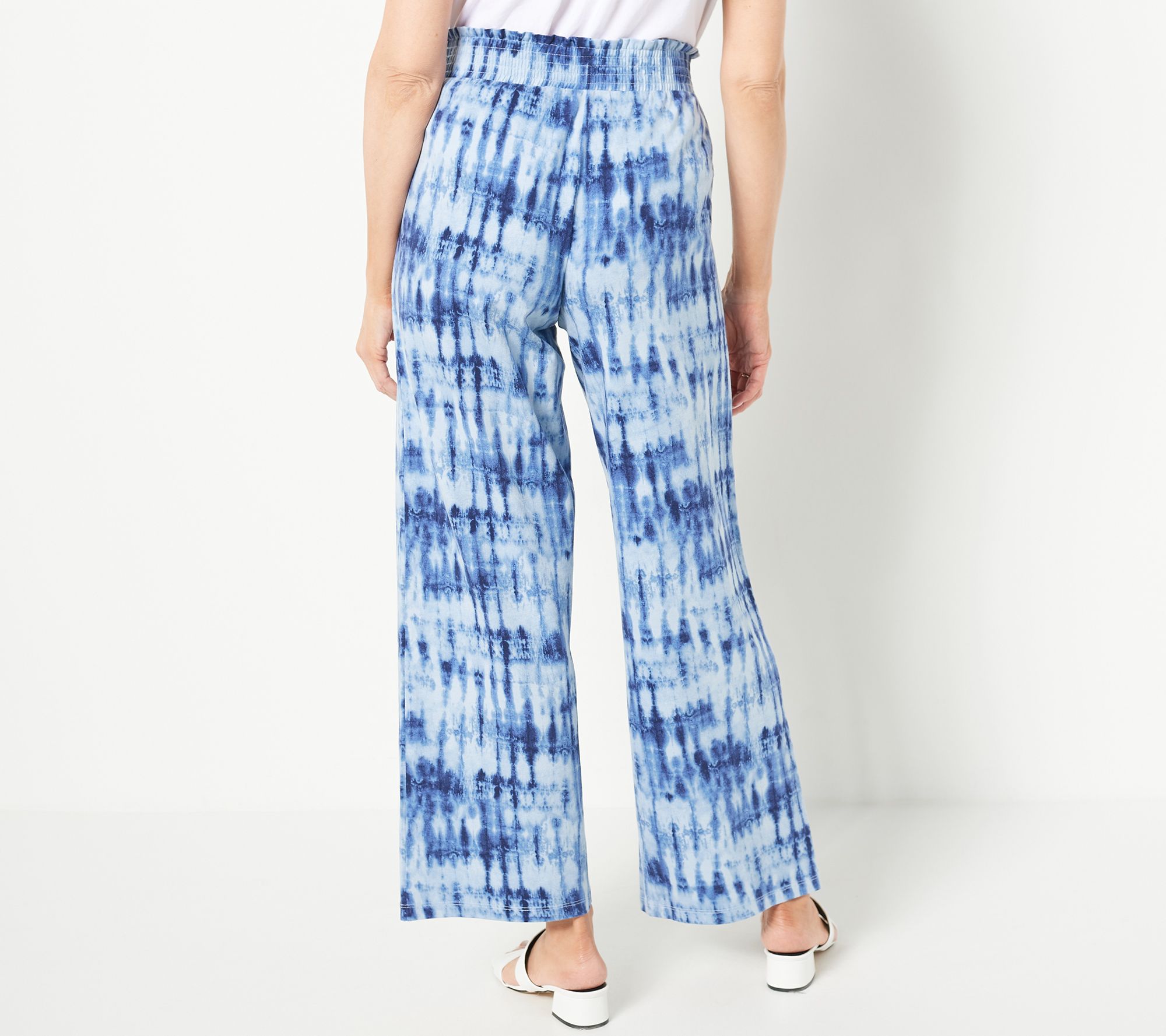 "As Is" Denim & Co. Regular Printed Beach Jersey Smocked Waist Wide Pant