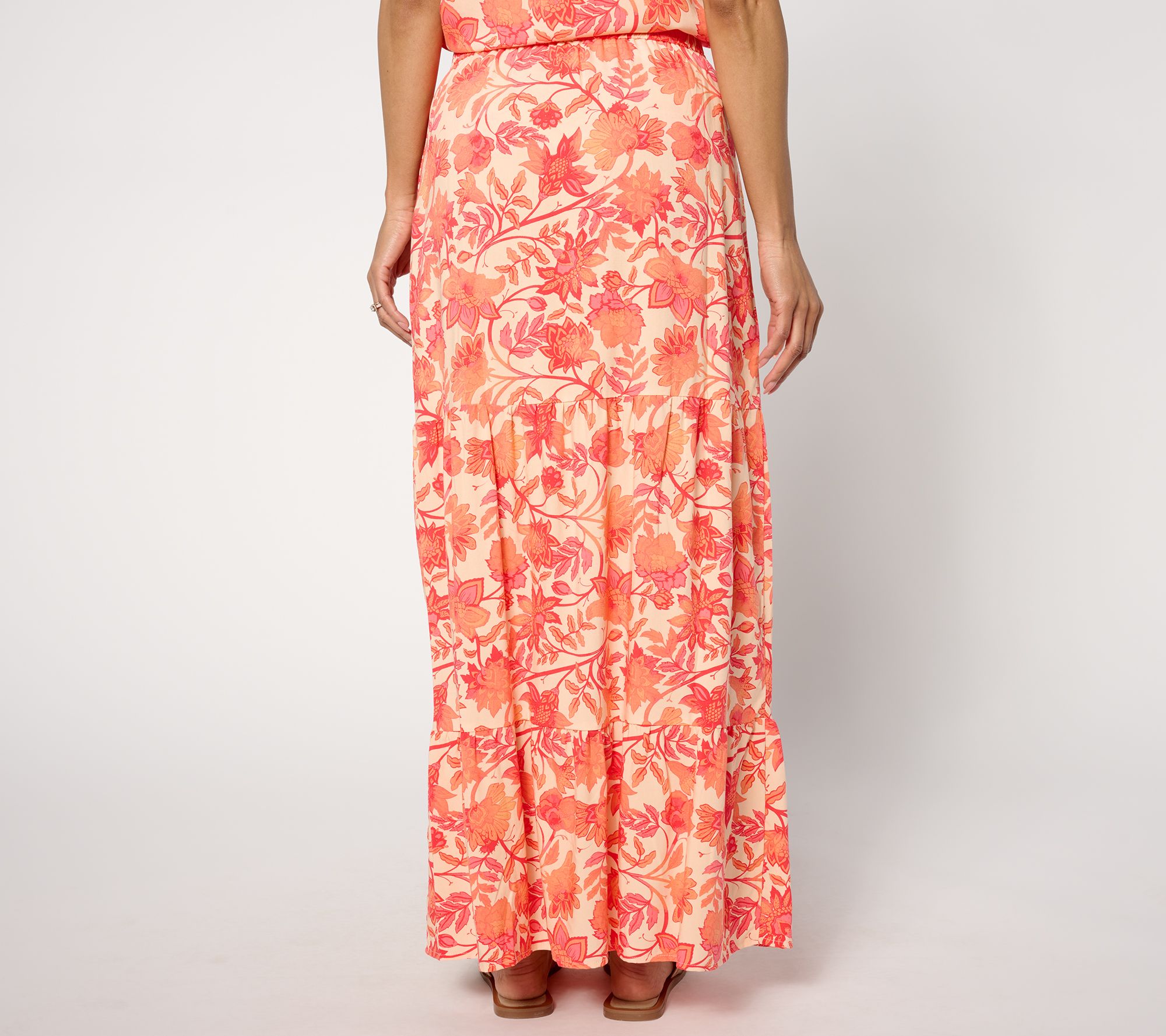 A summer essential for warm days and carefree style, this tiered skirt furnishes you with an effortless fashion statement for backyard soirees, brunches, and bistros by the beach. From Denim & Co.® Fashions.