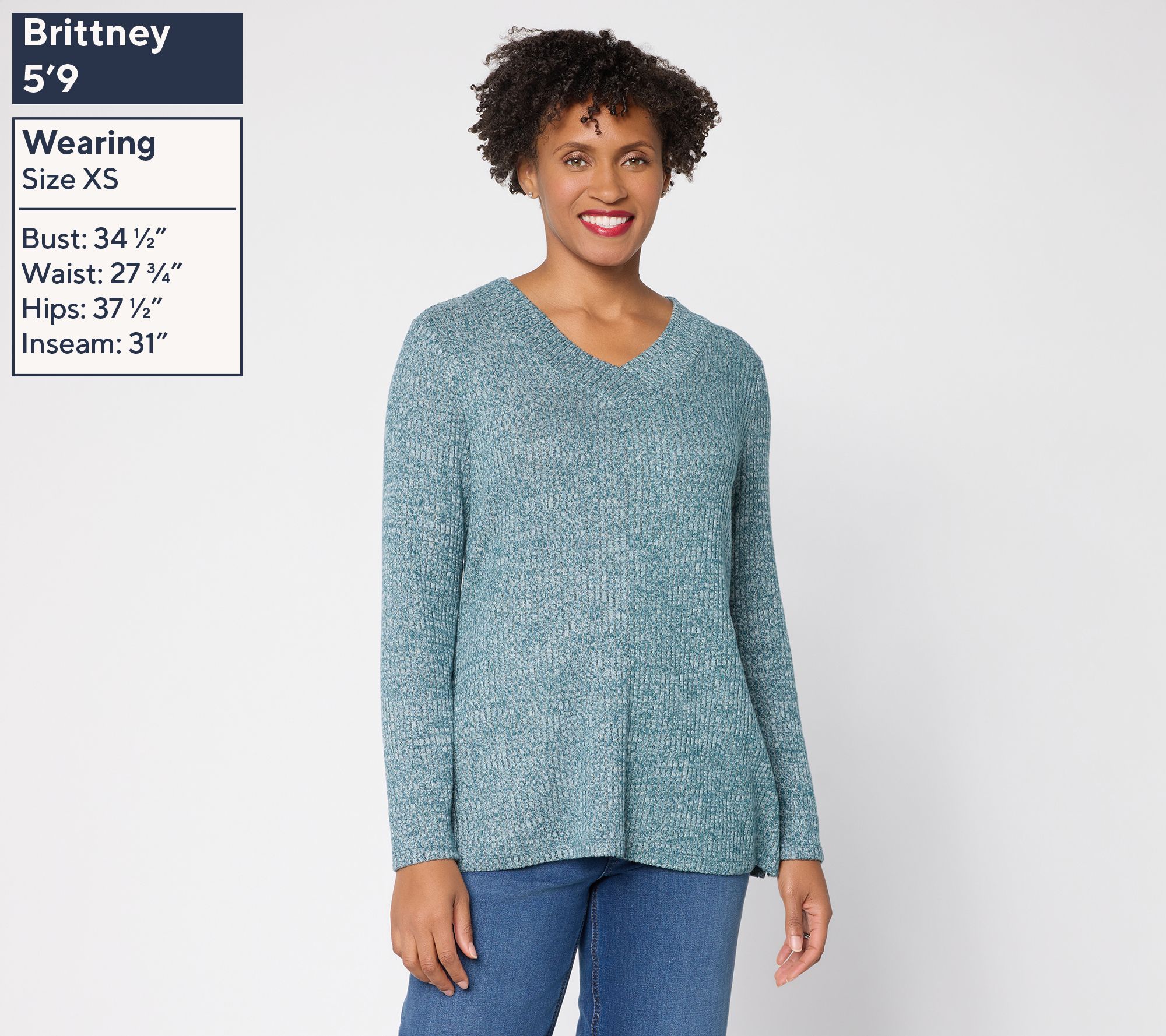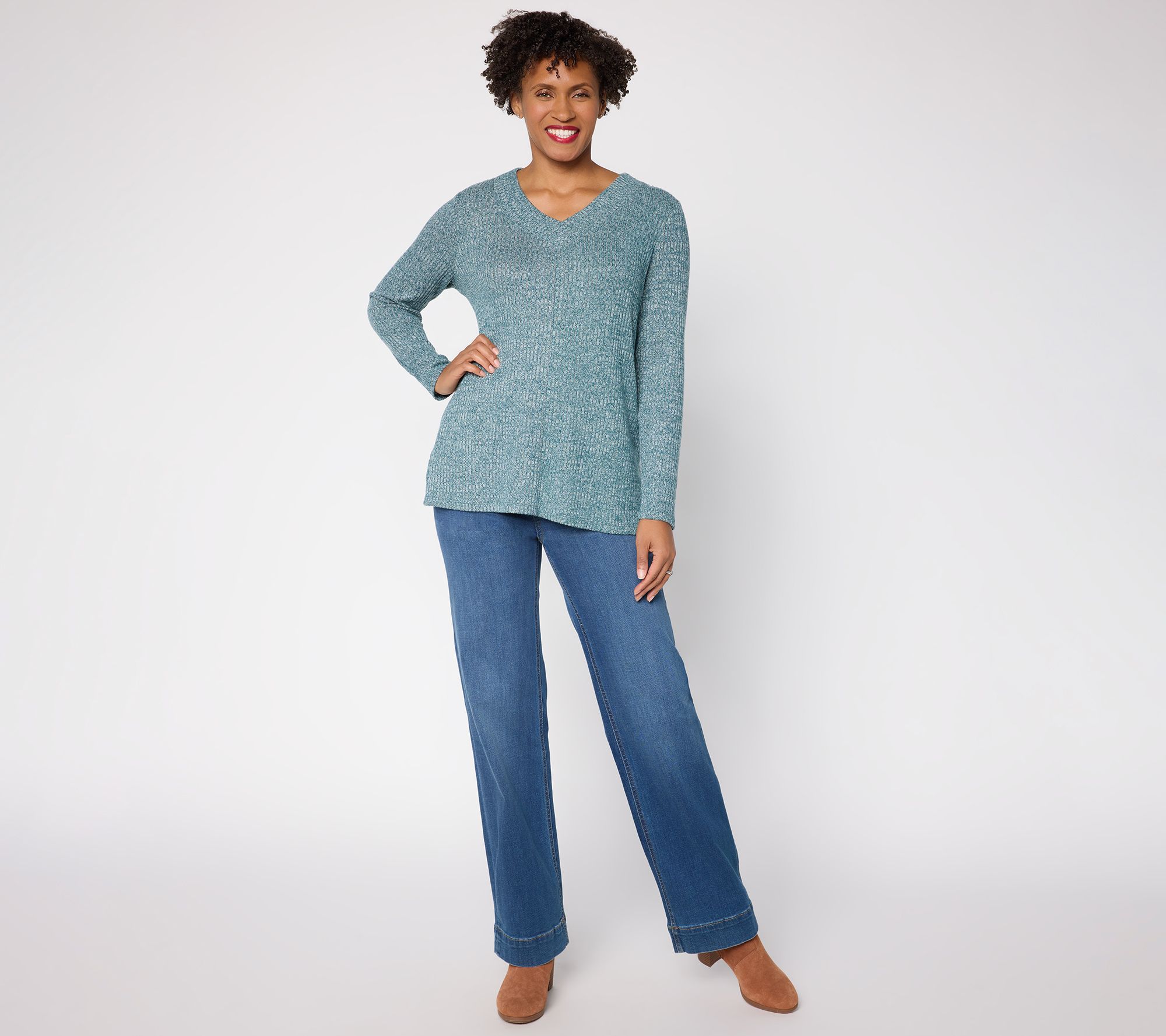 "As Is" Denim & Co. Regular Ribbed Long Sleeve V-Neck Tunic