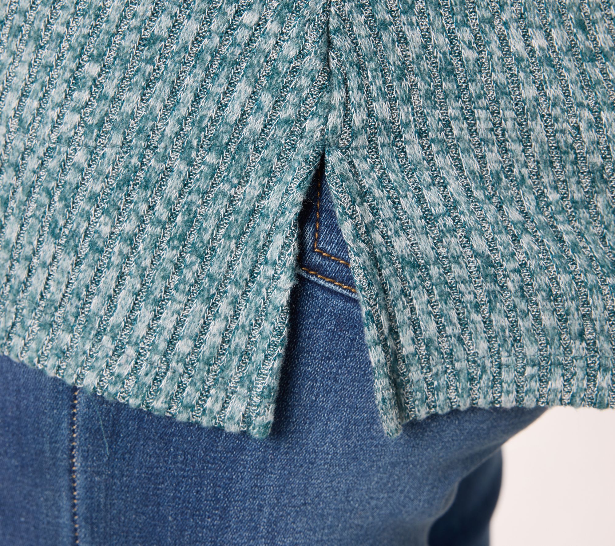 Head out for a coffee run or settle into your weekend routine in this ribbed long-sleeve tunic top, designed for both comfort and the gal on the go. Soft knit fabric and a V-neckline create a flattering silhouette, while handy side seam pockets provide a place for essentials. From Denim & Co.® Fashions.
