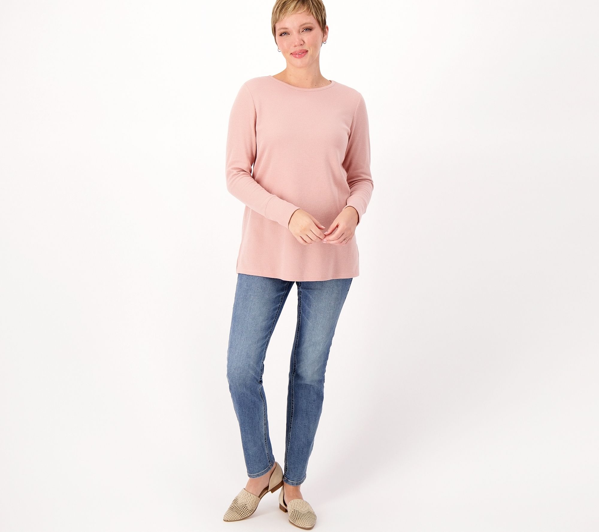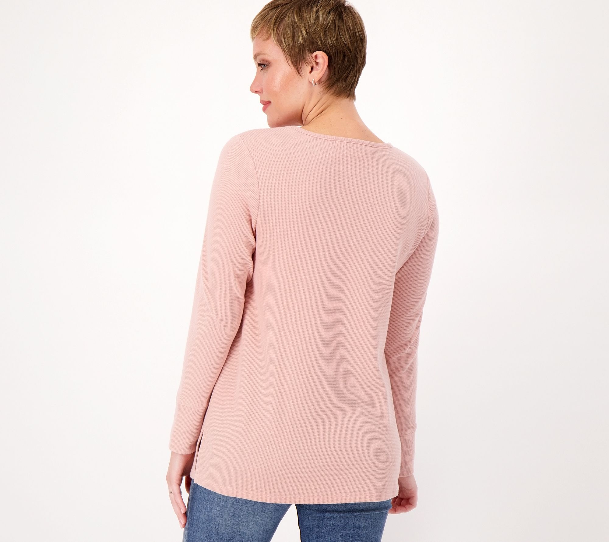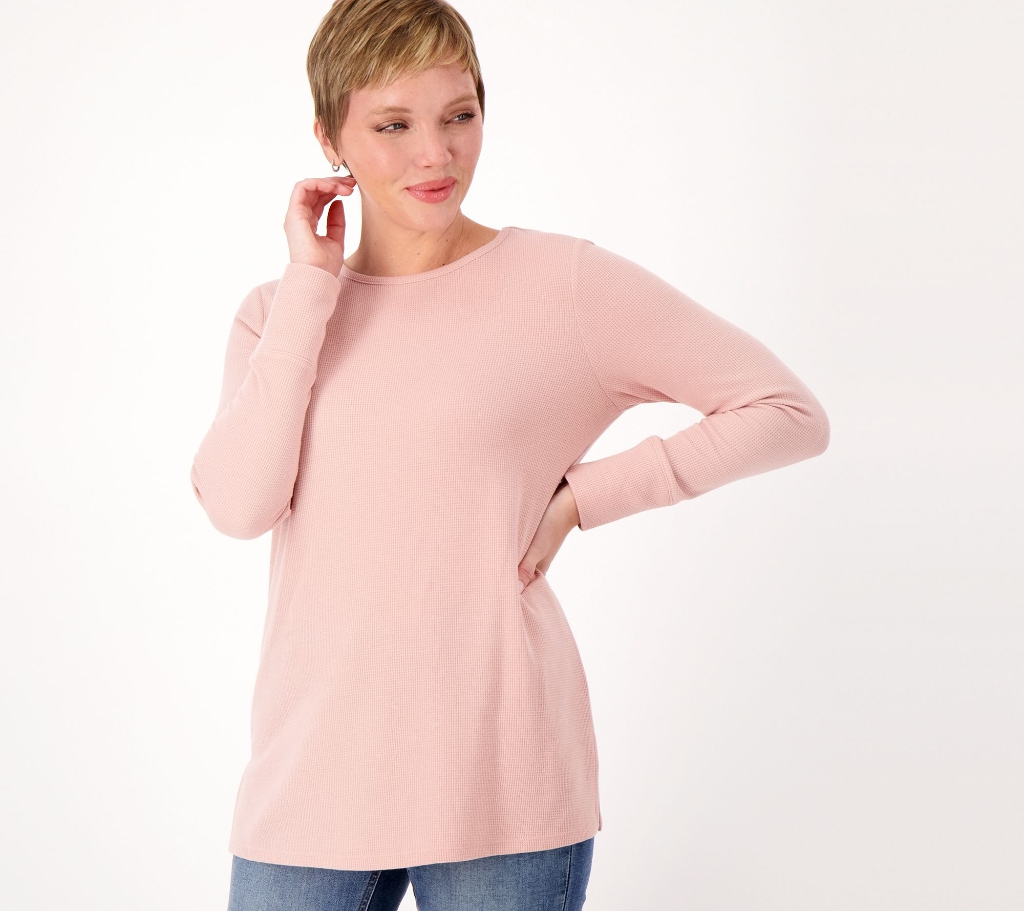 "As Is" Denim & Co. Regular Waffle Knit Crew Neck Long Sleeve Tunic