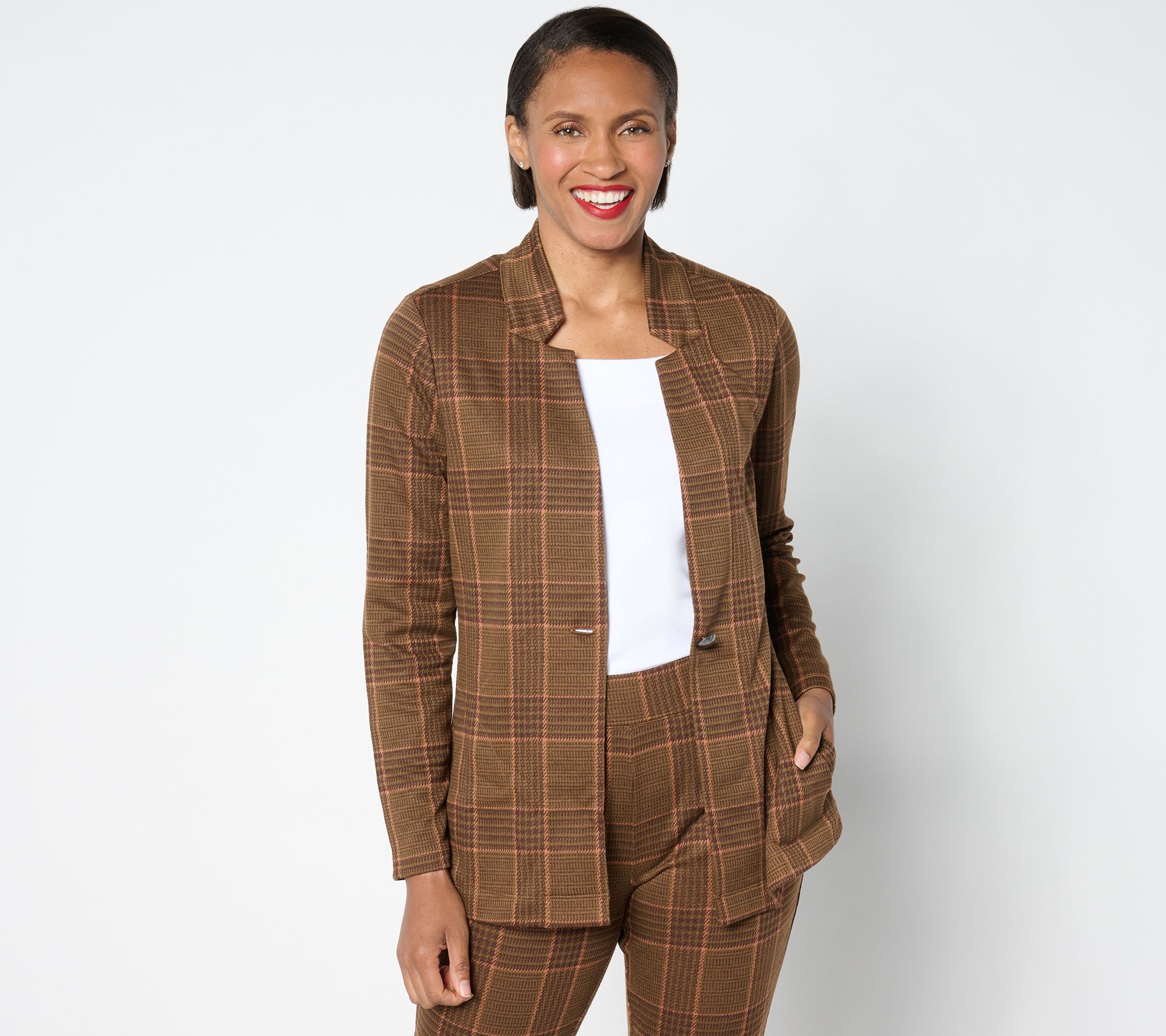 Take on the world -- or just the day's jam-packed agenda -- in this sleek-yet-structured jacket crafted in signature knit jacquard. From Denim & Co.® Fashions.