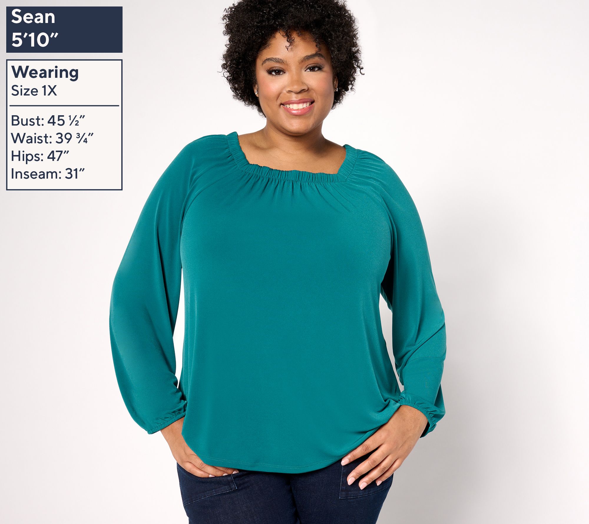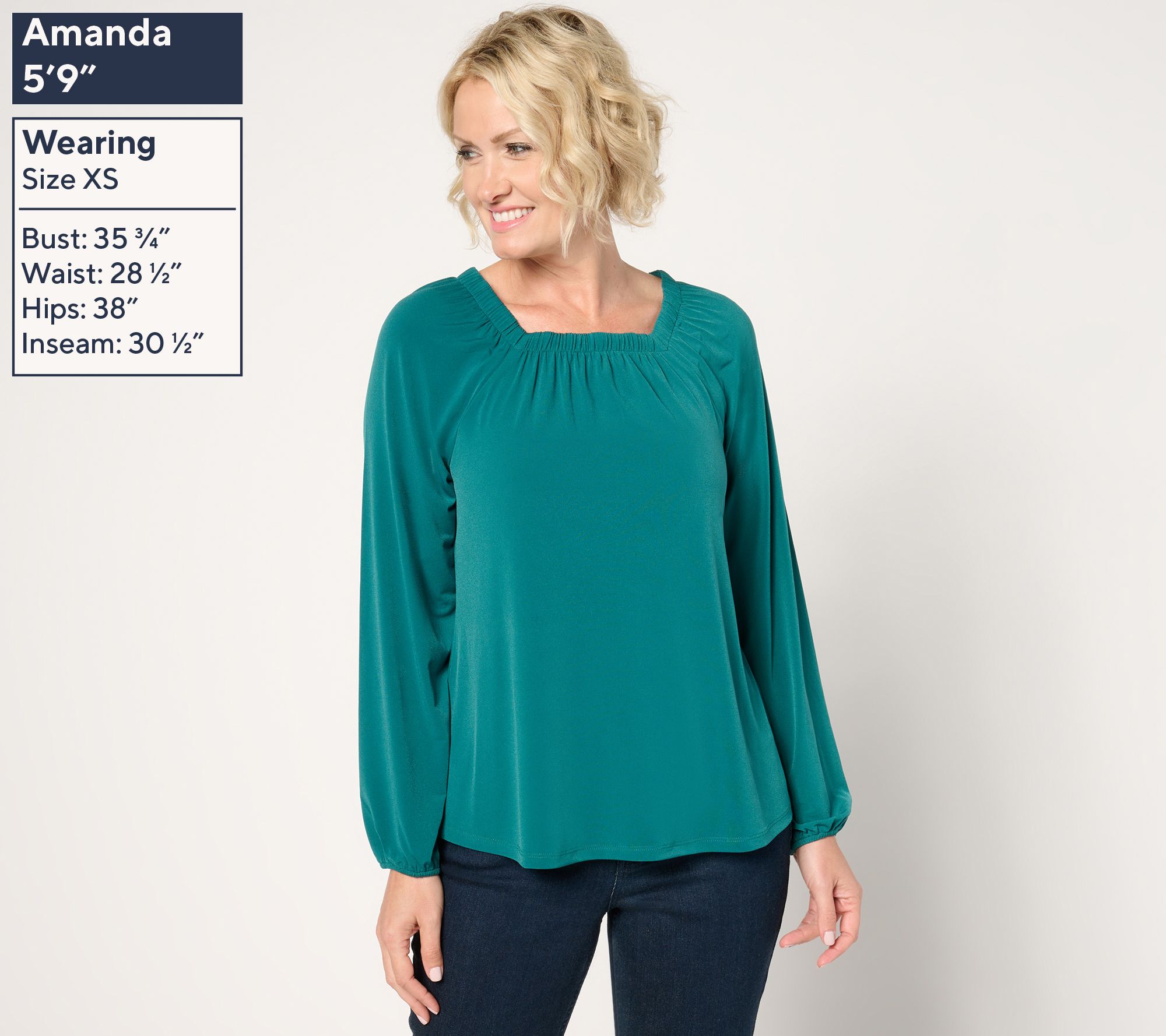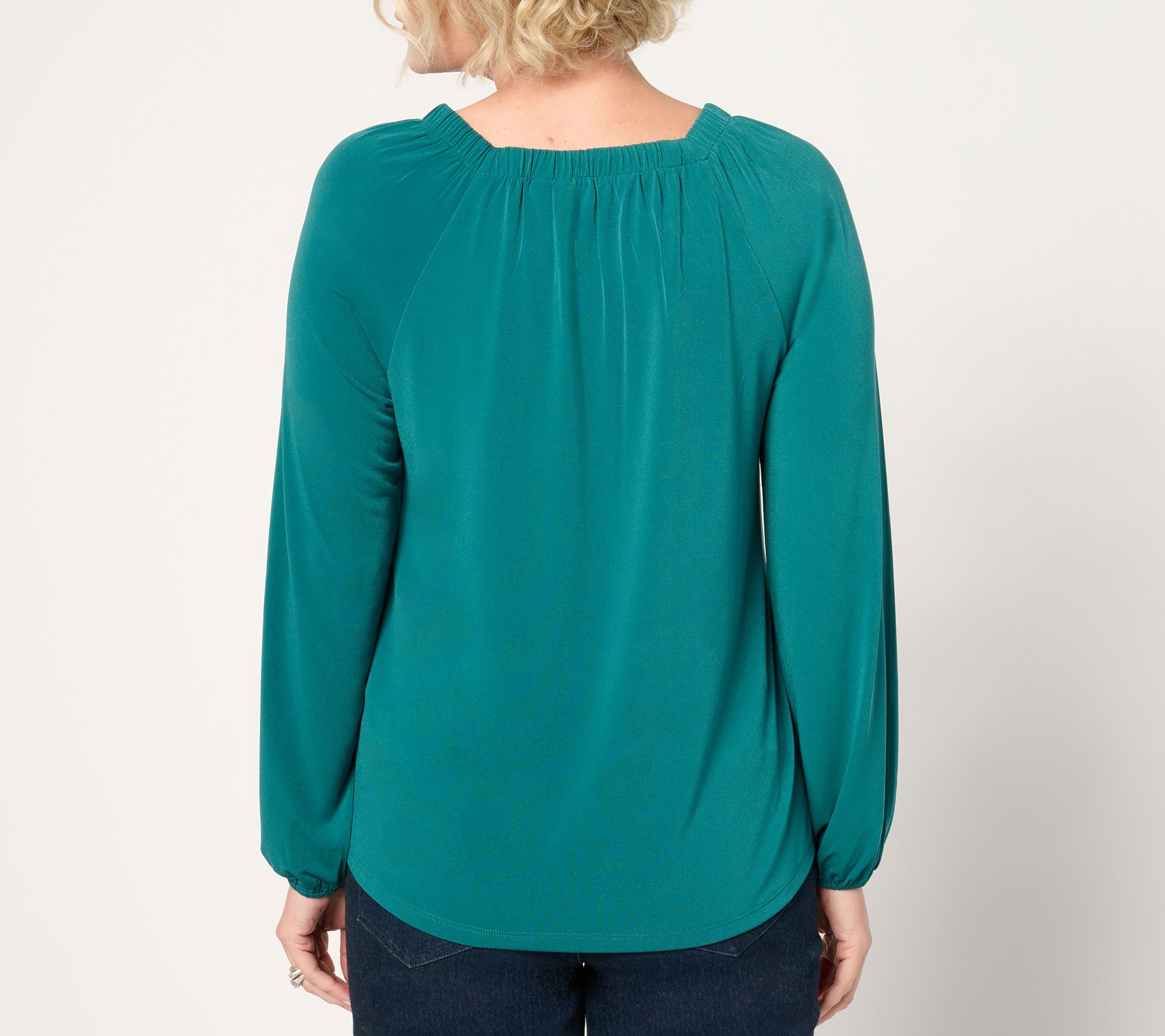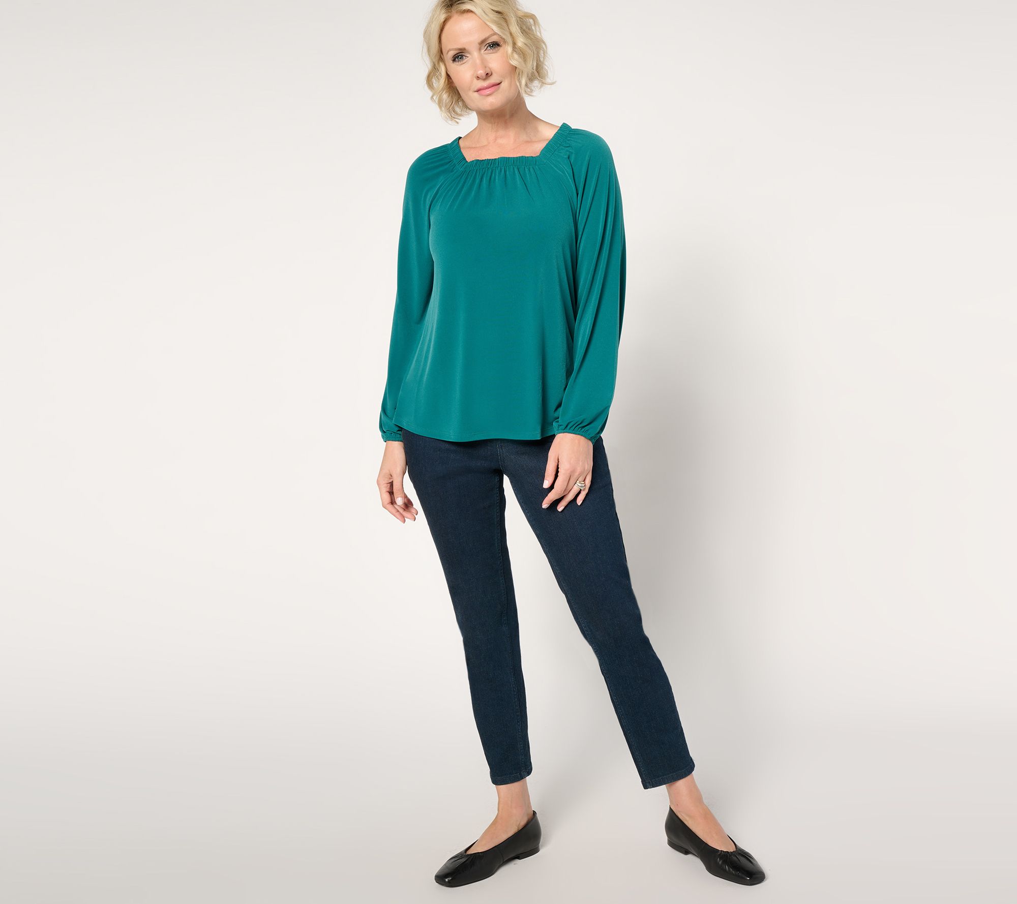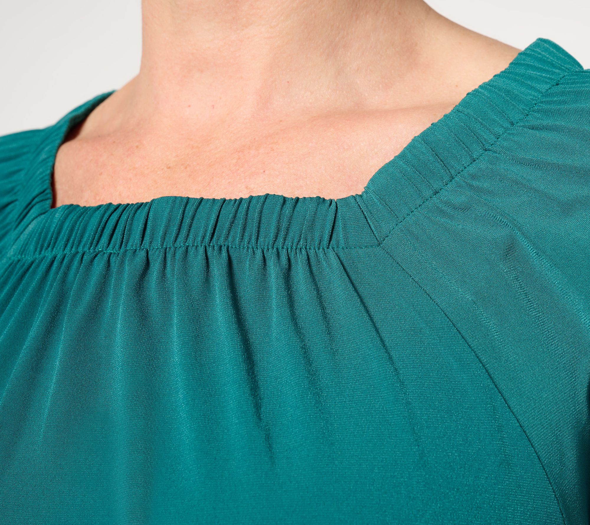 Update your everyday options with this square neck knit top, blending a flattering square neckline with delicate shirring at the neck and sleeve hems to create a figure-flatting silhouette. From Denim & Co.