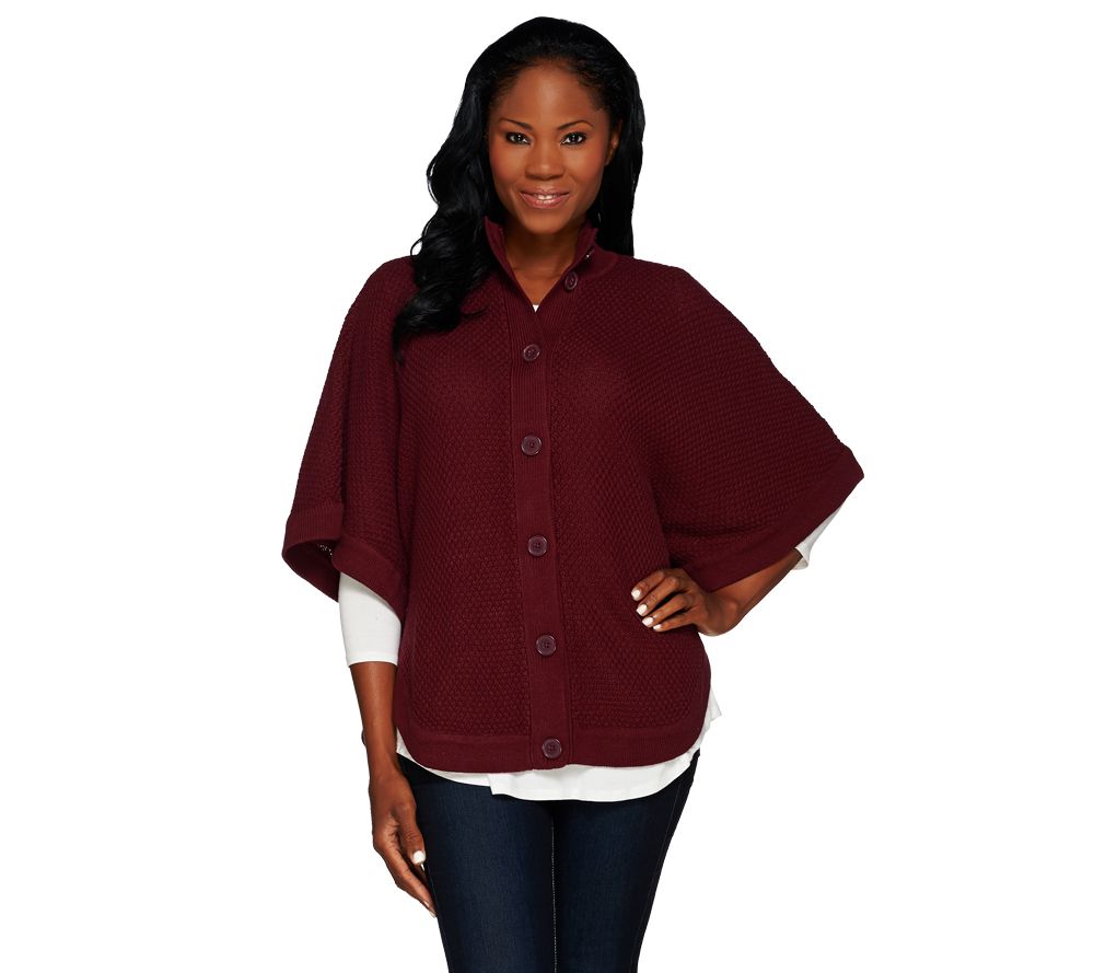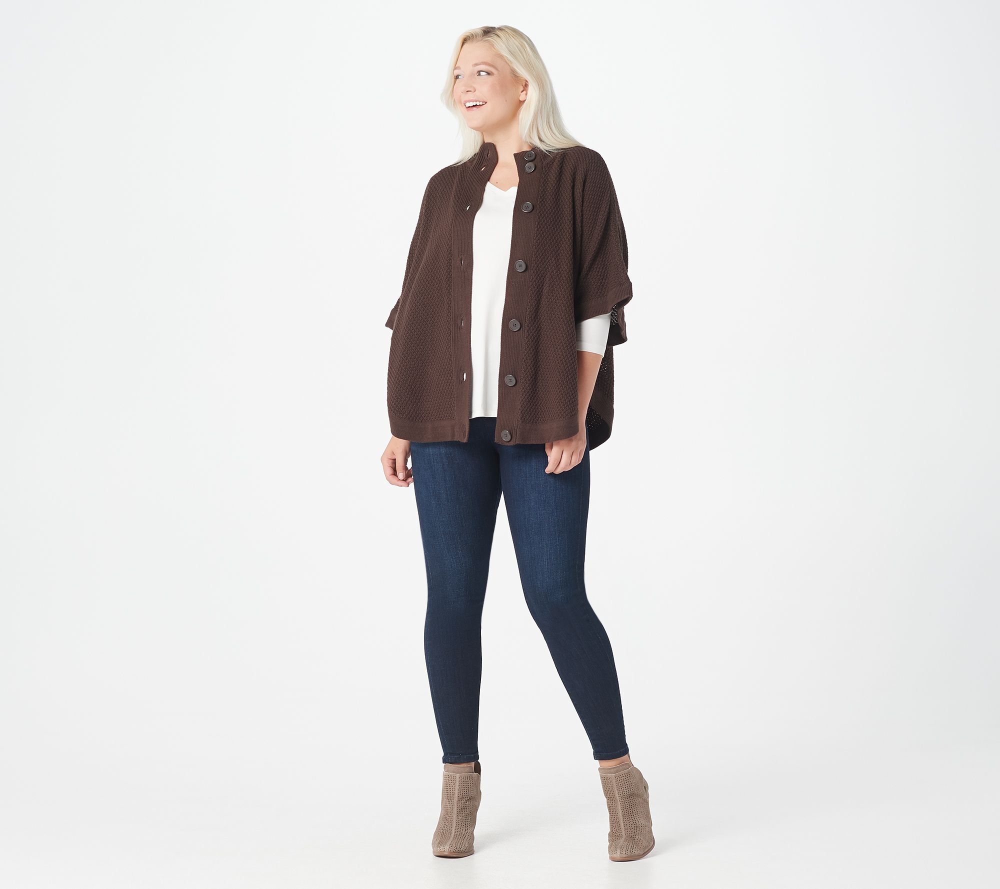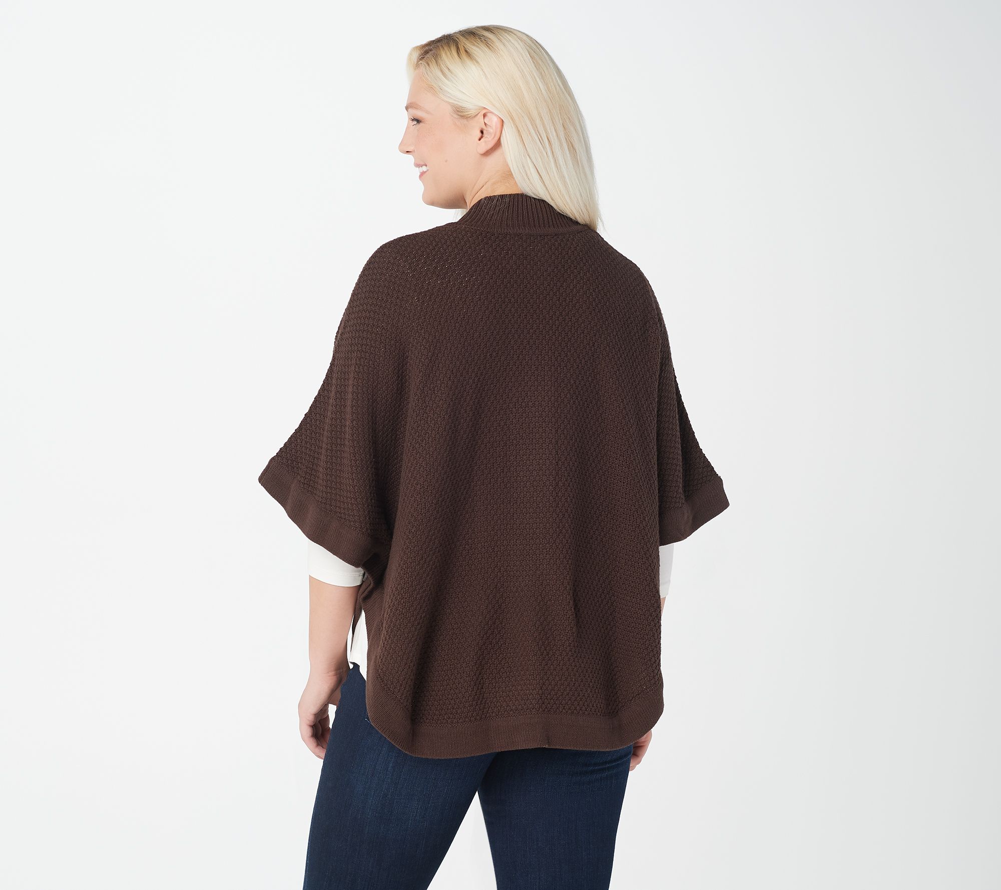 "As Is" Denim & Co. Stand Collar Button Front Poncho Sweater