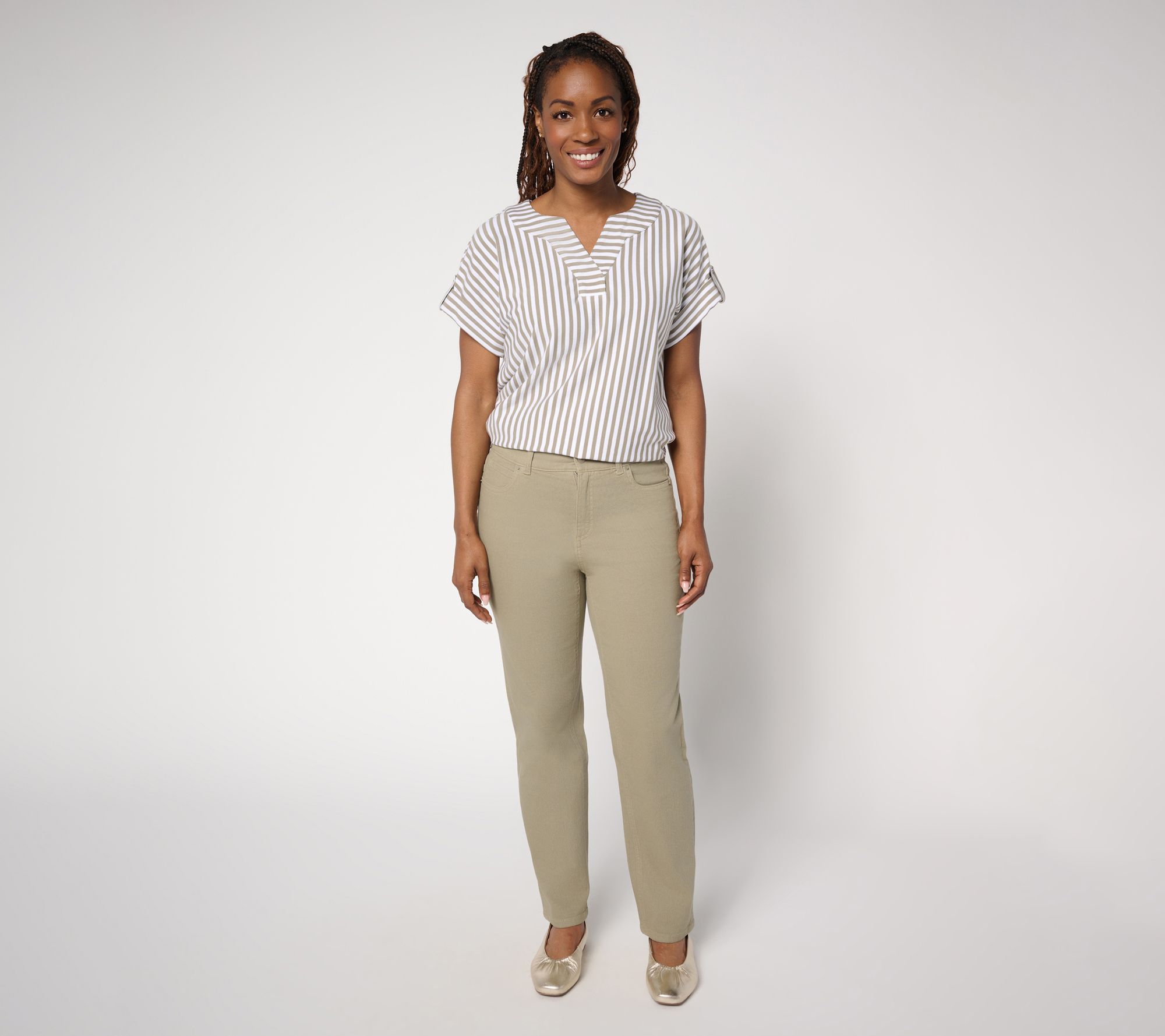 Plus, the just-right ankle length feels balanced with ballet flats, sneakers, and kitten heels (so you can skip the trip to the tailor). So what'll it be? Bright Navy with a striped top for a nautical moment? Gulf Blue with a botanical bag and neutral accessories? Or Terracotta for something totally fresh? Choosing is half the fun! From Denim & Co.® Fashions.
