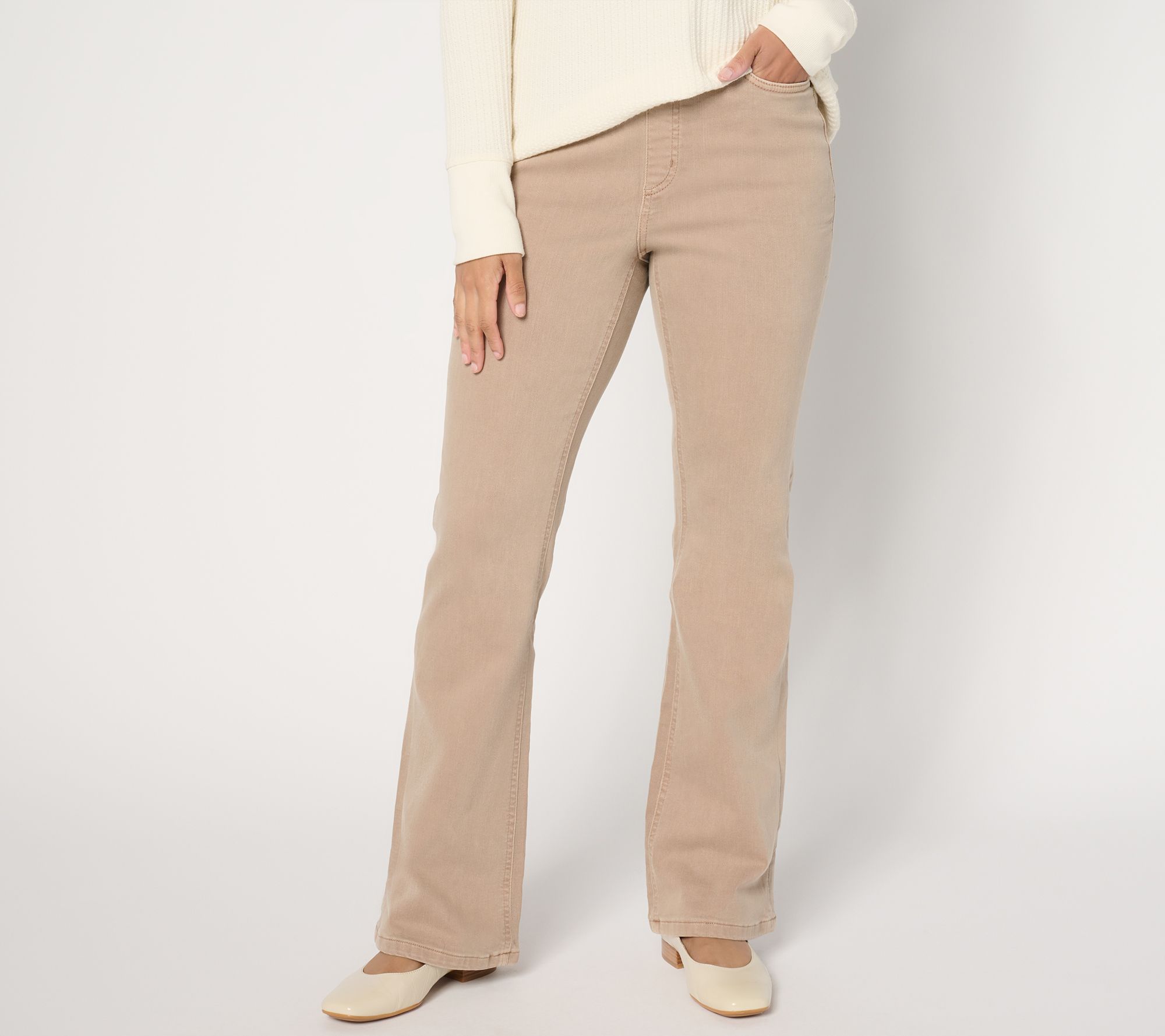 Welcome in, winter style solution! From a casual coffee date to a bustling day of errands, these cozy-touch pull-on jeans keep you comfortable and current (hello, baby boot-cut) every step of the way. From Denim & Co.® Fashions.