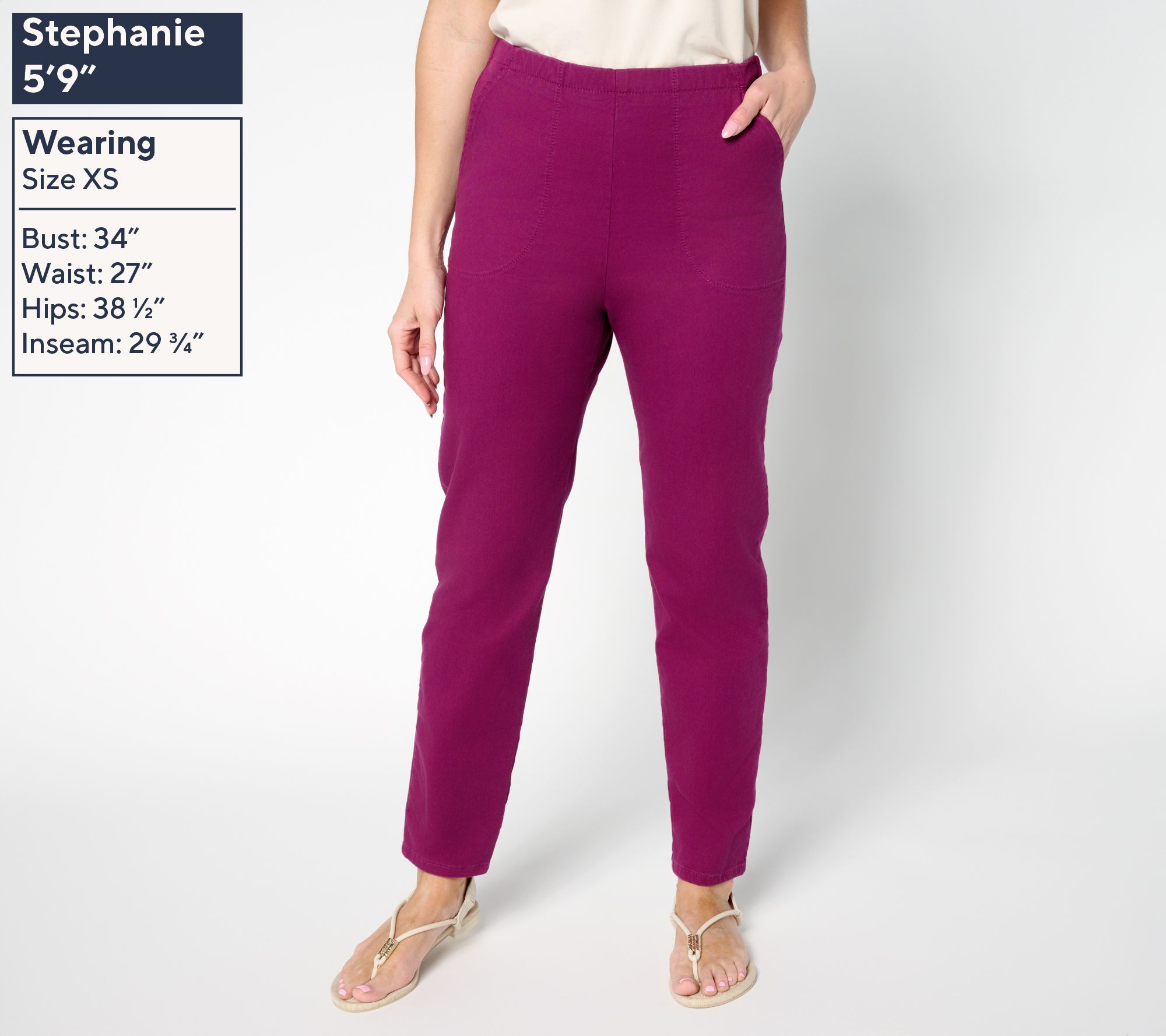 "As Is" Denim & Co. Tall Color Flat Front Denim Side Pocket Pant