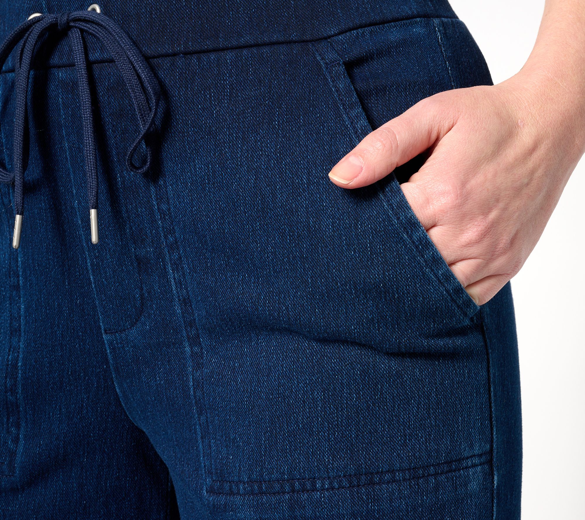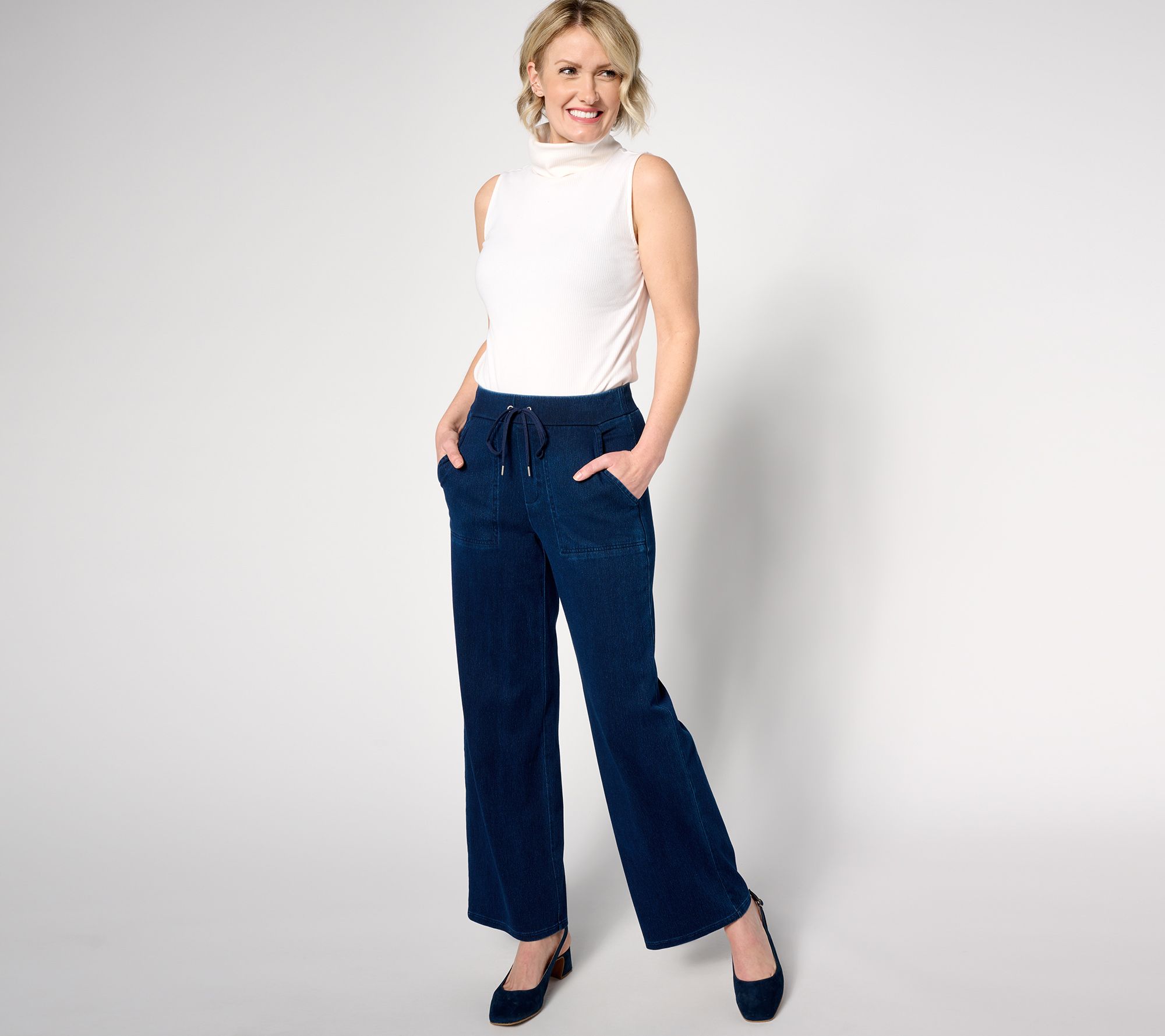 What we're loving: go-anywhere pants that look like jeans but feel like our comfiest loungers! With an easy pull-on style and adjustable drawstring for a more custom fit, these Comfy Knit Air pants are our first choice for a fresh take on daily denim. From Denim & Co.® Fashions.