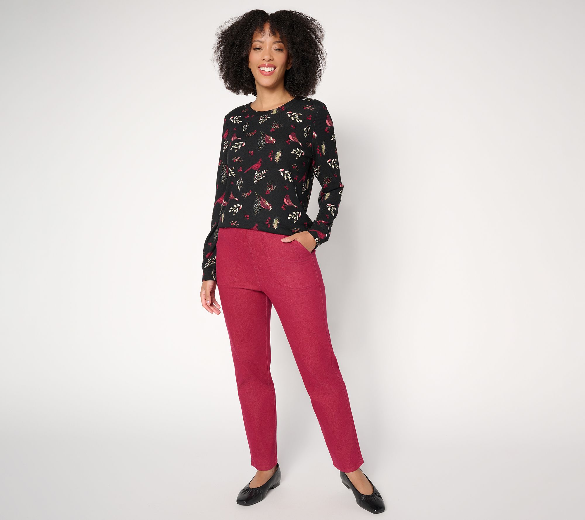 Whether hosting festive gatherings or tackling your holiday to-do list, these straight-leg pants deliver practical comfort, crisp style, and a streamlined silhouette (gotta love a fuss-free flat front). Effortlessly pair them with anything from cozy sweaters to crisp blouses. From Denim & Co.® Fashions.