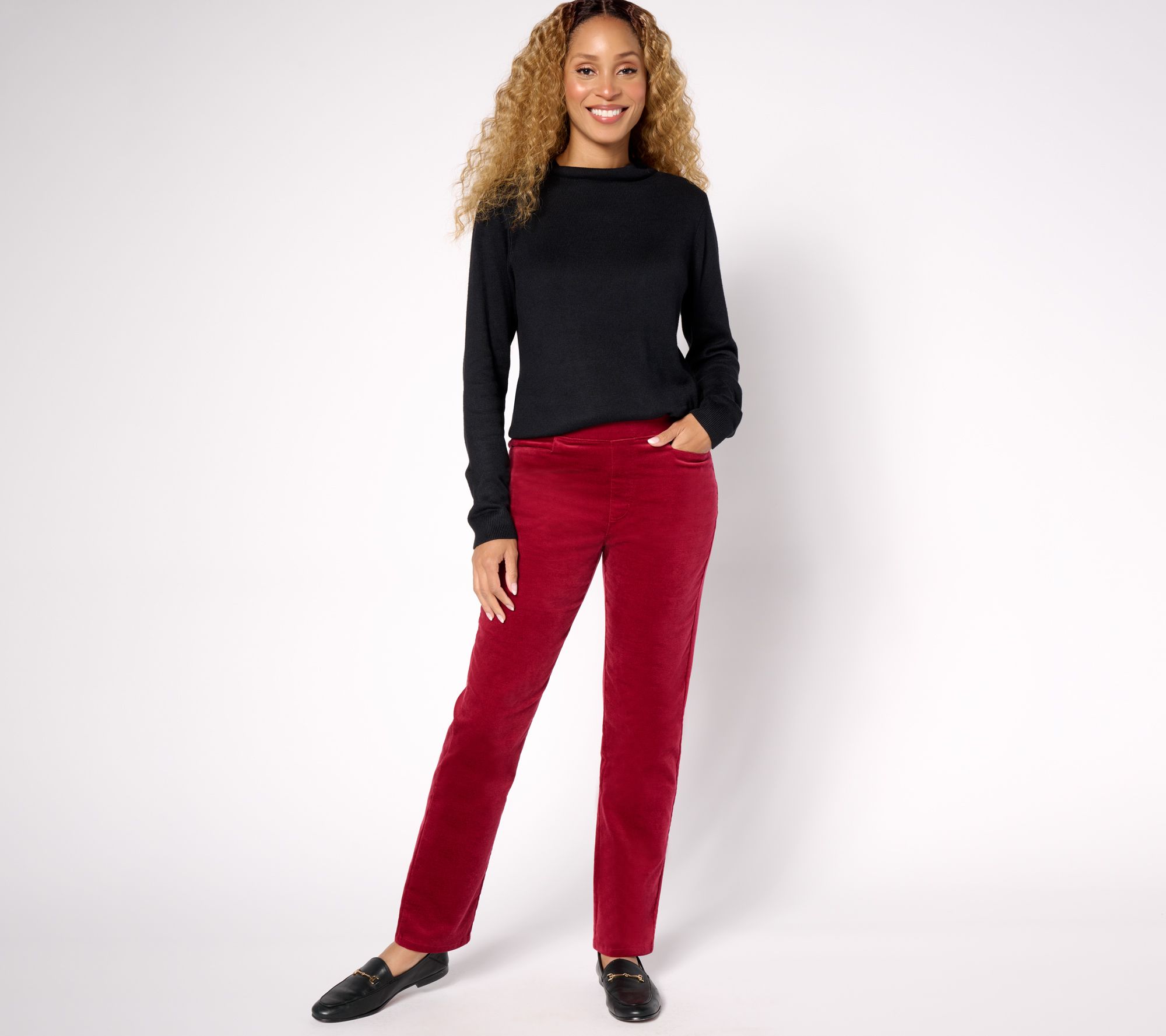"As Is" Denim & Co. Tall Stretch Velvet Straight Leg Pull-On Pant