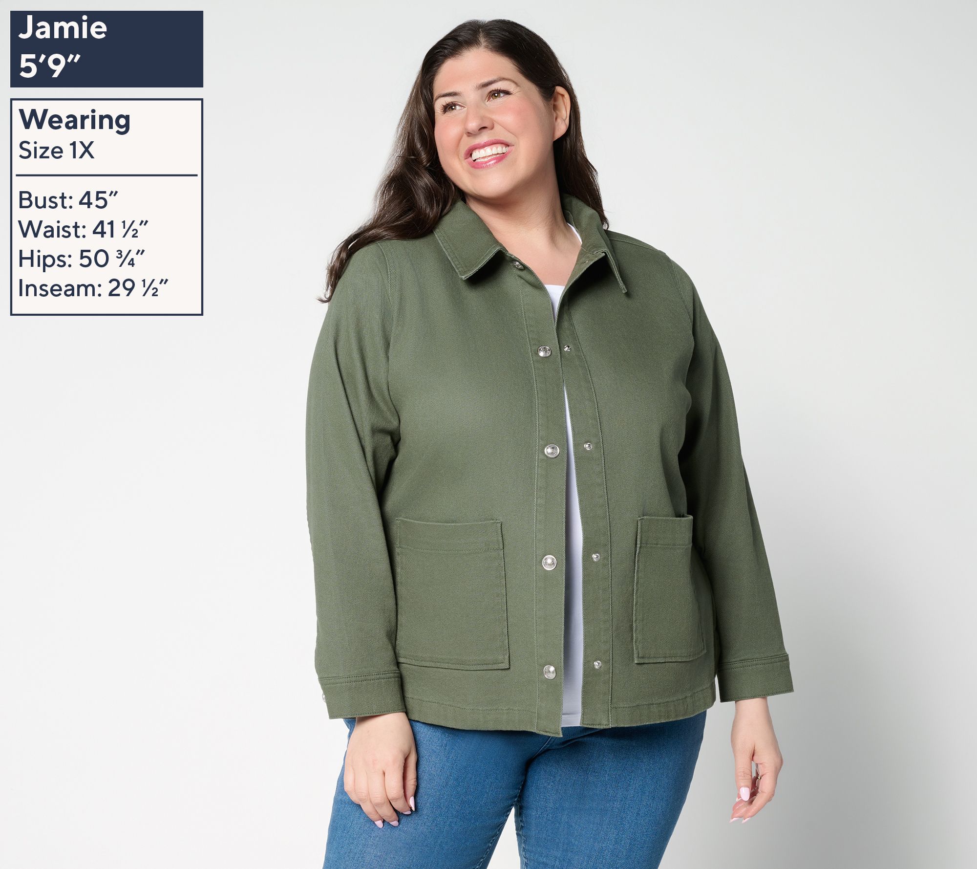 "As Is" Denim & Co. Twill Snap Front Jacket with Pockets