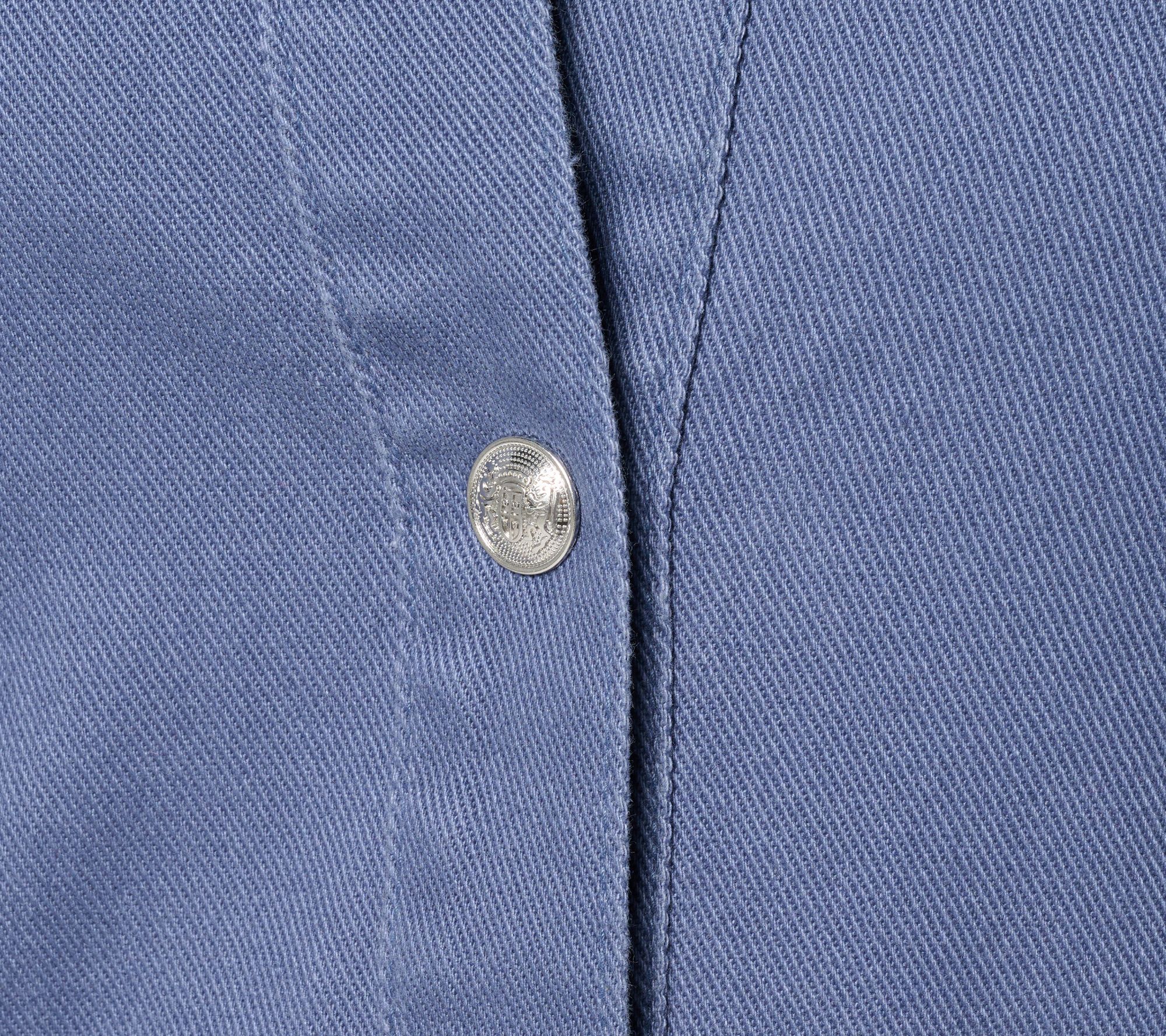 • Features: shirt collar with banana stand, button-front closure, forward shoulder seams, patch pockets, back yoke, back princess seams, long sleeves with button cuffs, curved bottom hem