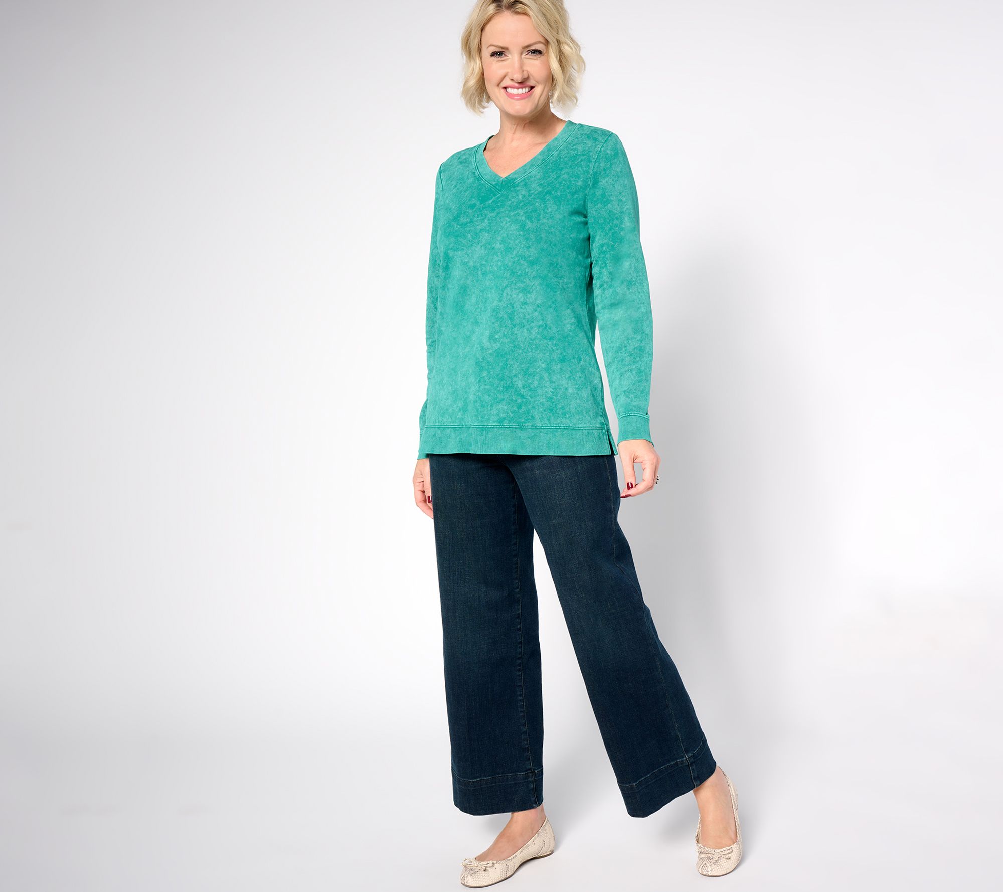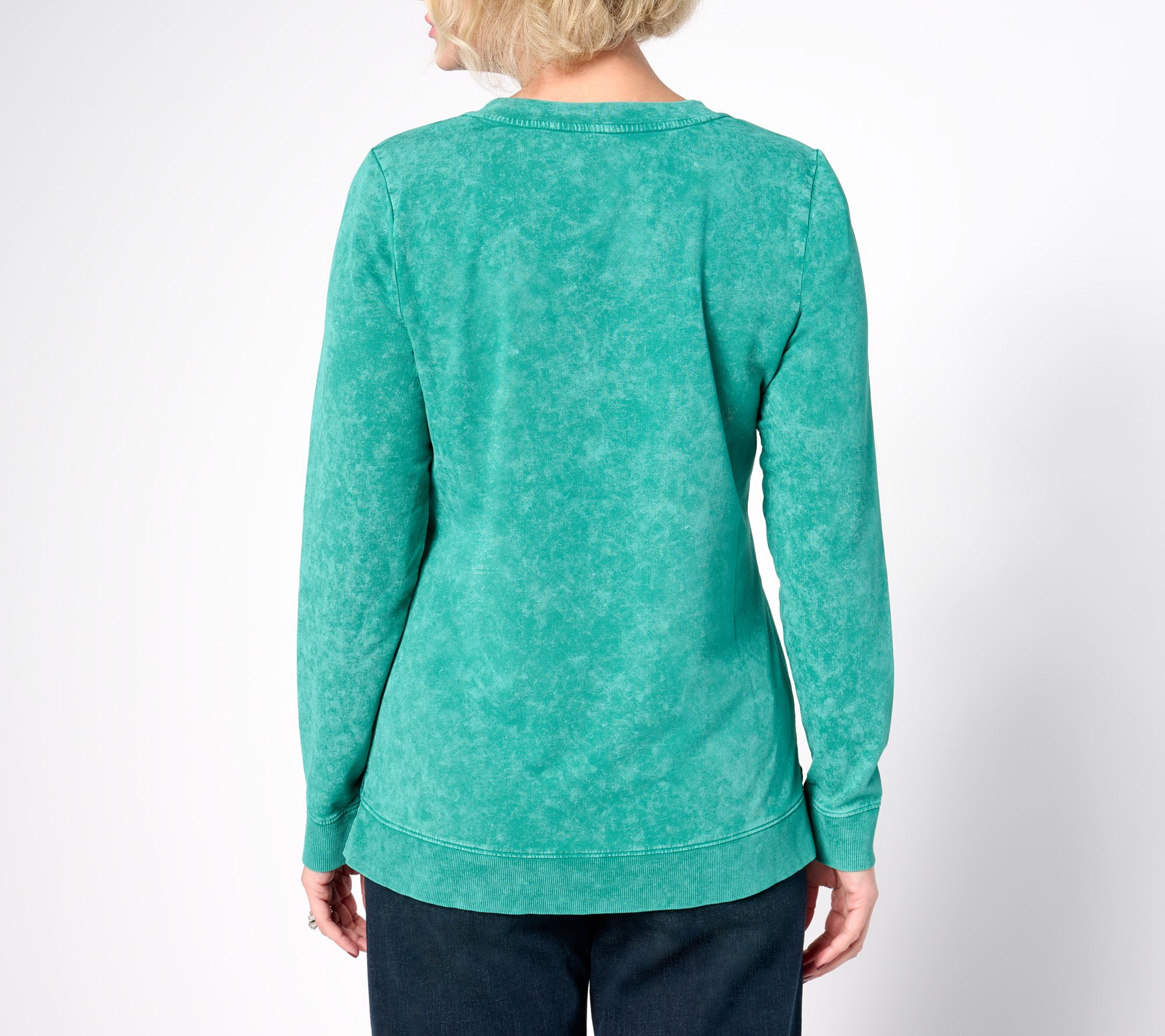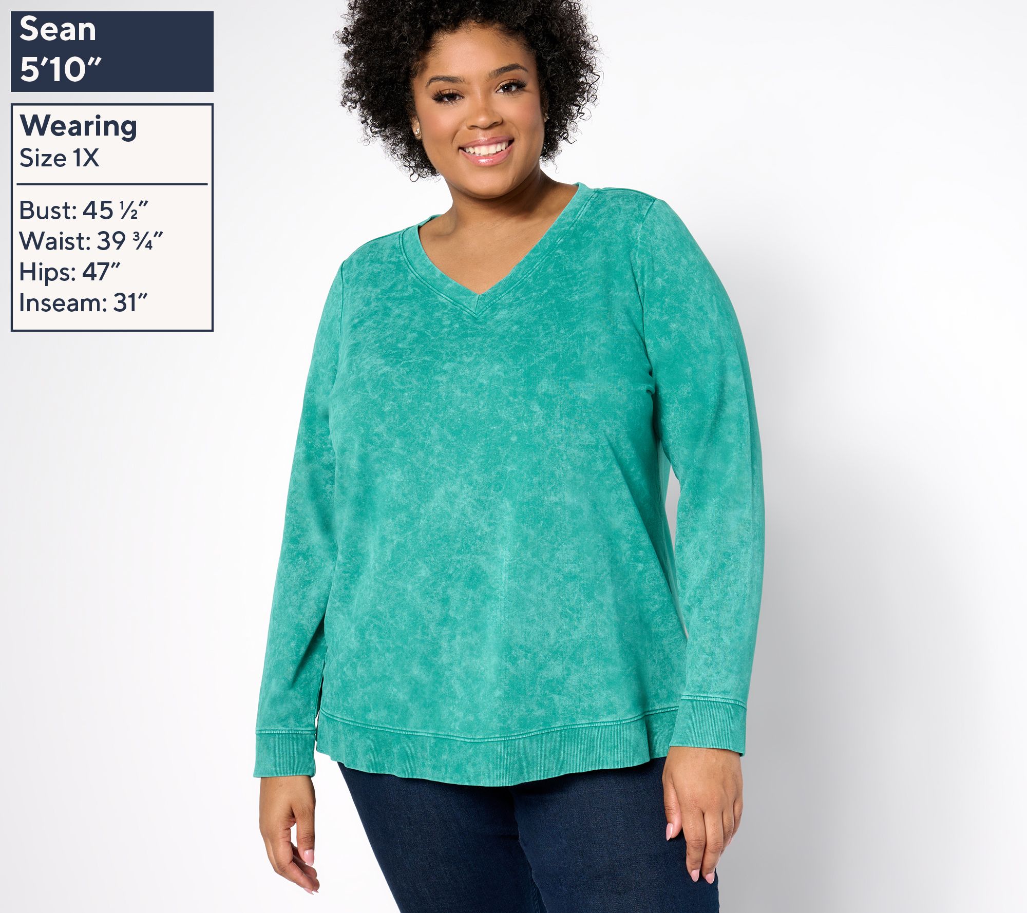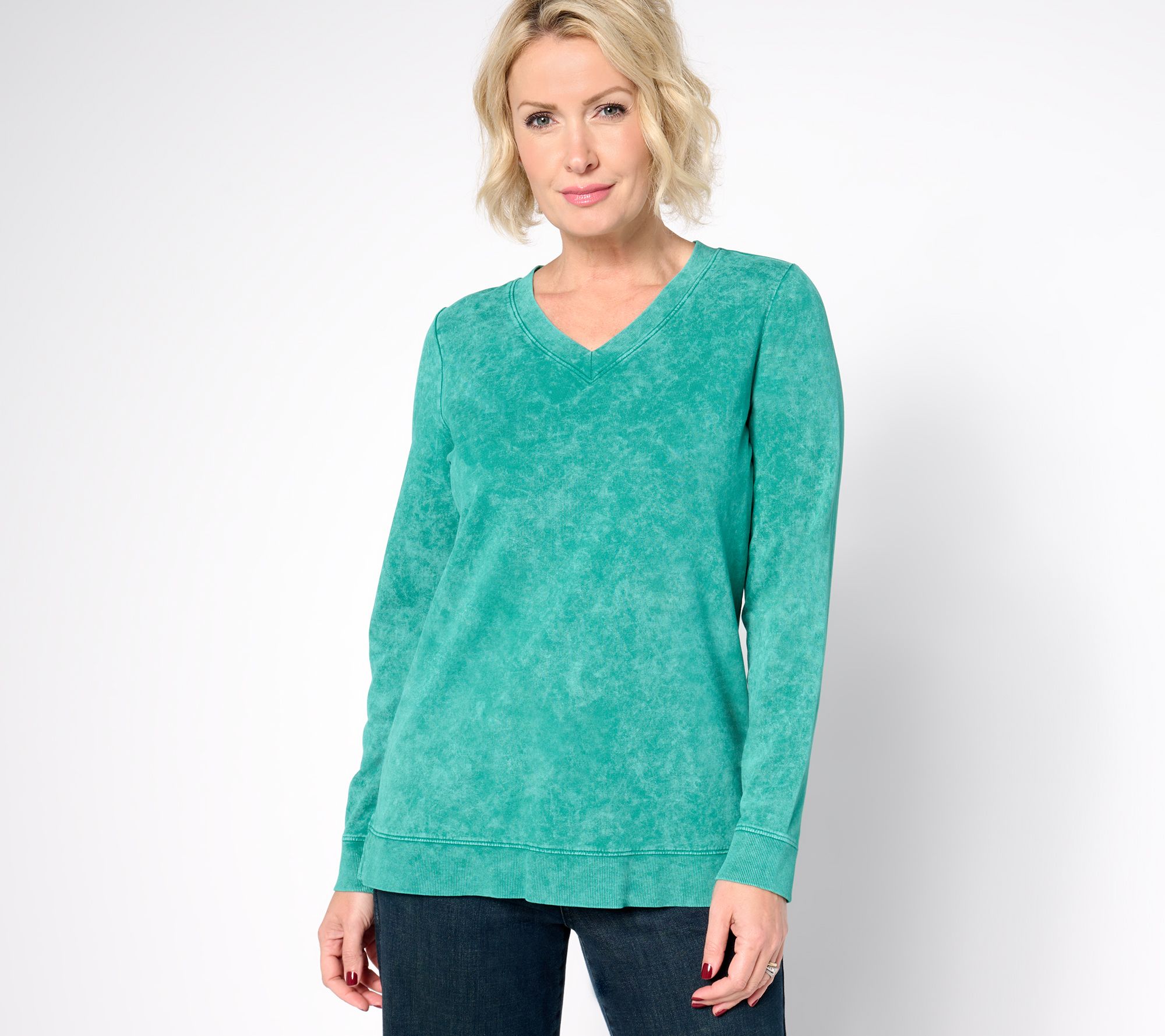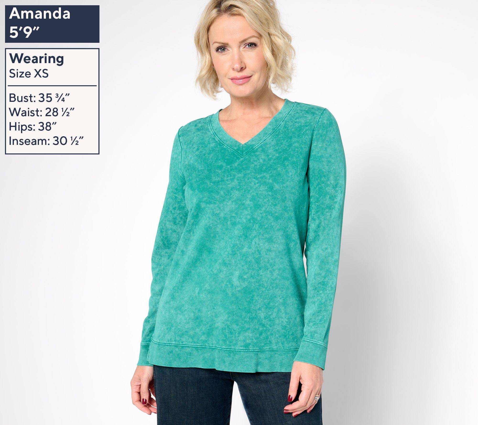 "As Is" Denim & Co. Washed French Terry Long Sleeve V-Neck Pullover