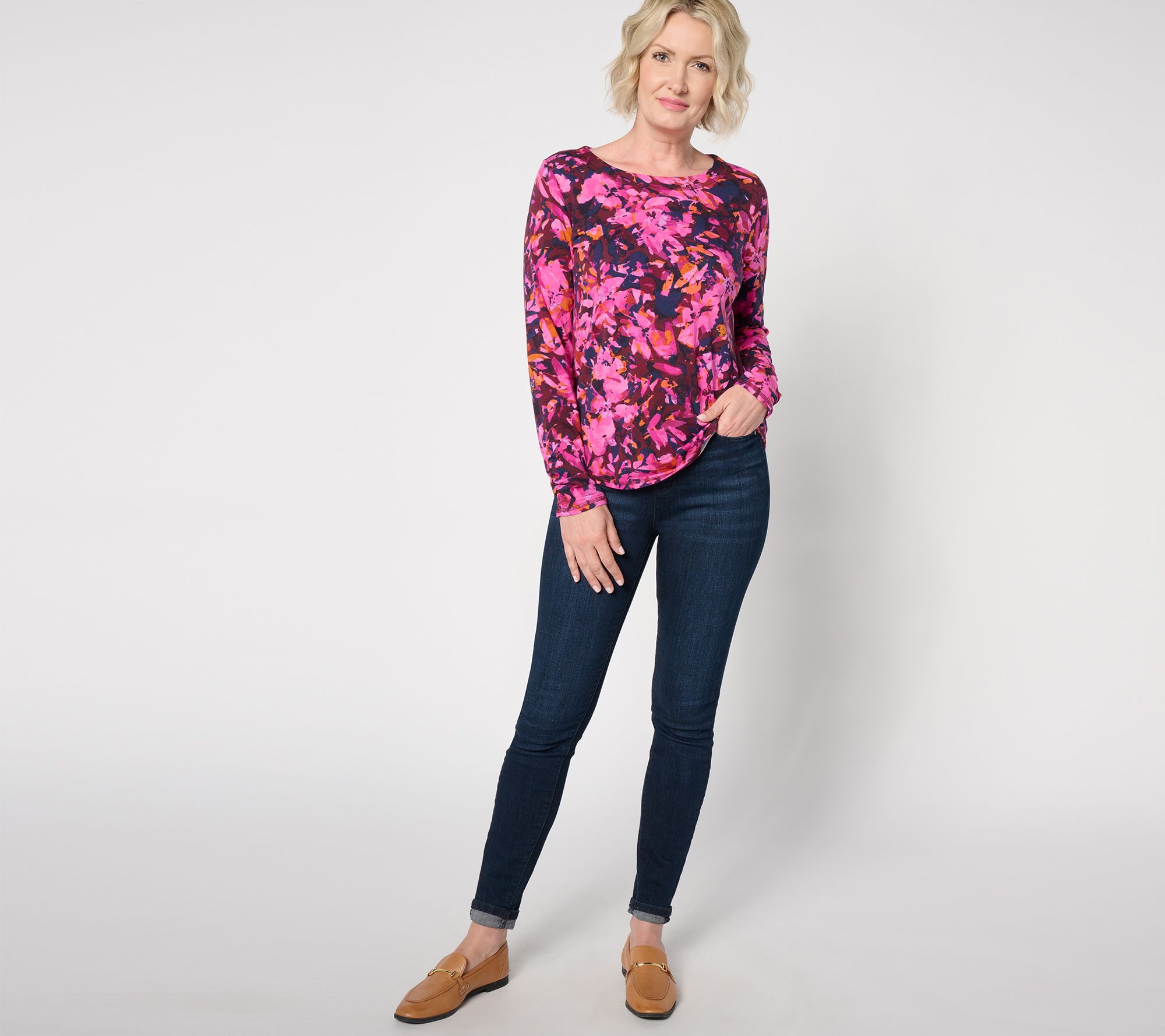 "As Is" Denim & Co. Active Printed Jersey Long Sleeve Top