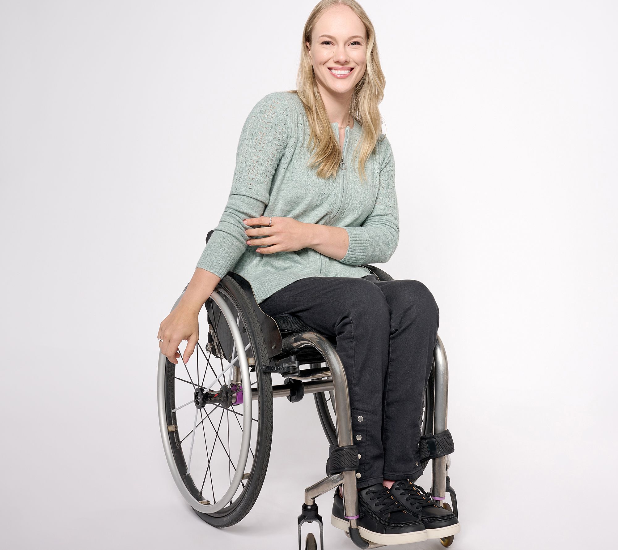 "As Is" Denim & Co. Adaptive Zipper Pointelle Cardigan