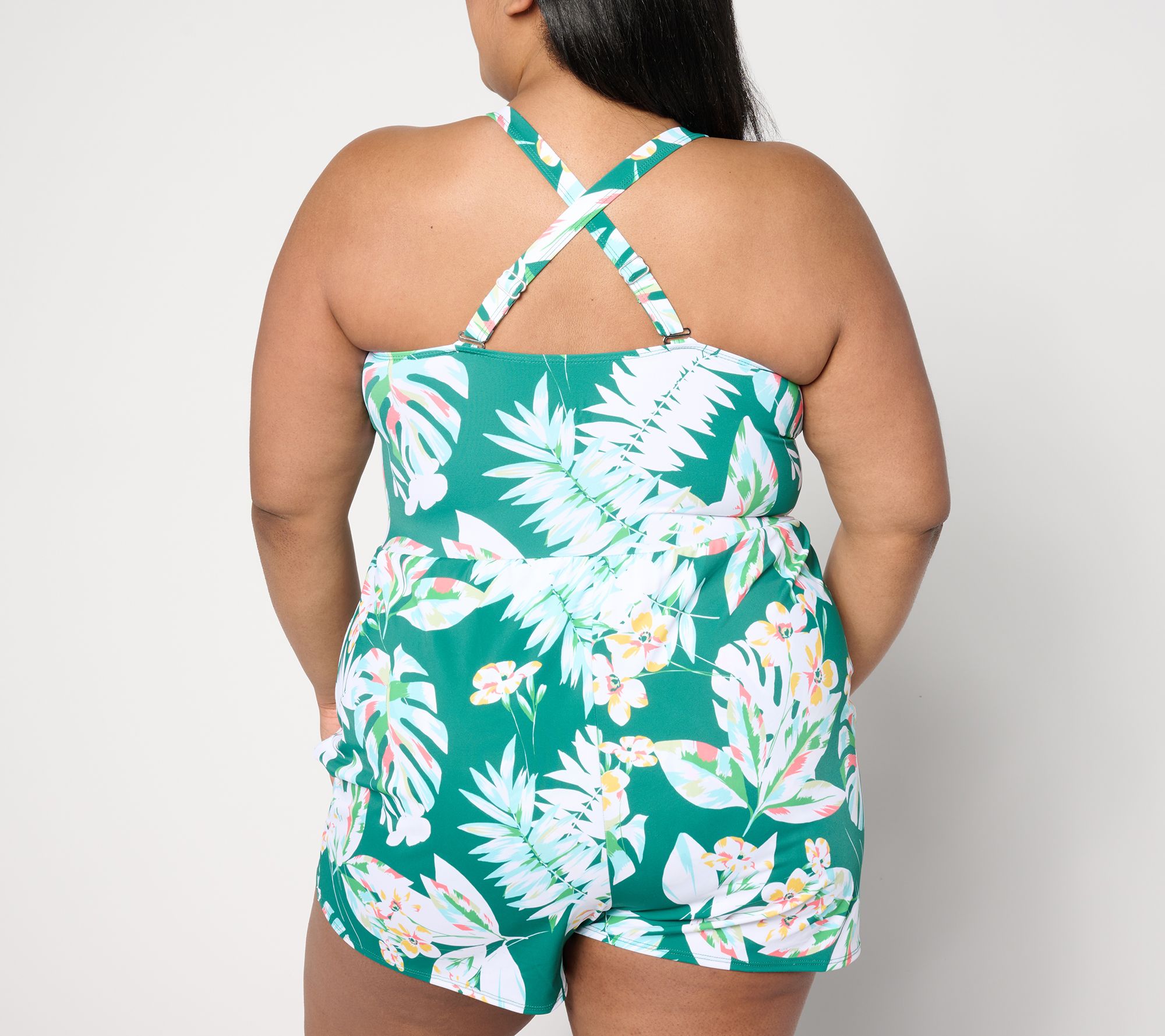 Soak up the sunshine or splash around in the pool in this delightful faux-wrap tank swim romper -- complete with figure-flattering details to make sure you remain comfortable (we love the adjustable straps and non-roll swim elastic). From Denim & Co.® Fashions.