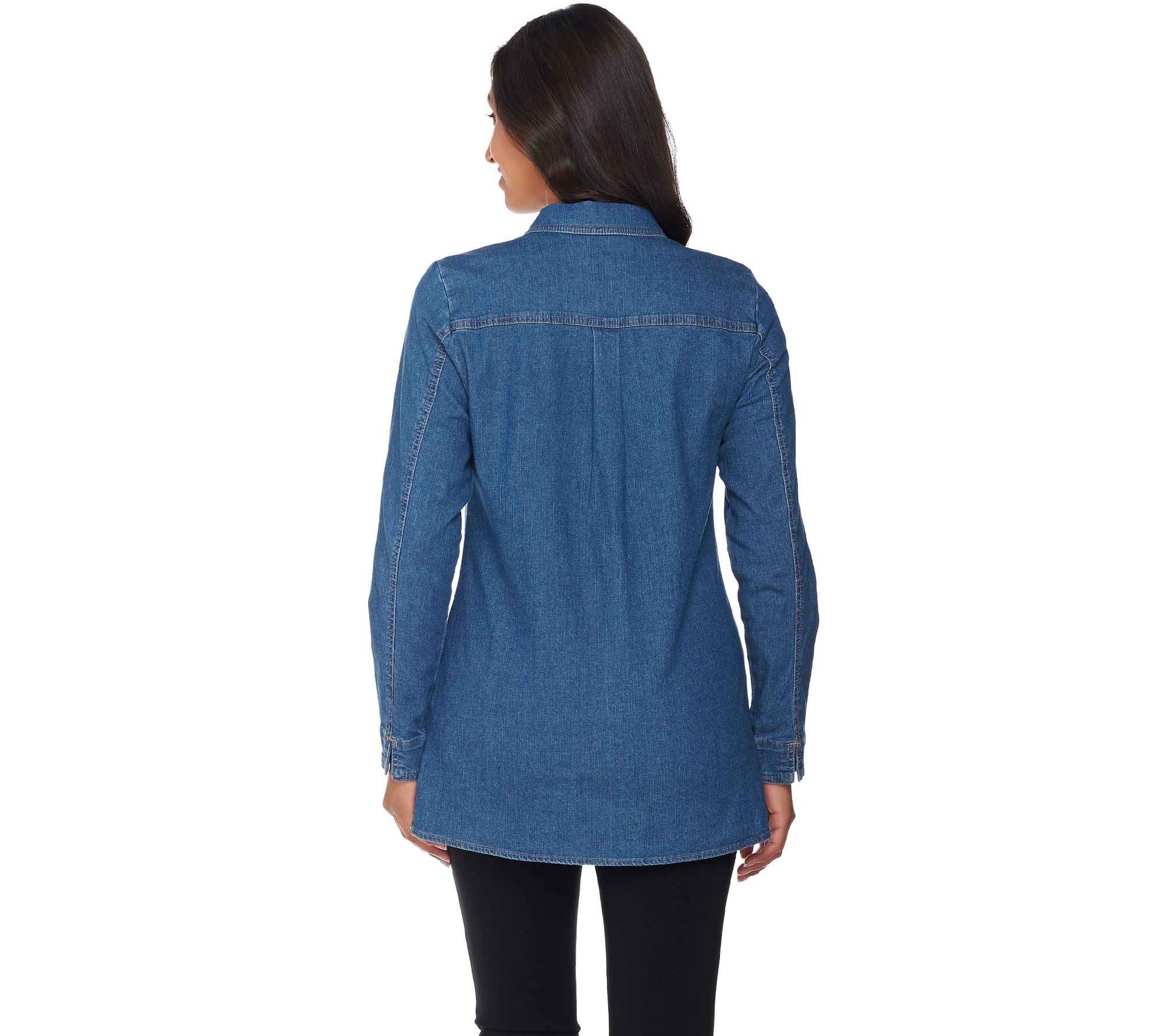 "As Is" Denim & Co. Button Front Denim Shirt with Pockets
