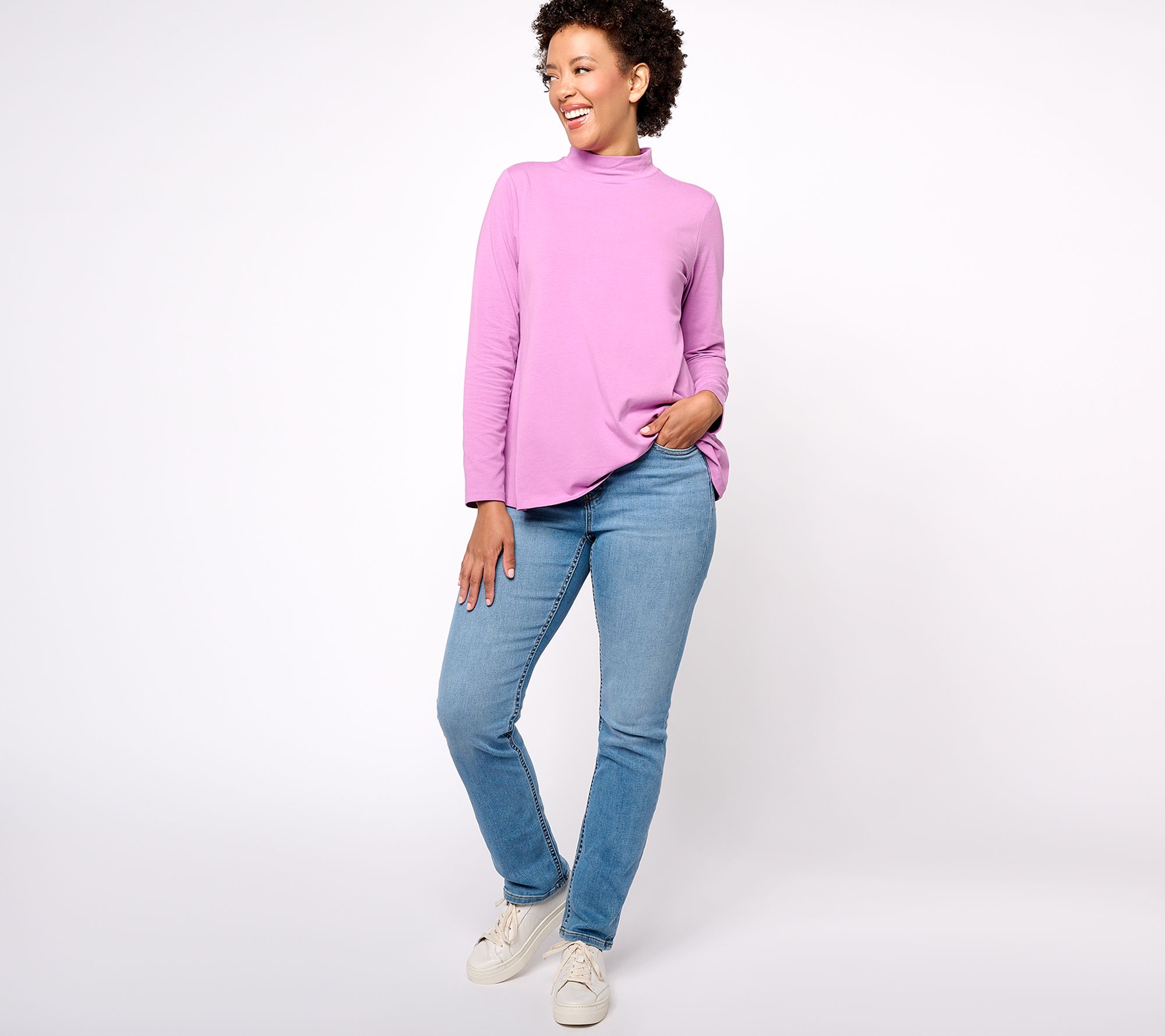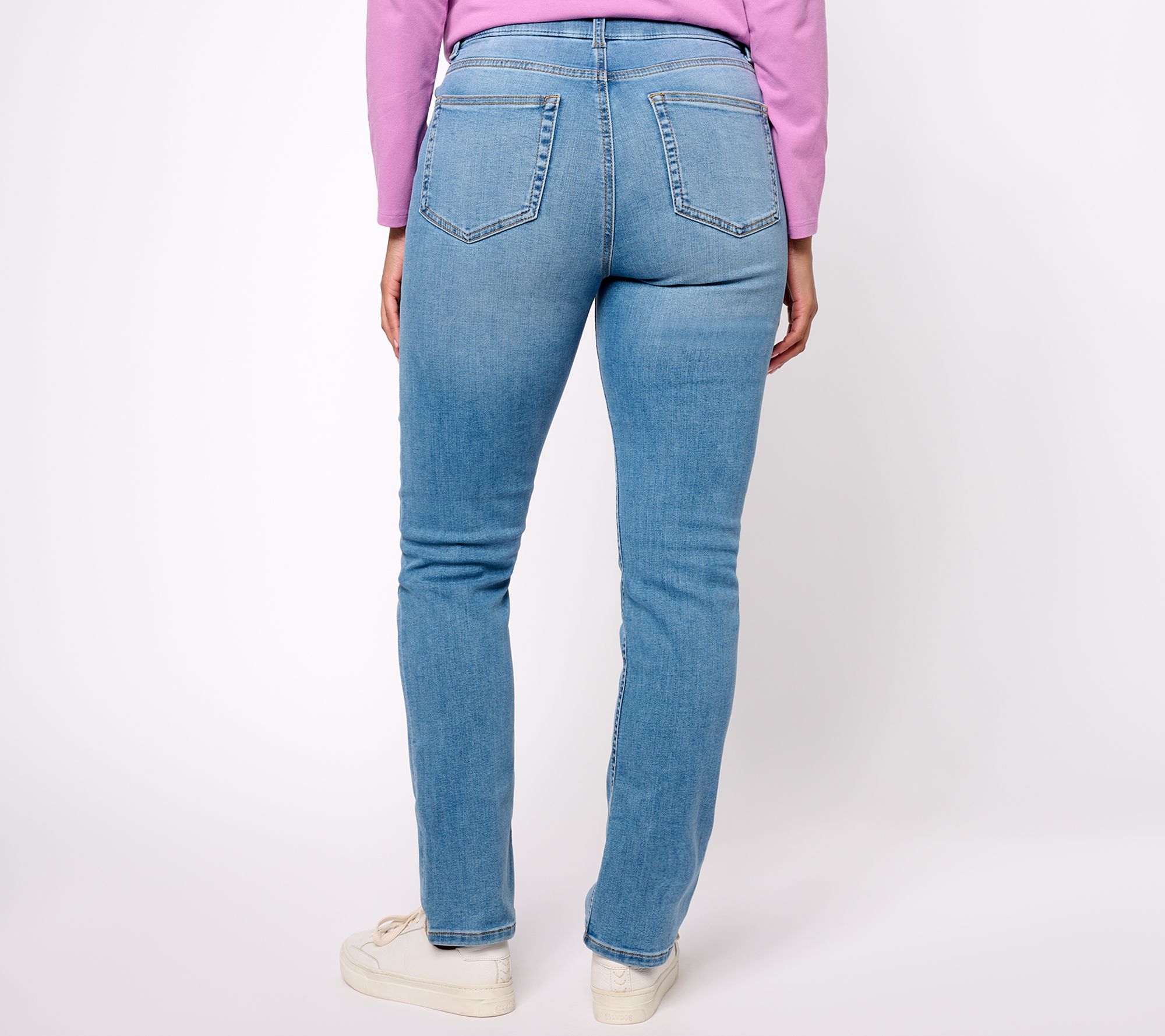 A wardrobe staple, this classic pair of straight-leg jeans deserves a prominent spot in your closet. Dress them up with heels and a tank top for an elegant everyday option. From Denim & Co.® Fashions.
