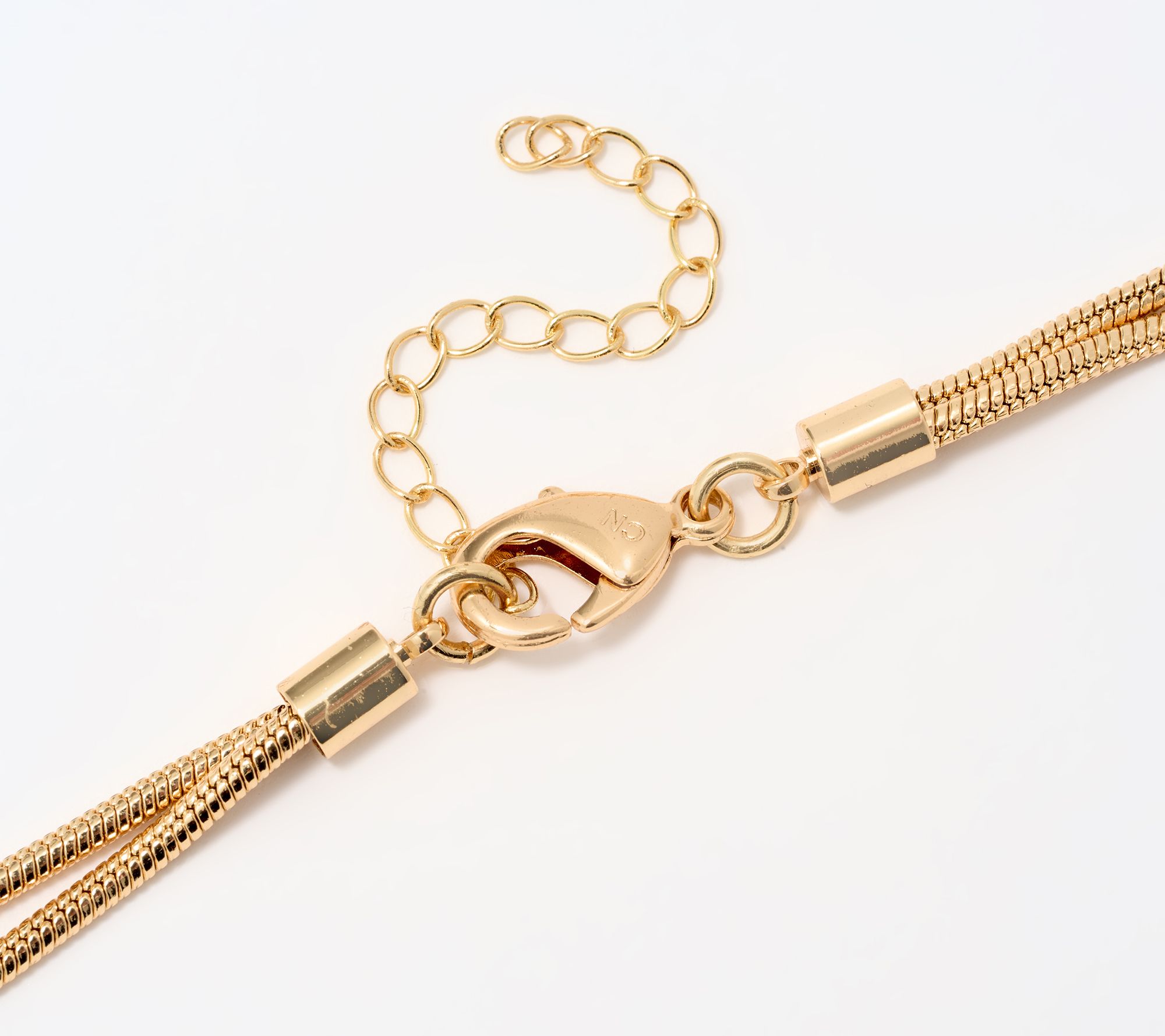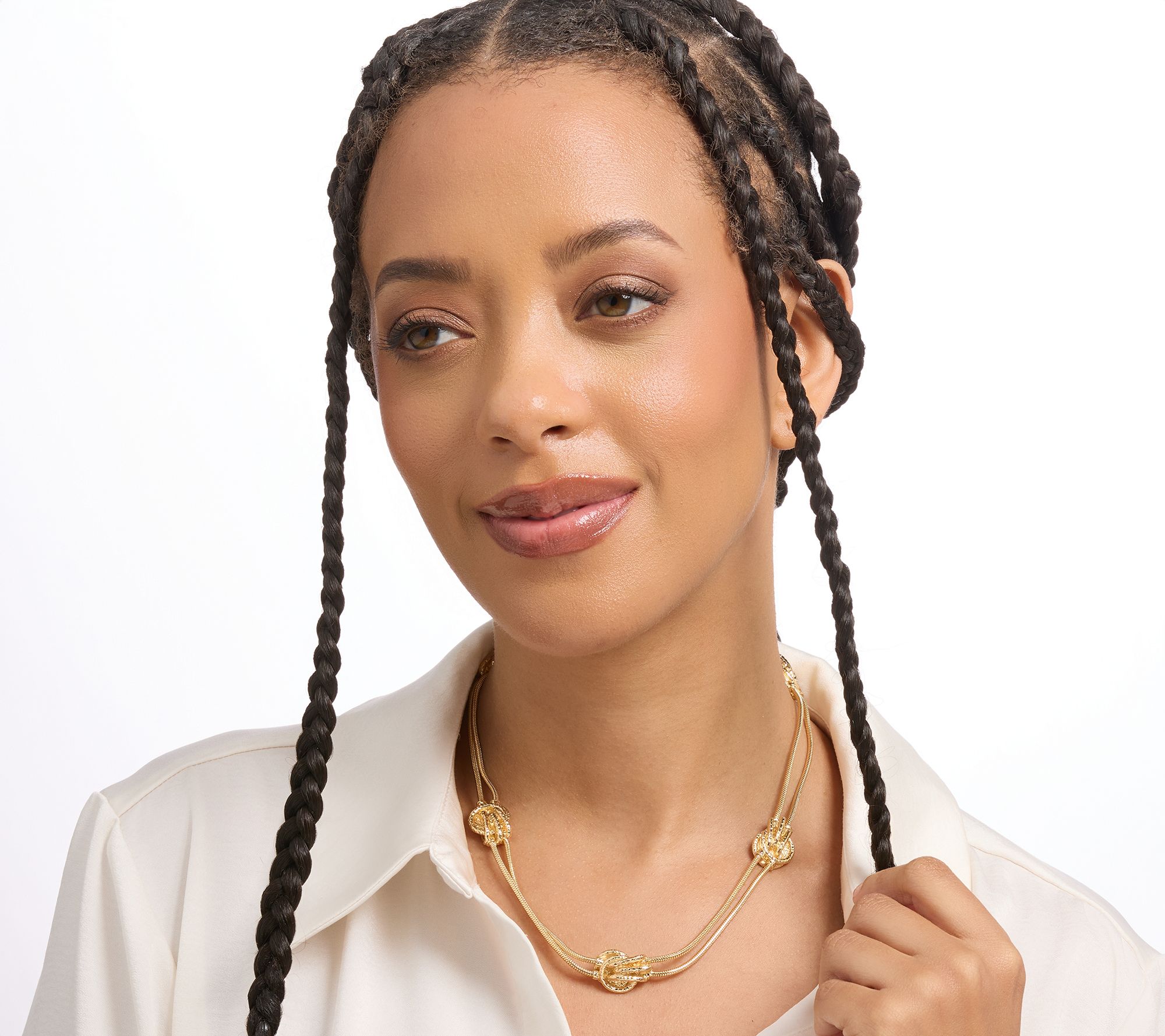 A series of sleek knot stations on this captivating necklace dazzle with distinction, lending just the right amount of interest to any 'fit. The double strand chain pairs beautifully and adjusts with an extender for just the right fit. From Denim & Co.® Fashions.