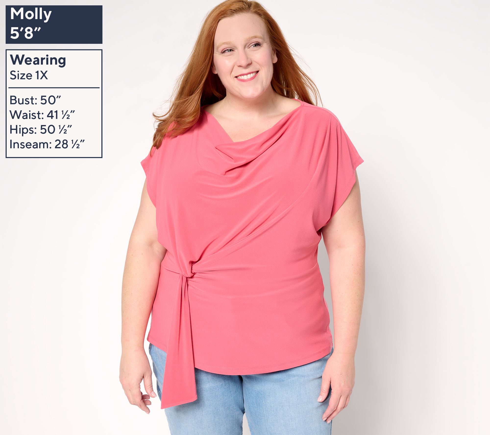 • Features: draped front, knife pleat conceals front diagonal seam, sash design