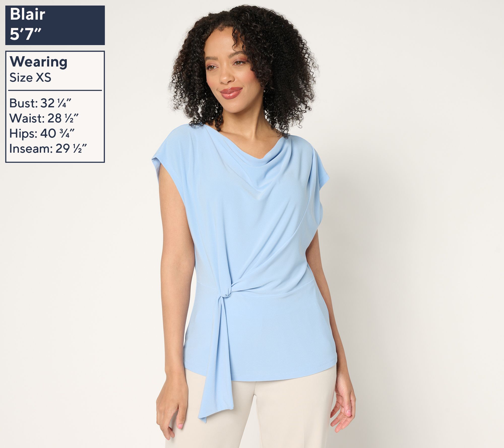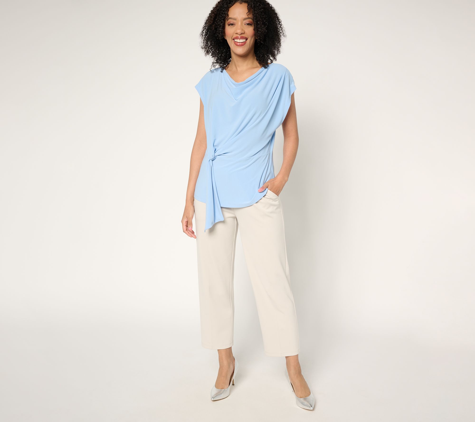 From statement social looks to career suiting, every outfit feels more sophisticated with this draped Caviar Crepe top at the center. From Dennis Basso.
