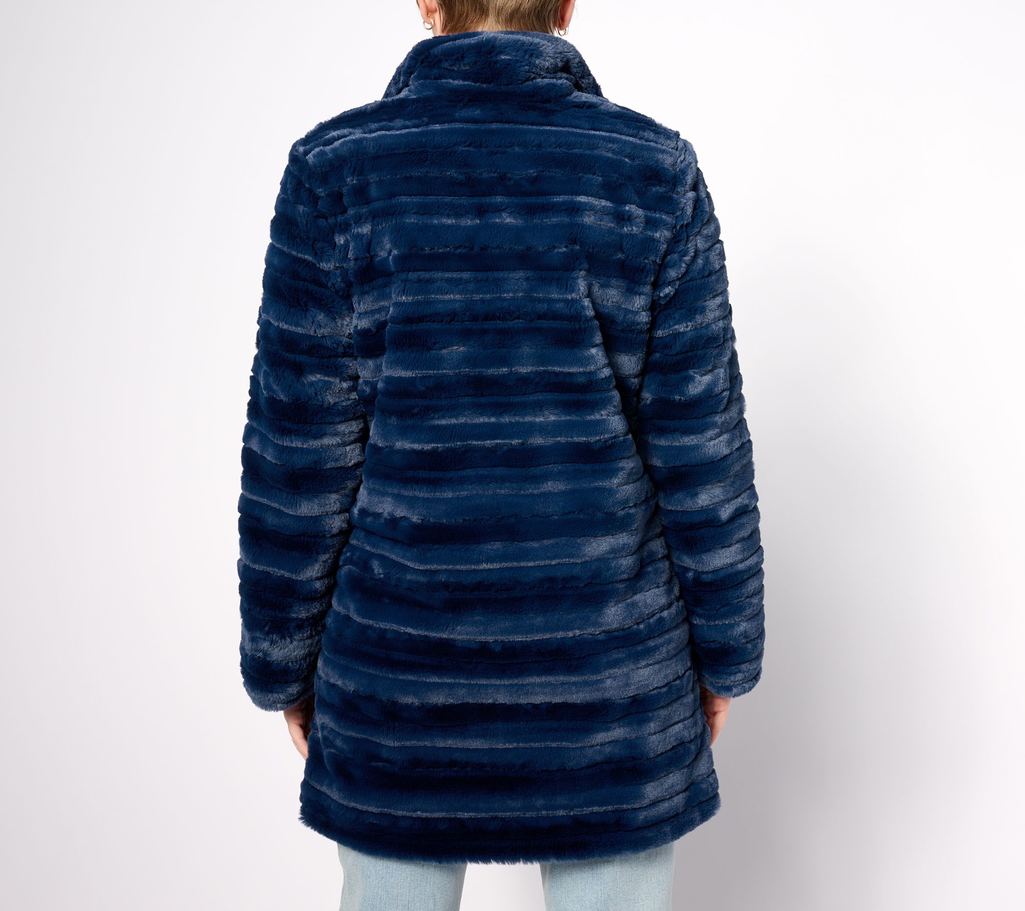 "As Is" Dennis Basso Faux Fur Snap Front Coat with Horizontal Pelting