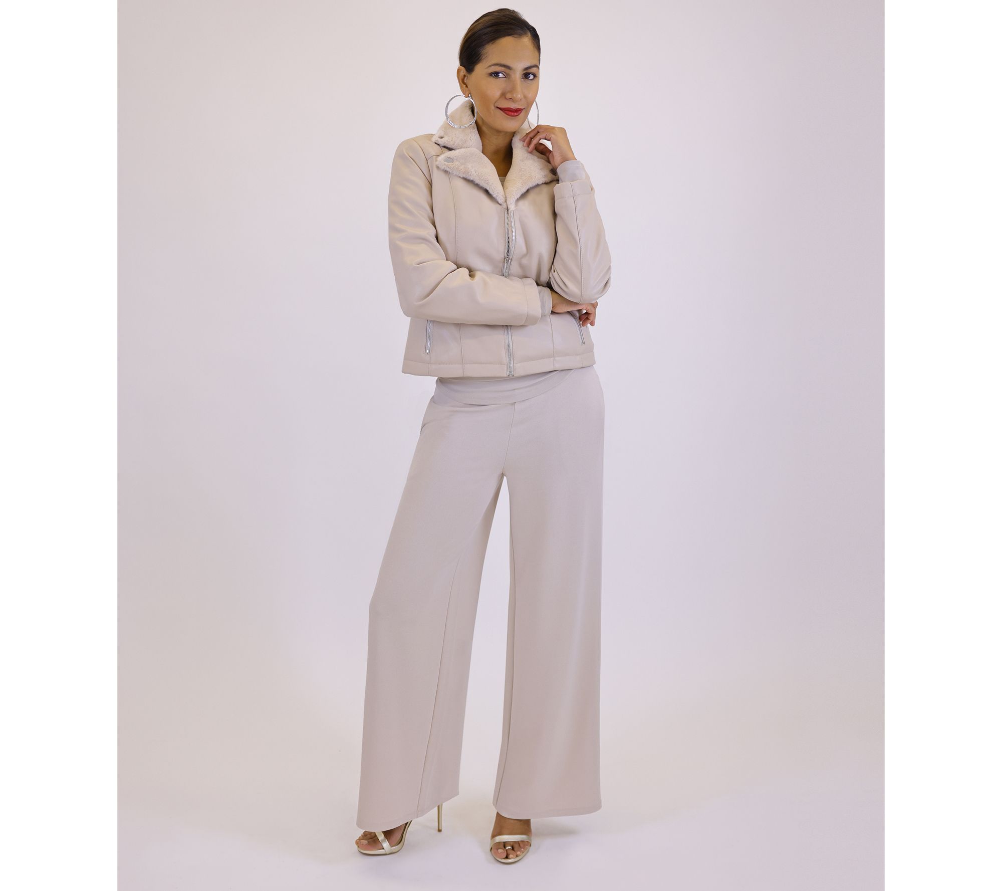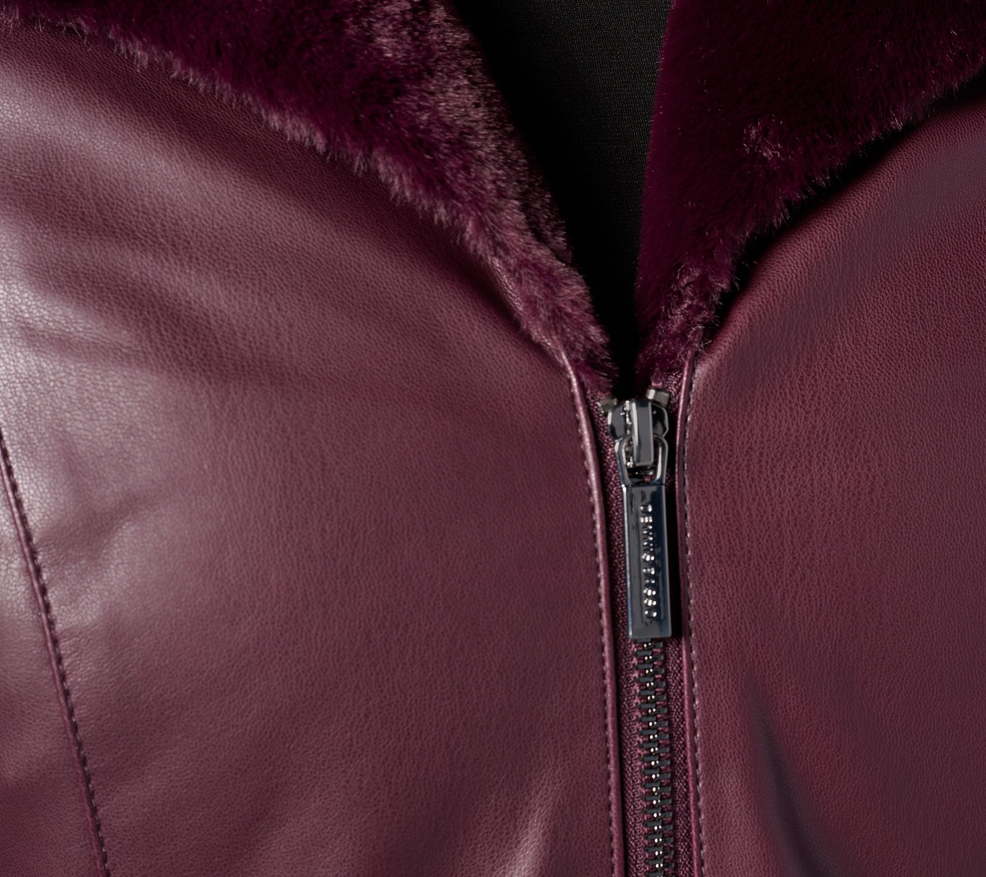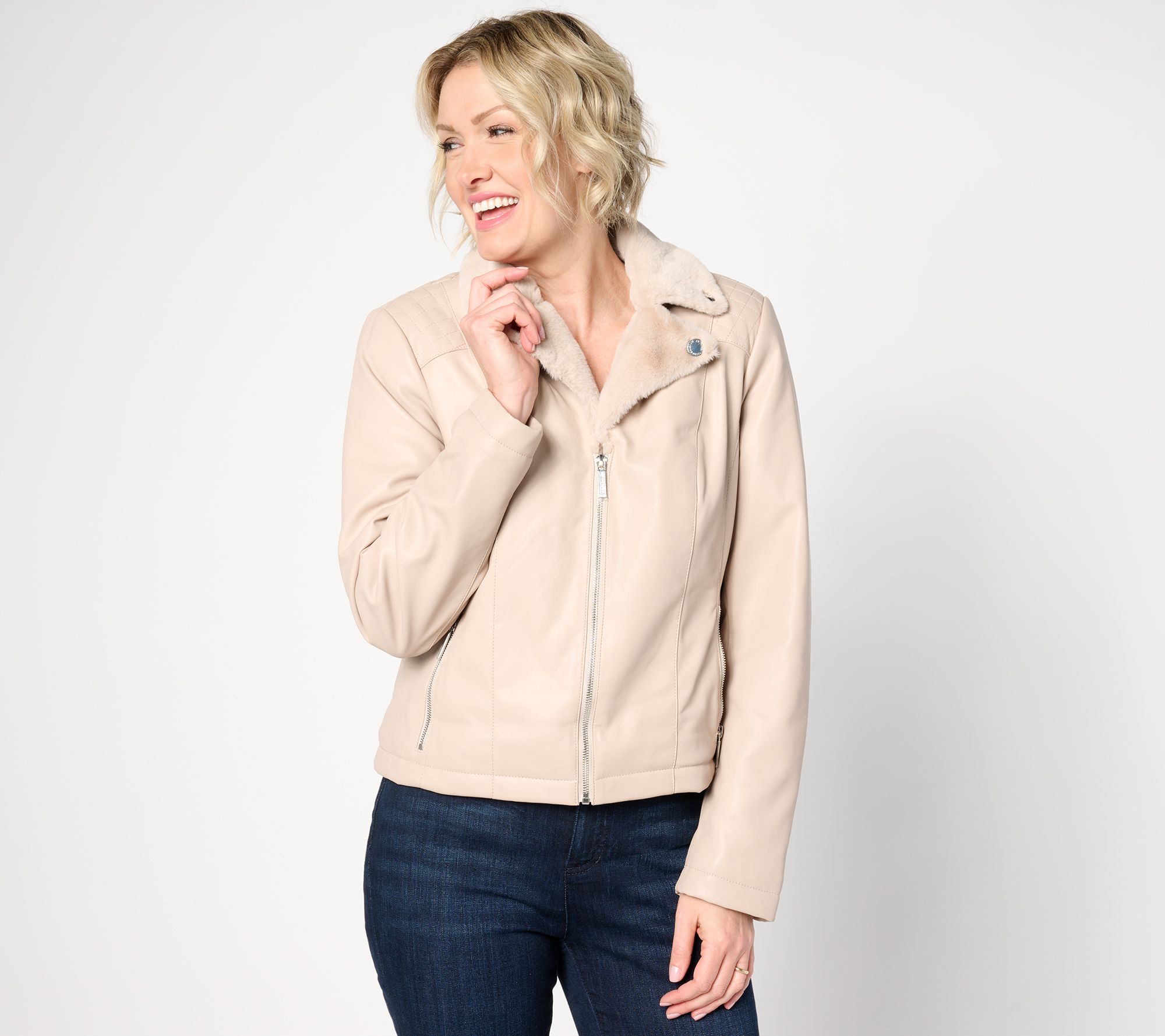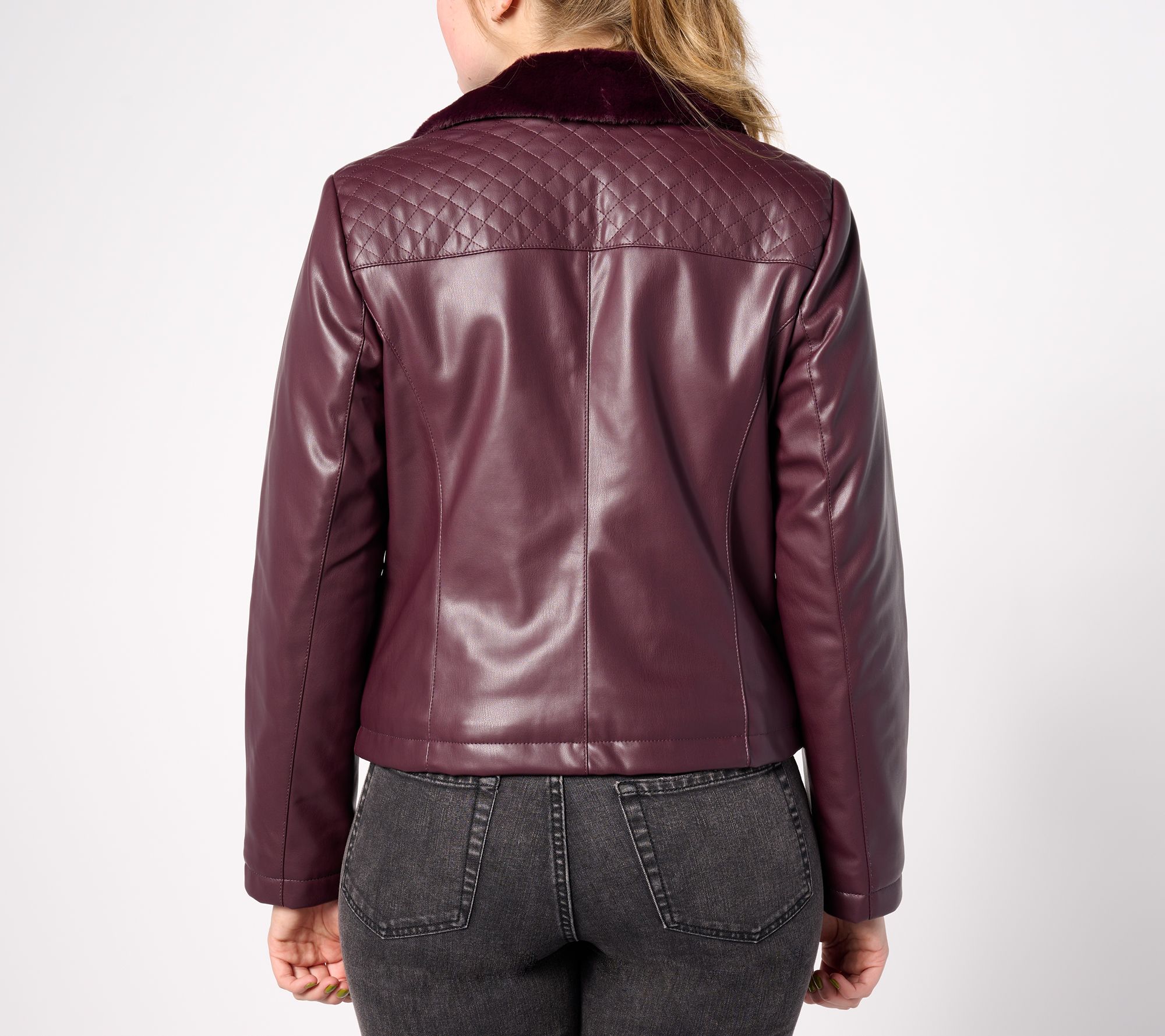 "As Is" Dennis Basso Faux Leather Moto Jacket with Faux Fur Lining