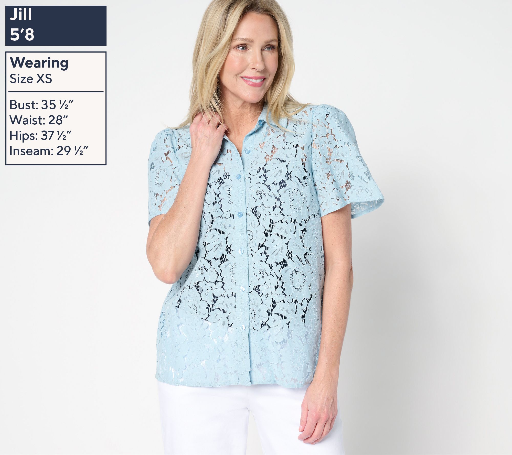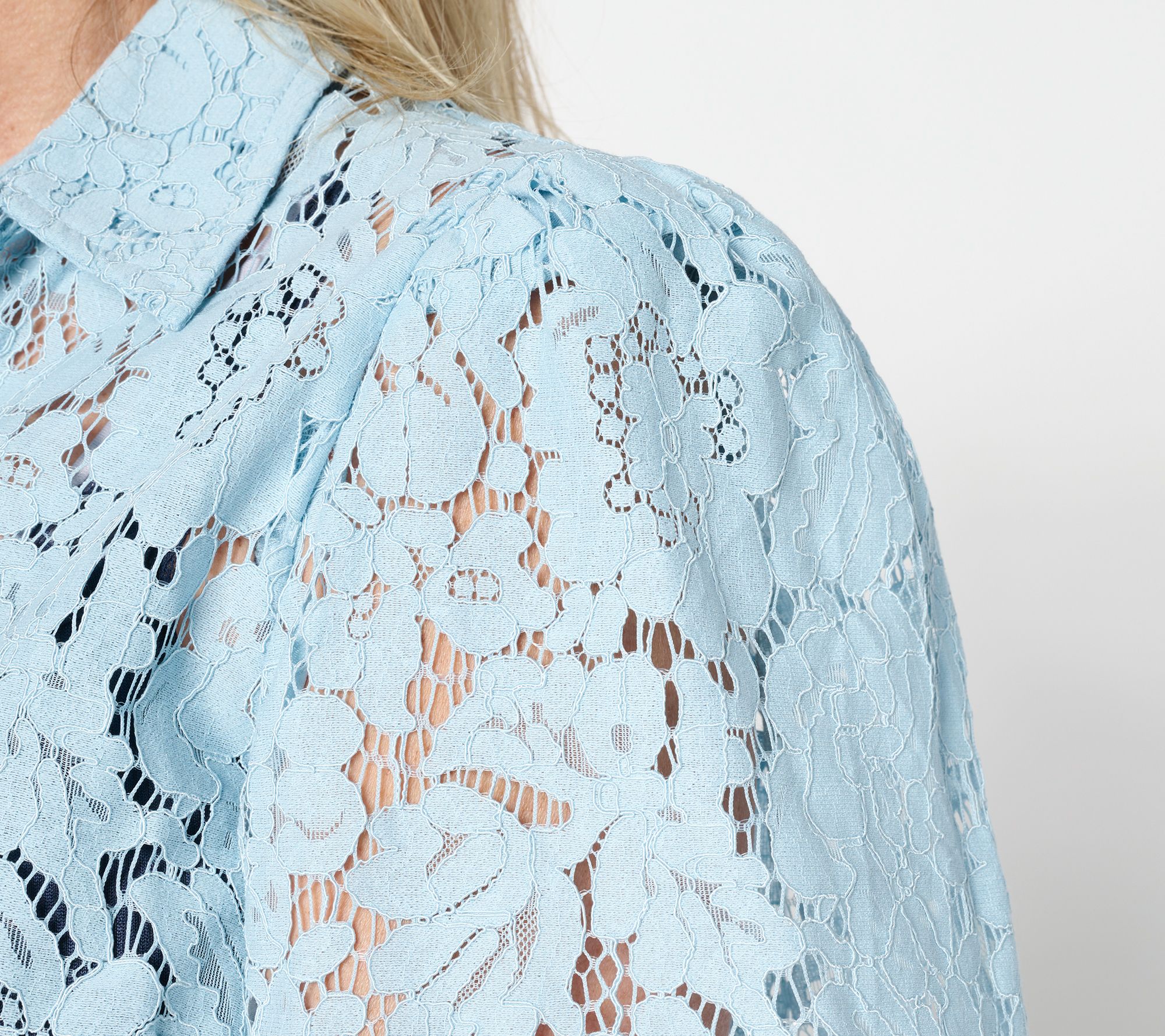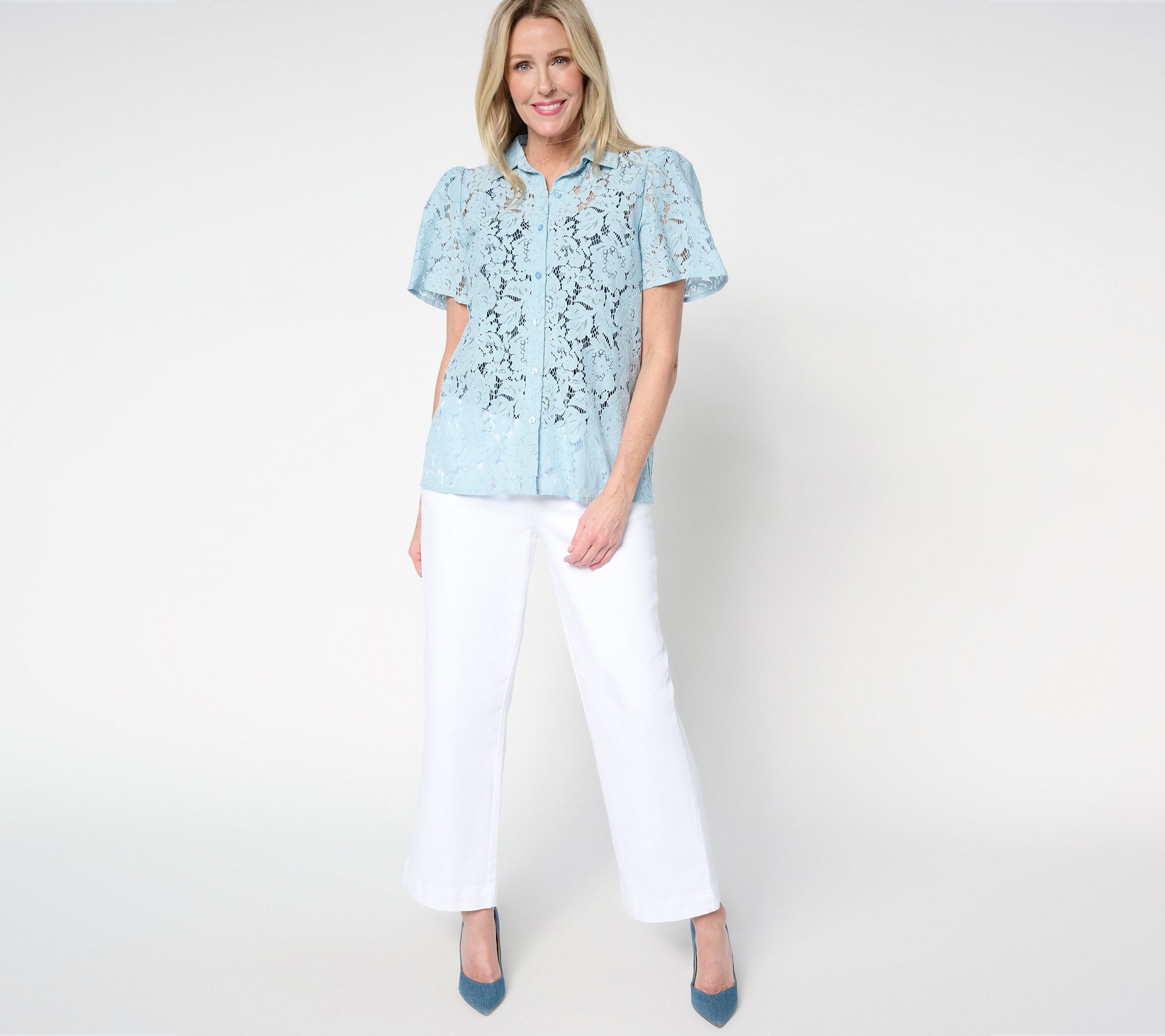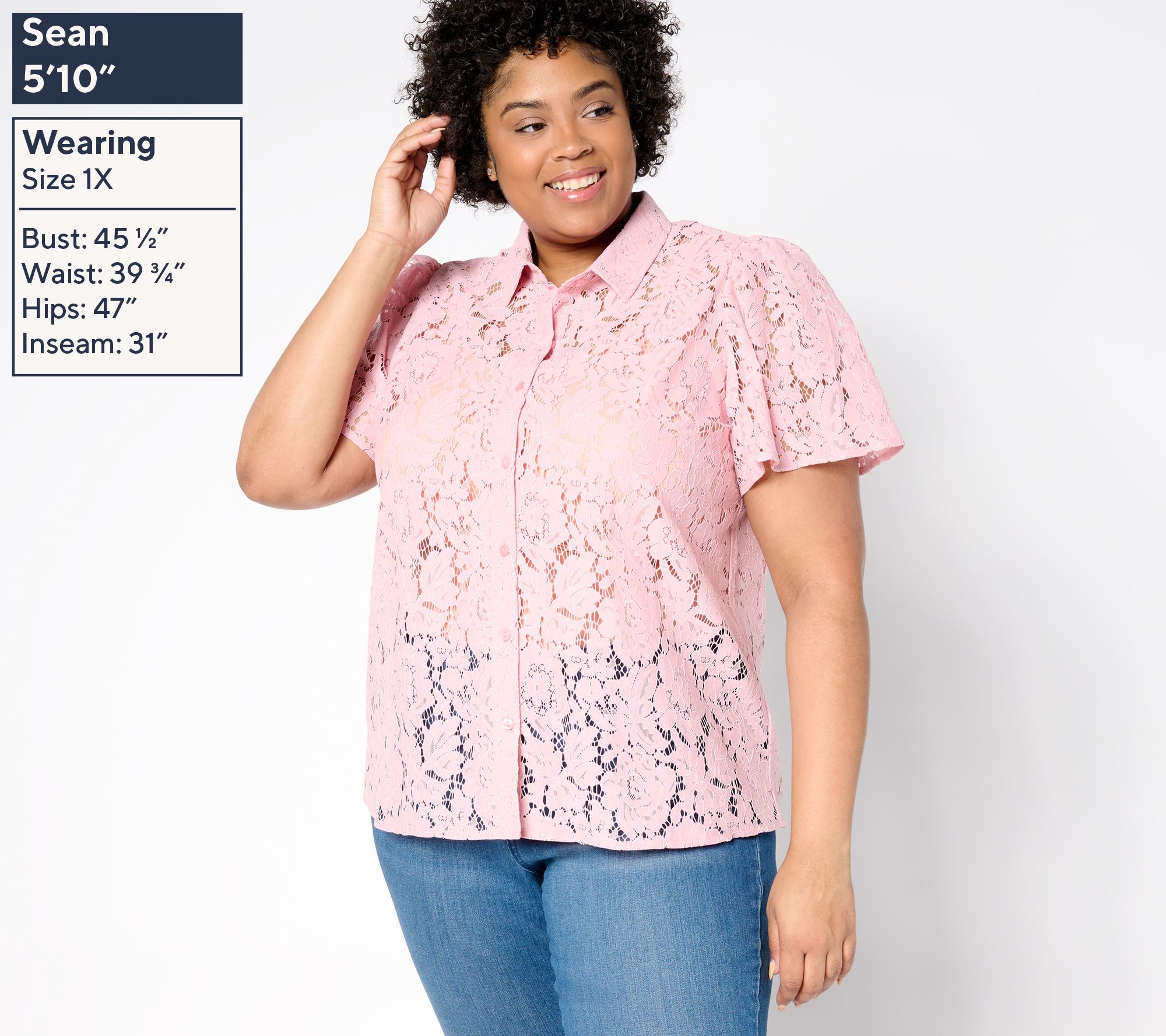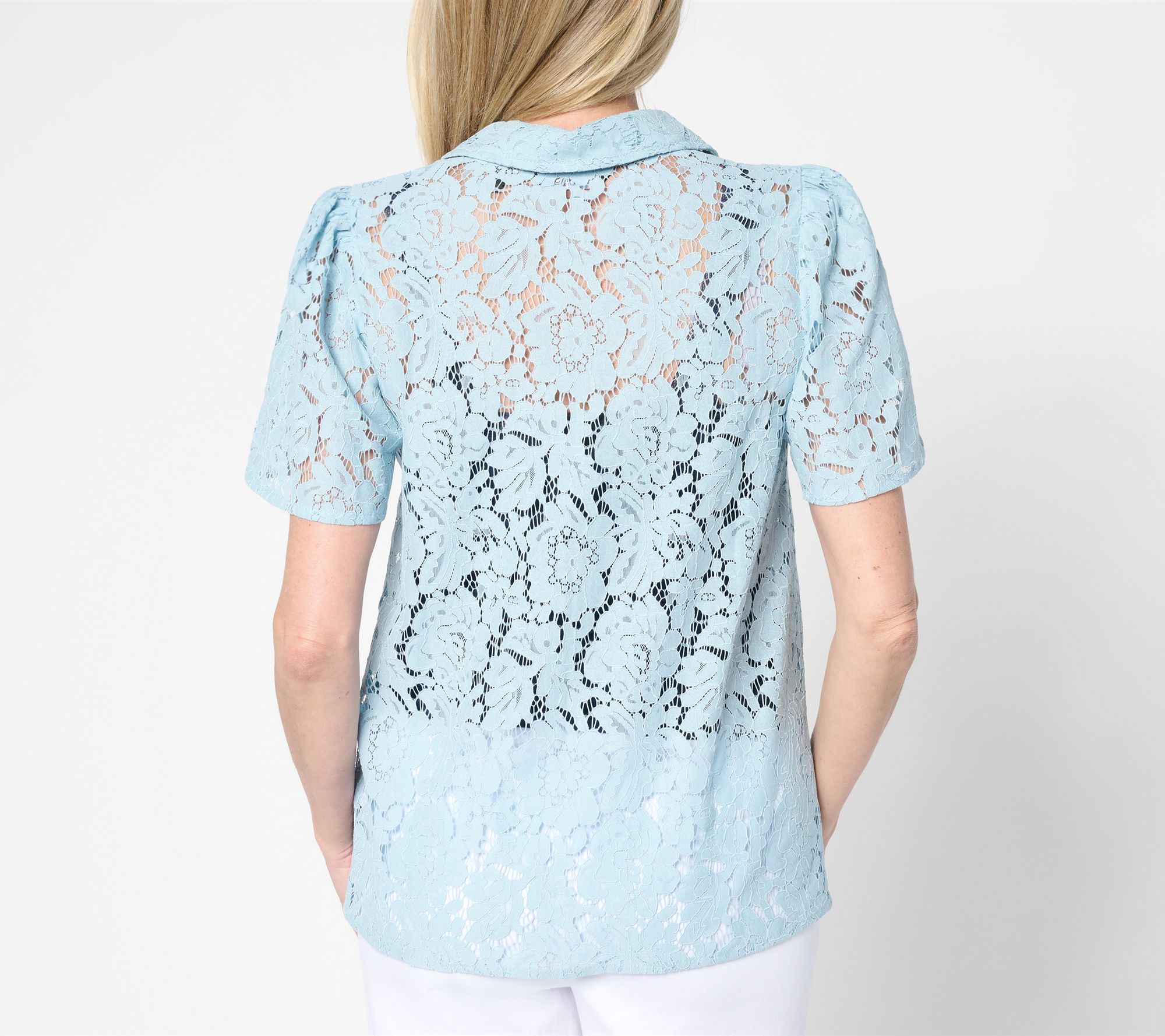 "As Is" Dennis Basso Flutter Sleeve Lace Camp Shirt
