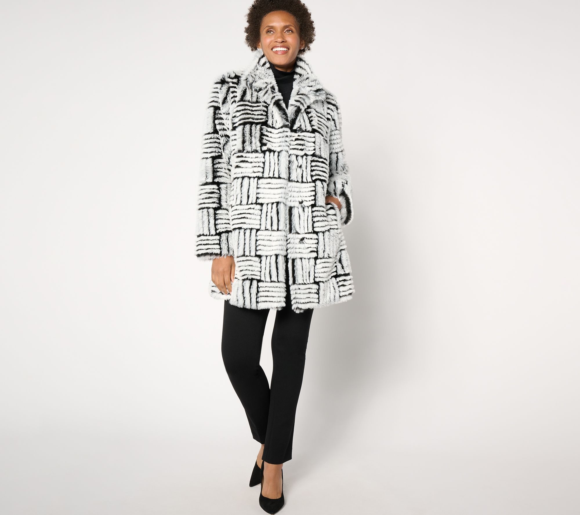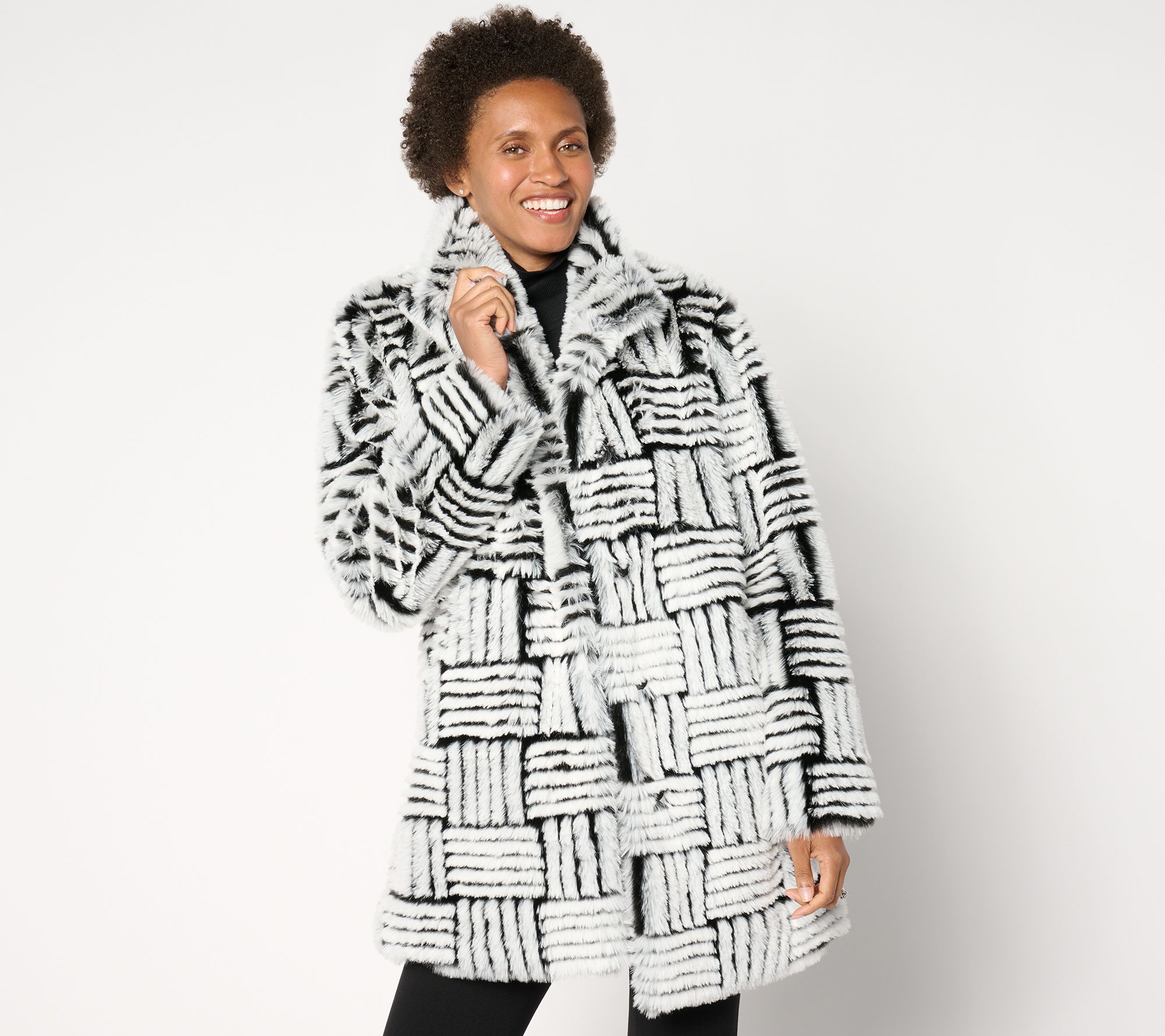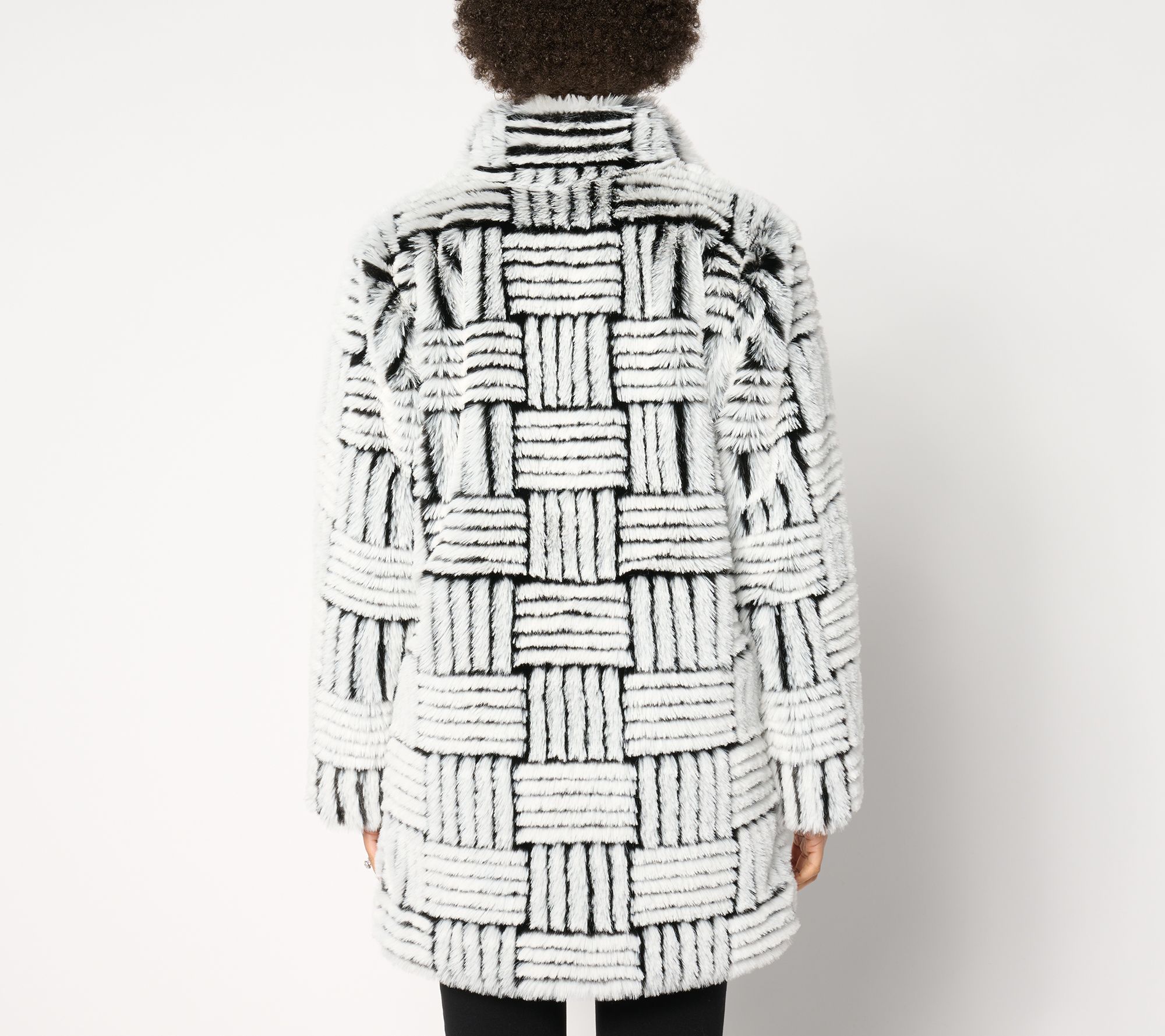 "As Is" Dennis Basso Geo Faux Fur Jacket with Hidden Snap
