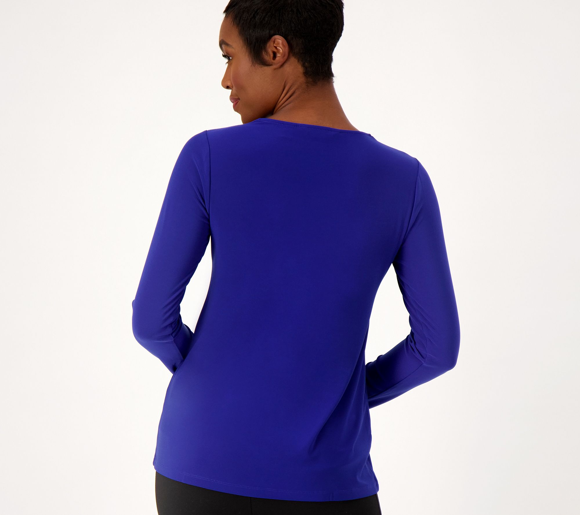 • Features: long sleeves, jewel neckline, embellished V-shaped mesh insert at center-front neck