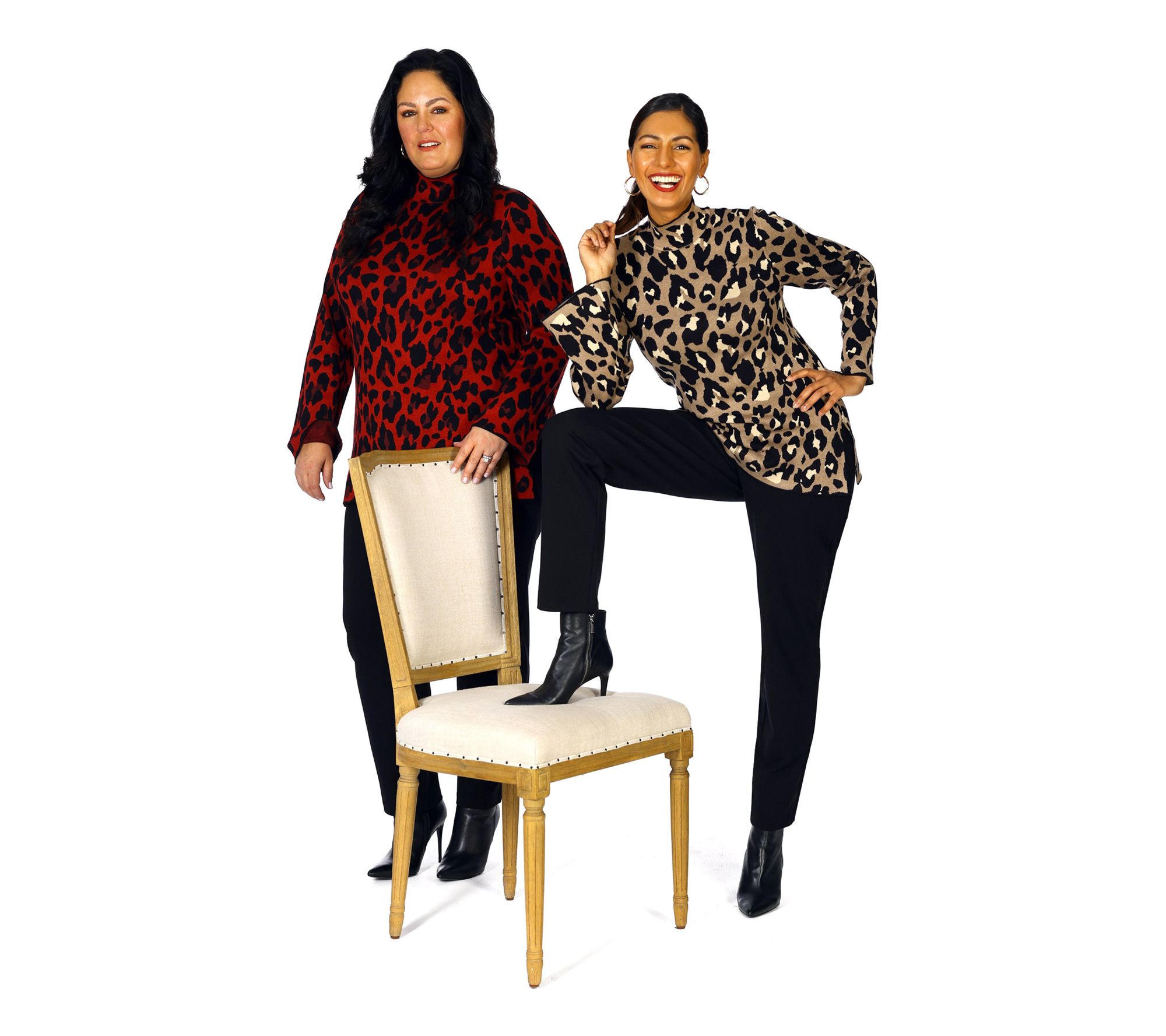 If the tighter fit of a turtleneck tends to turn you off, try this more relaxed version from Dennis Basso. Crafted in a cozy jacquard knit, it bathes the neck in softness while long bell sleeves turn up the elegance. From Dennis Basso.