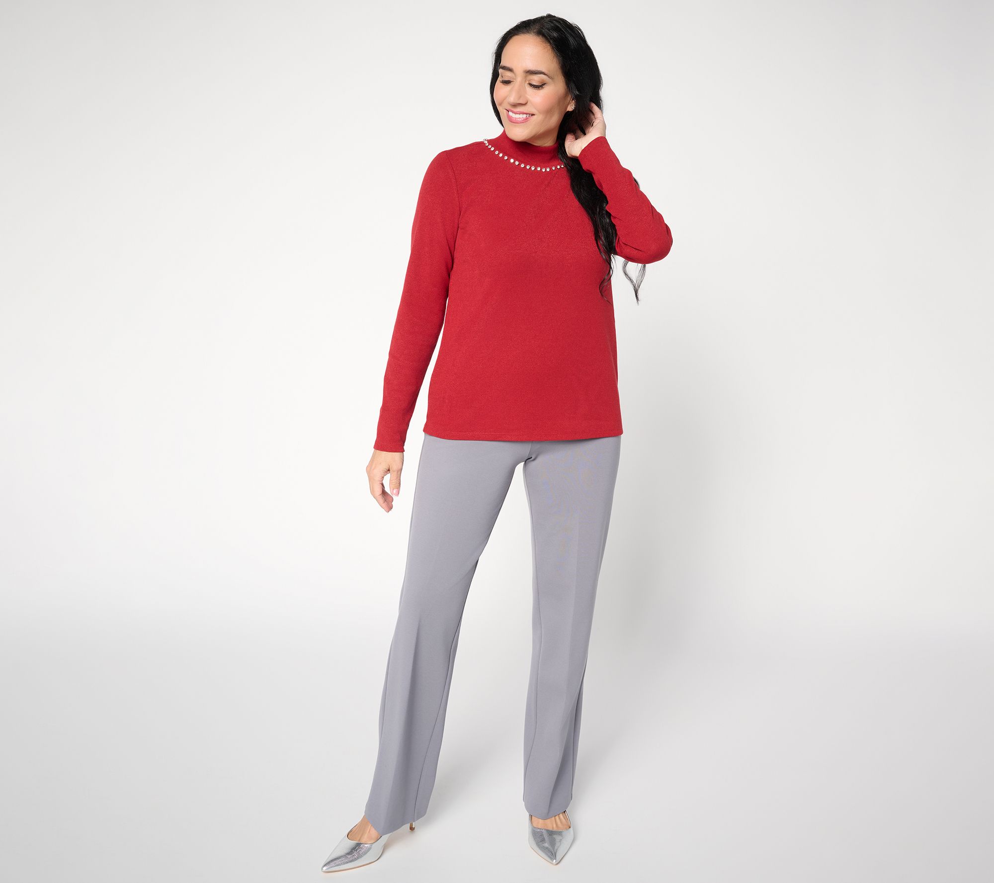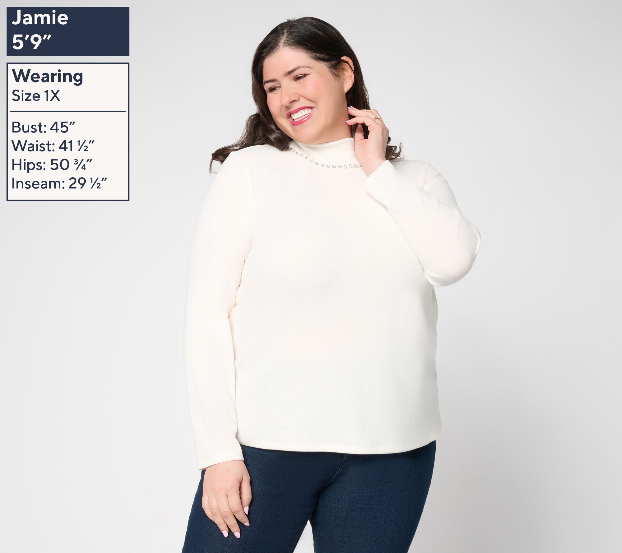 "As Is" Dennis Basso Mock Neck Sweater with Embellishment