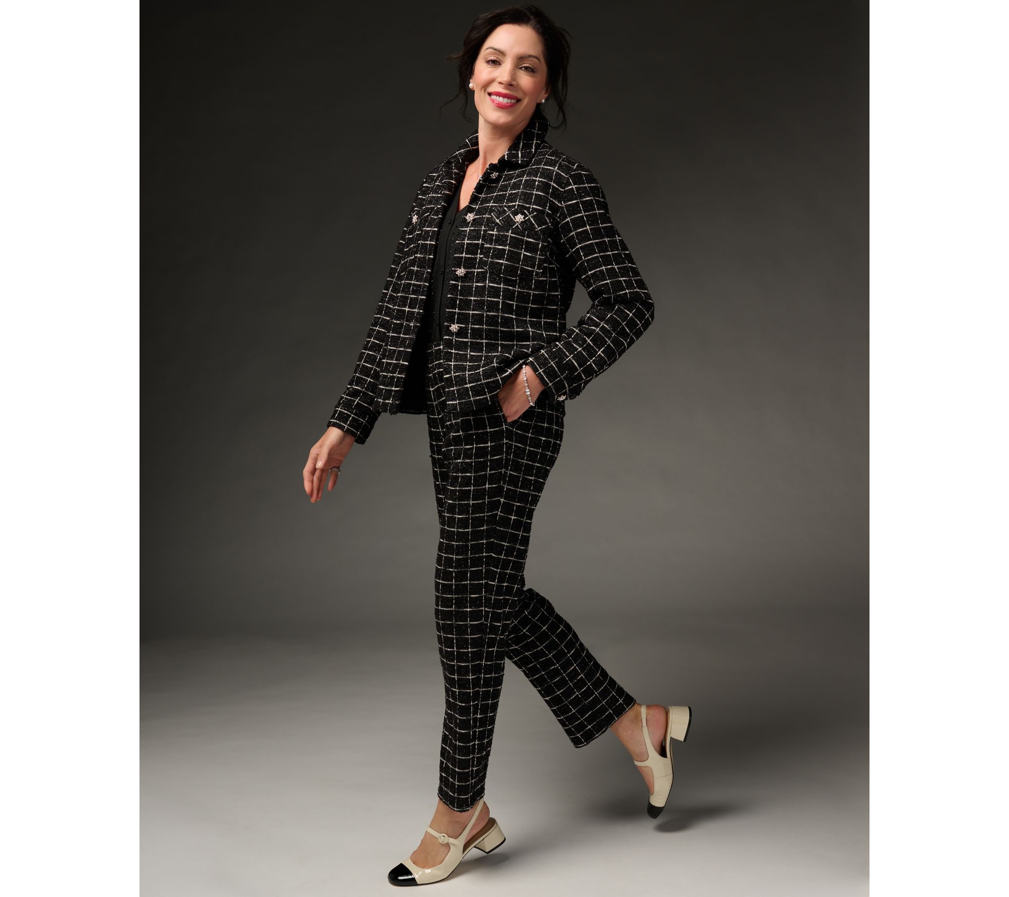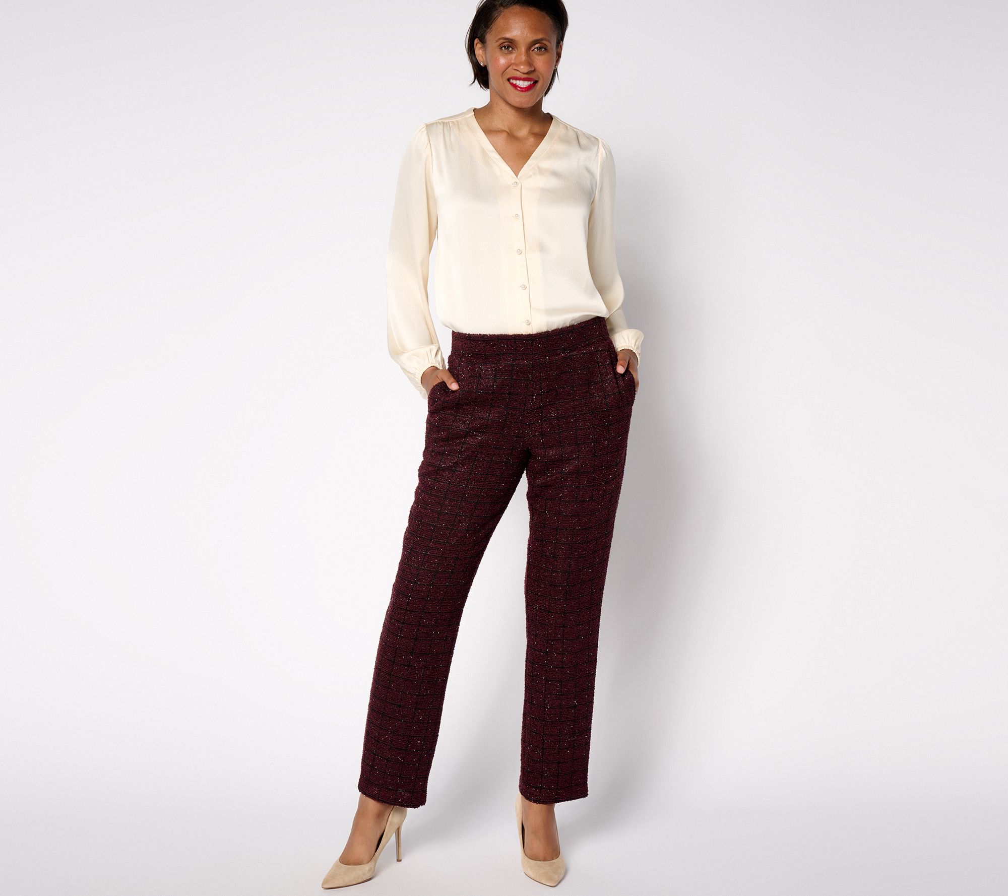 These boucle knit pants elevate your look with a hint of sparkle. Dressed up or down, they're always a fabulous choice. From Dennis Basso.