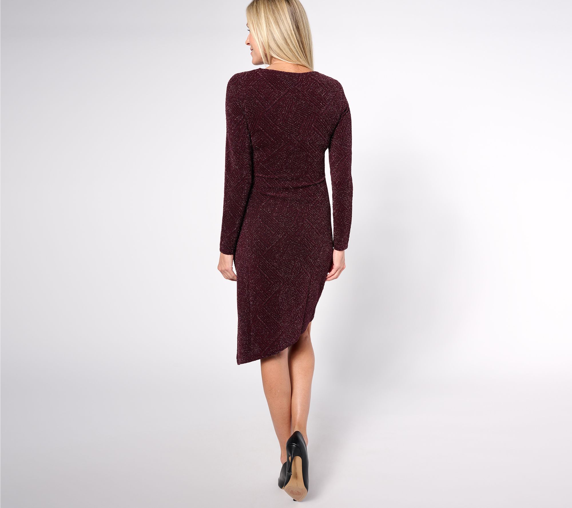 "As Is" Dennis Basso Petite Lurex Knit Asymmetrical Dress