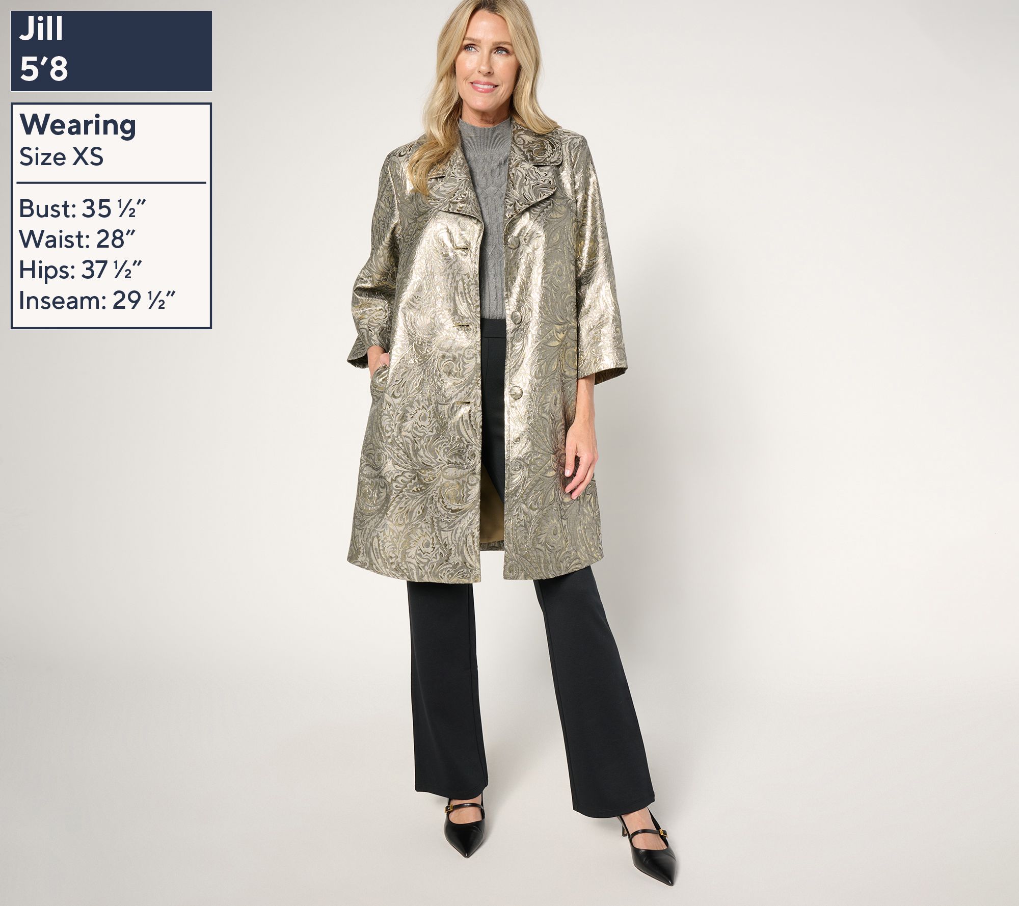 • Length: petite missy length 36-1/4" to 38-3/8"; petite plus length 38-3/4" to 42-1/4"