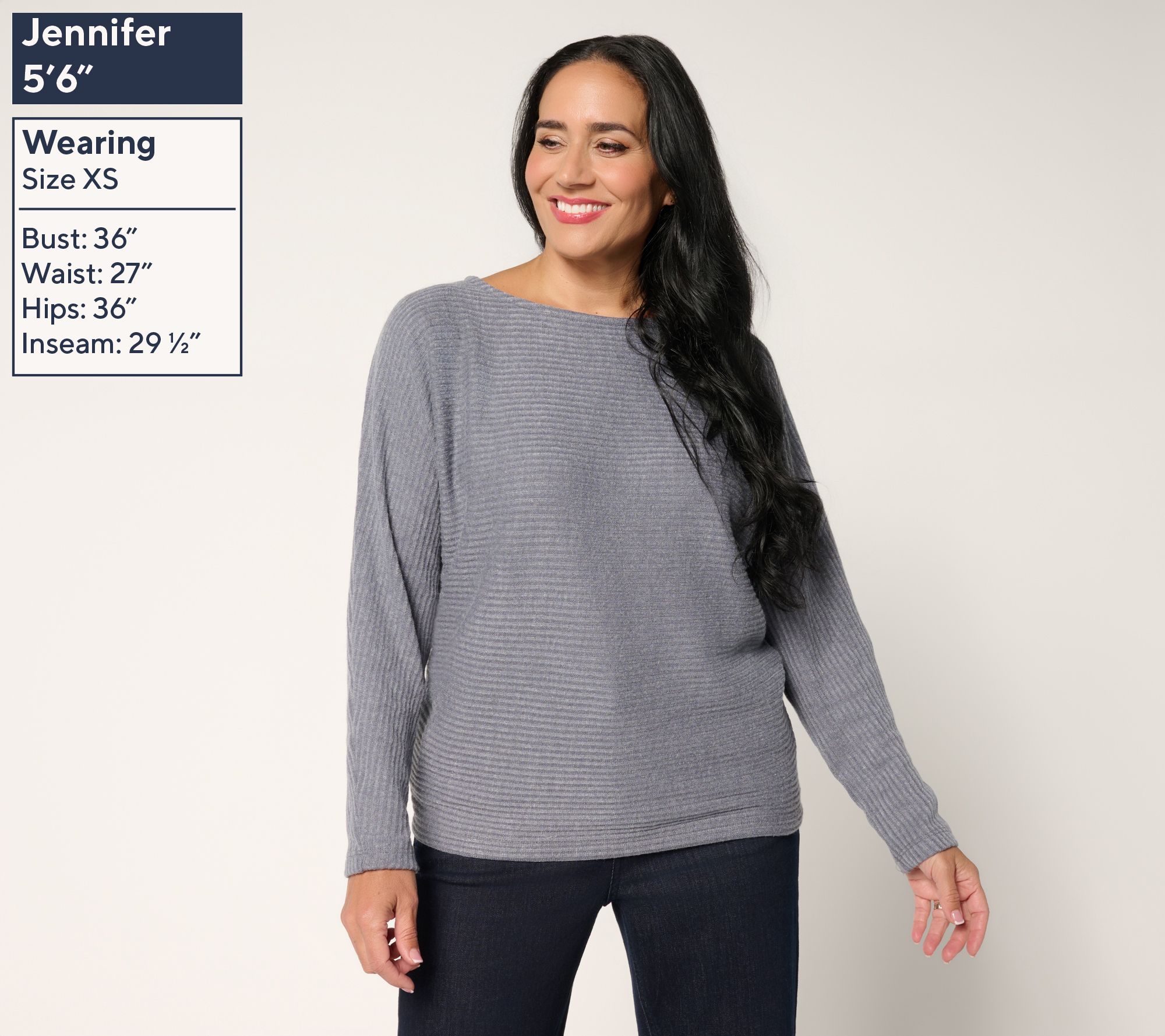 "As Is" Dennis Basso Petite Rib Sweater Top with Dolman Sleeve