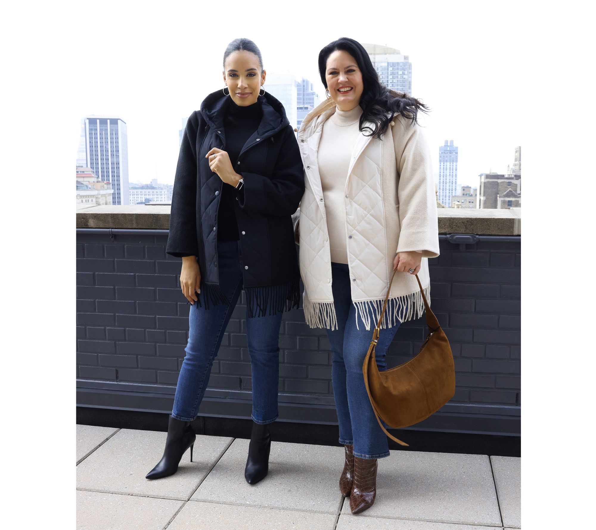 For city strolls or outdoor gatherings, this mixed media capelet wraps you in warmth and flair with its cozy wool-blend body, modern diamond quilting, and a playful fringe at the hem. The drawstring hood, snap-front closure, and welt pockets offer both comfort and versatility, making it an easy layer for any cool-weather plan. From Dennis Basso.