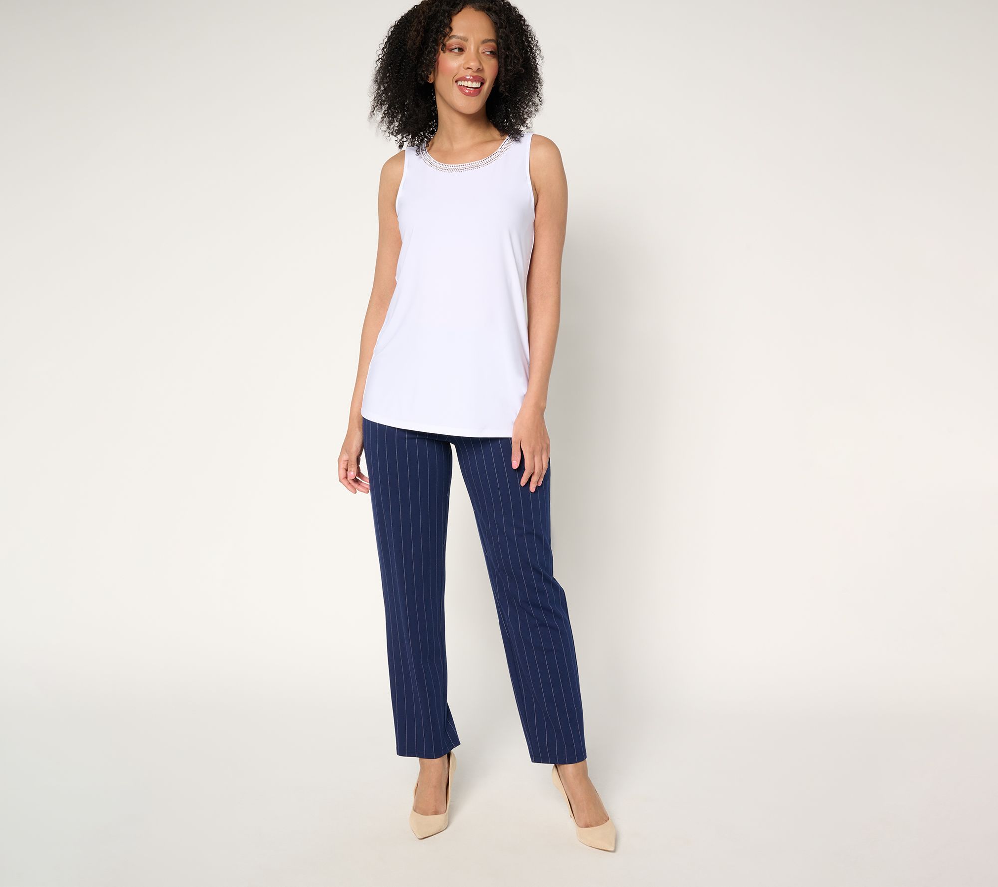Your spring wardrobe needs a revival, and these pinstripe pants are here for it. The pull-on style makes them a breeze to wear for a day full of meetings, while the fashionable straight leg means they look fabulous for dinner out. From Dennis Basso.