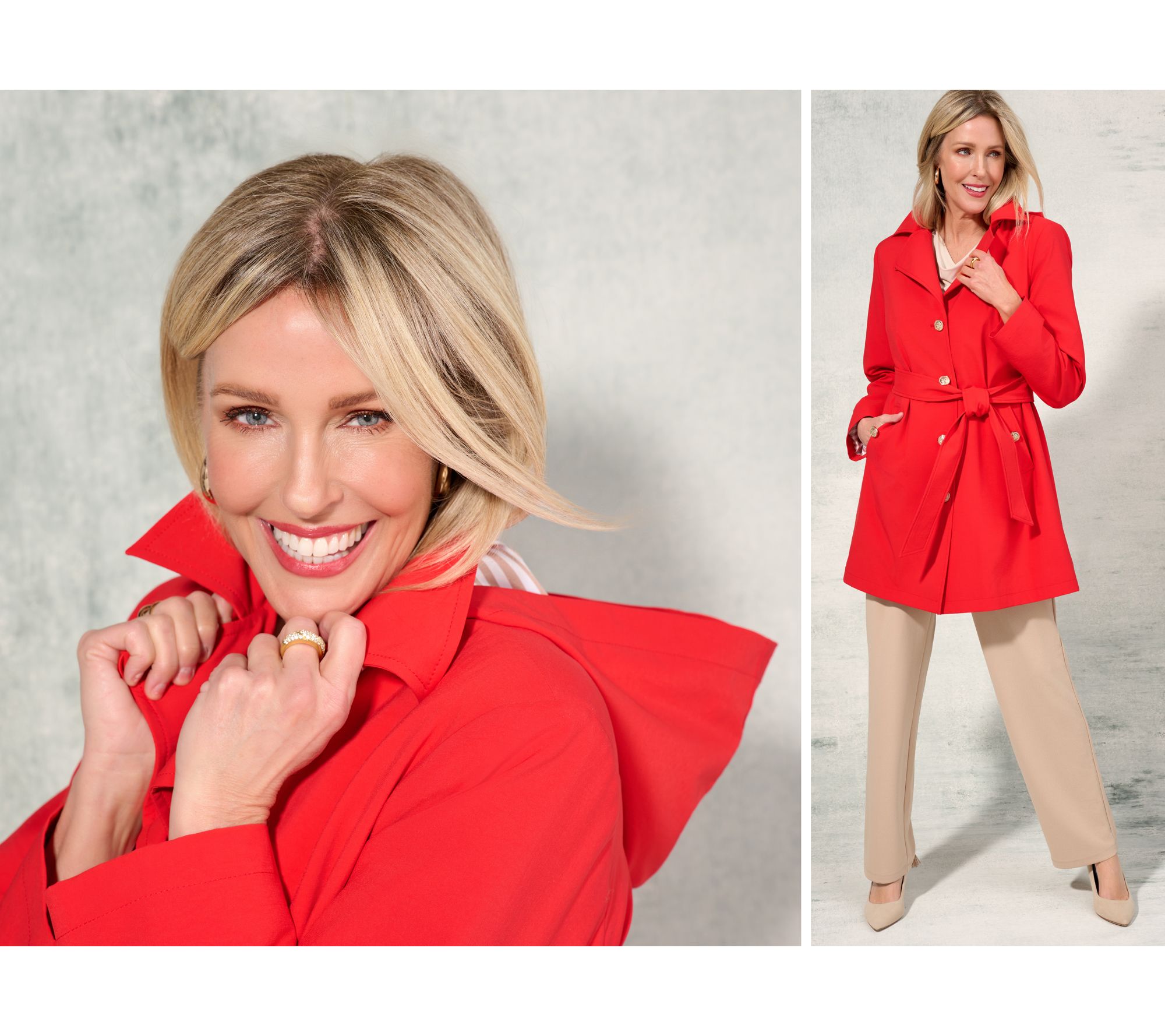 Straight off the runway and into your outerwear rotation, this classic trench coat from Dennis Basso combines elevated design details (did you see those sleek goldtone buttons?) with functional features to create the ultimate outfit completer. Whether you're headed to the office, meeting up with friends, or making your weekend errand run, you're instantly chic once you slip into the single-breasted silhouette and adjust the self tie for your preferred fit. Bonus: you'll always be prepared for pop-up showers with the water-resistant fabrication and removable hood. Pick up this easy-to-wear style in a neutral color for a more subdued look or show off your vibrant personality with a bold fashion color. From Dennis Basso.