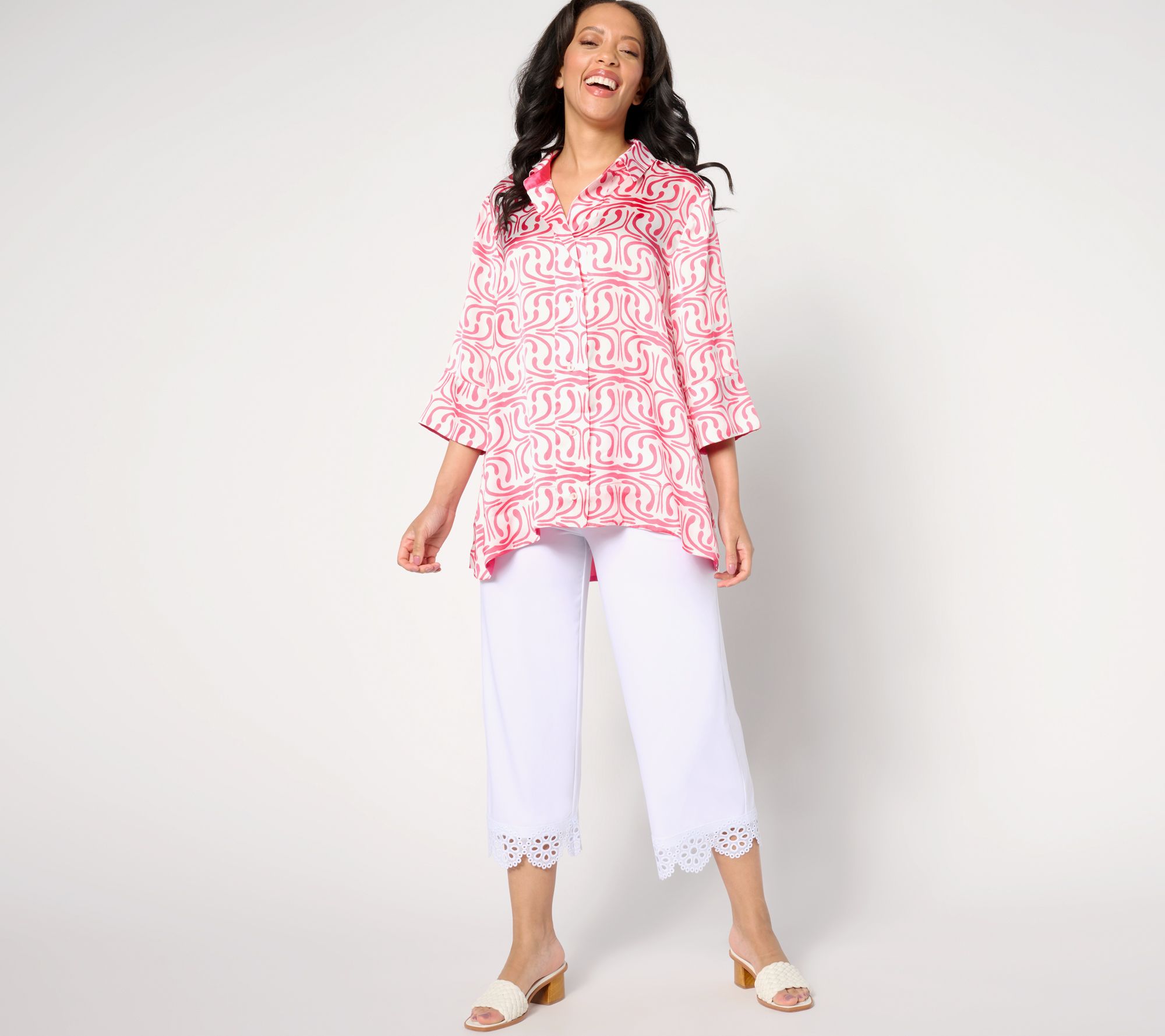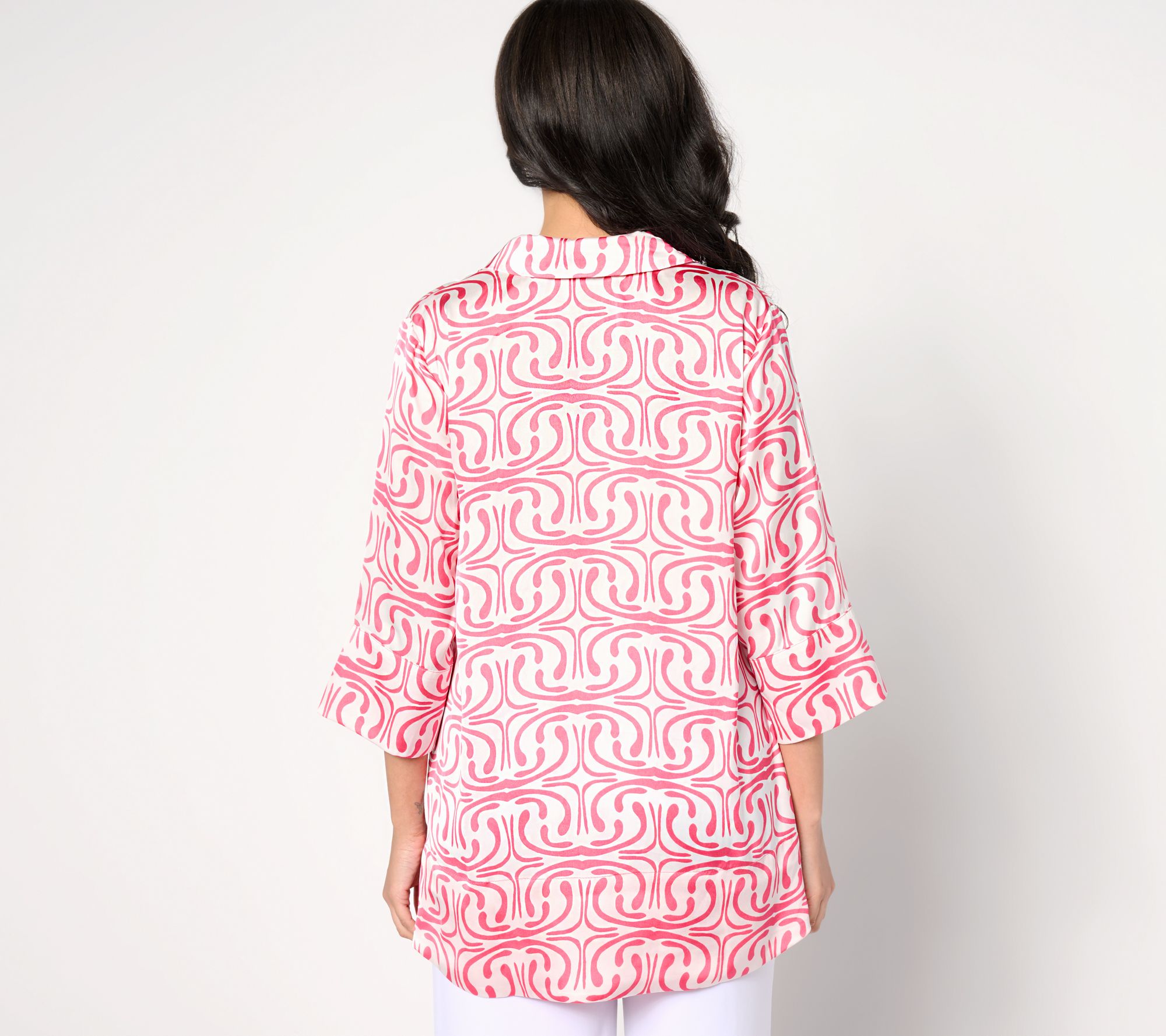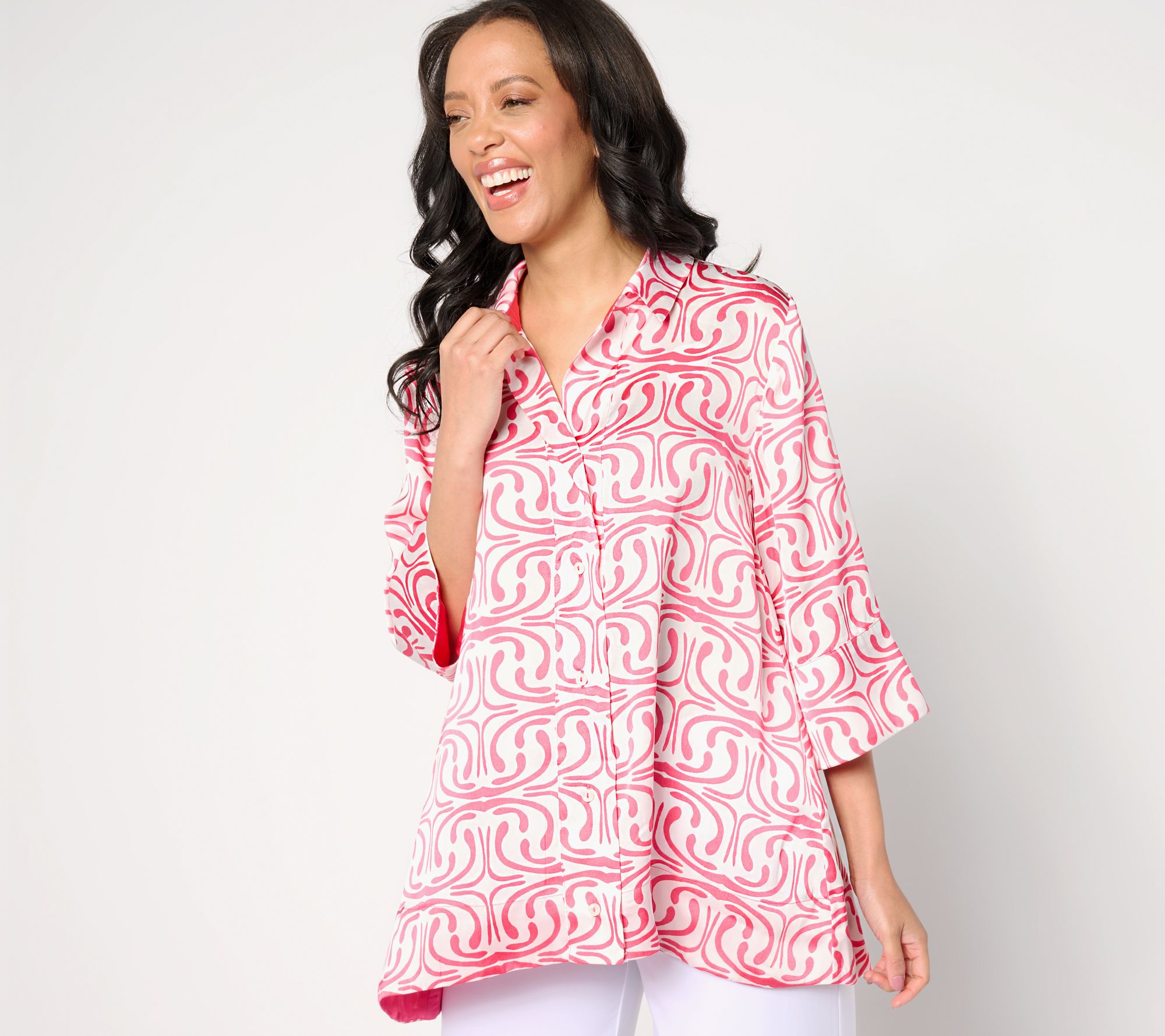 "As Is" Dennis Basso Printed Button Front Tunic with 3/4 Sleeves
