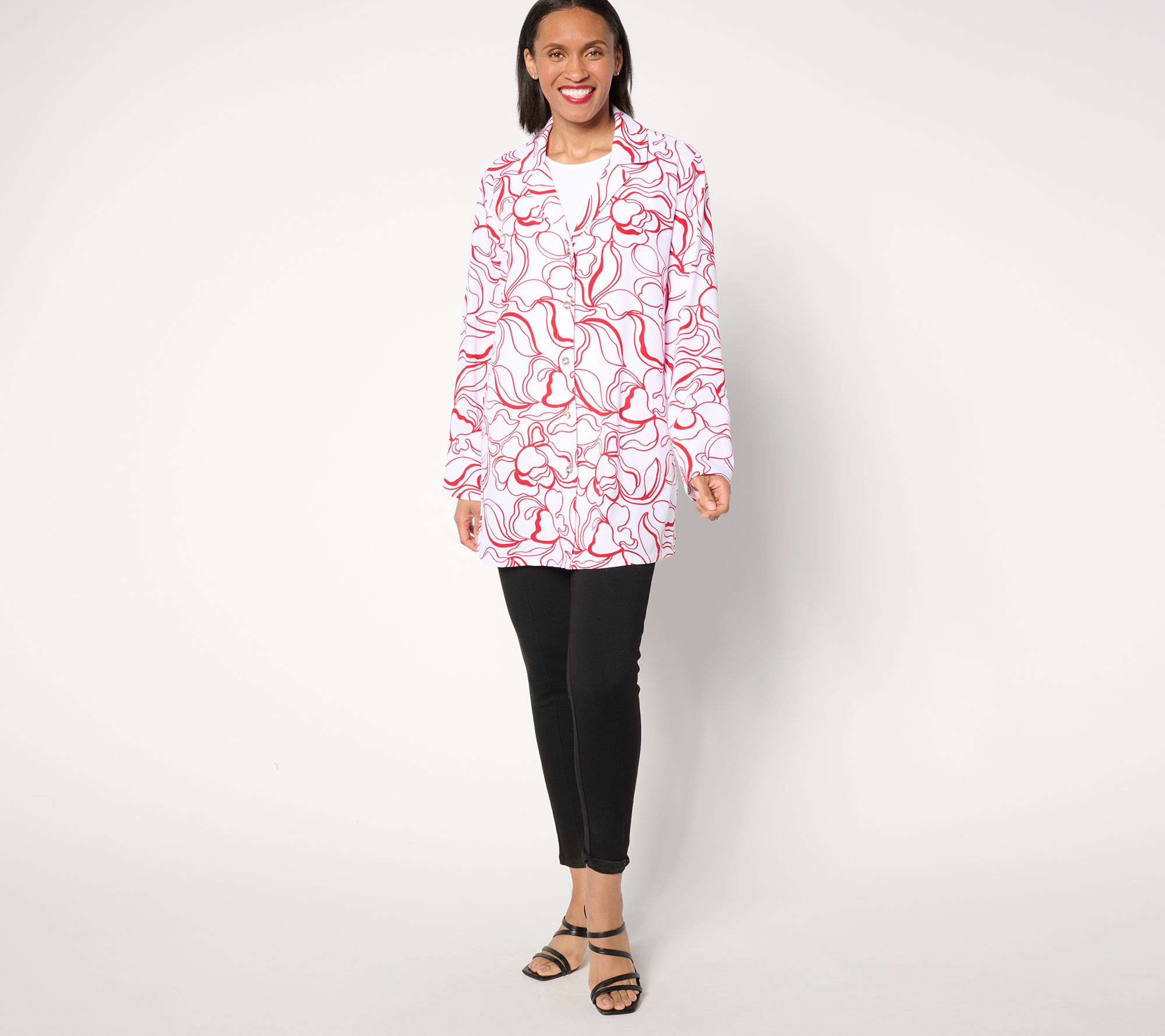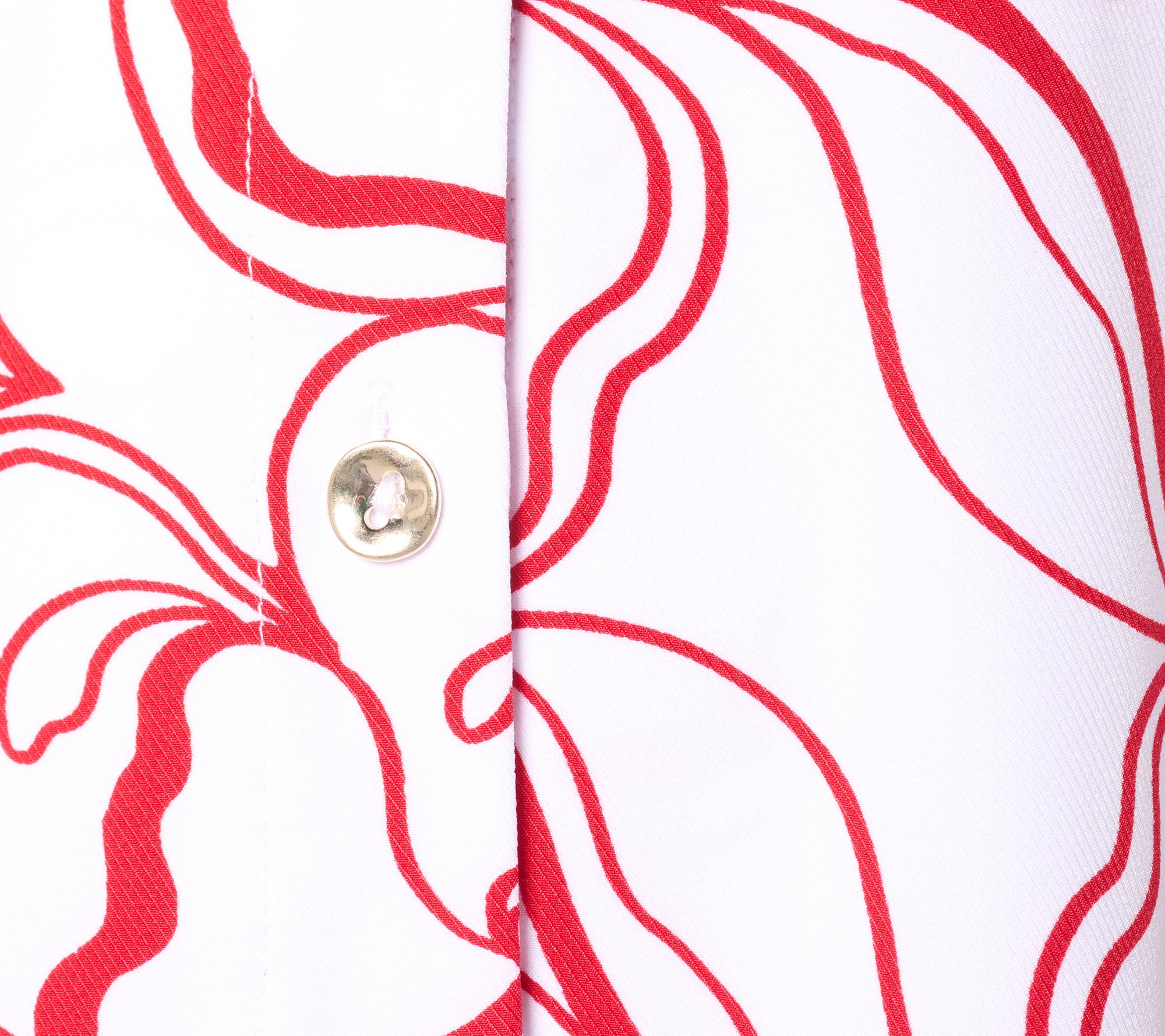 Show up at your next social engagement wearing this chic button-front tunic and its perky print is sure to turn heads. The relaxed fit makes it effortless to be stylish all day and well into the night. From Dennis Basso.