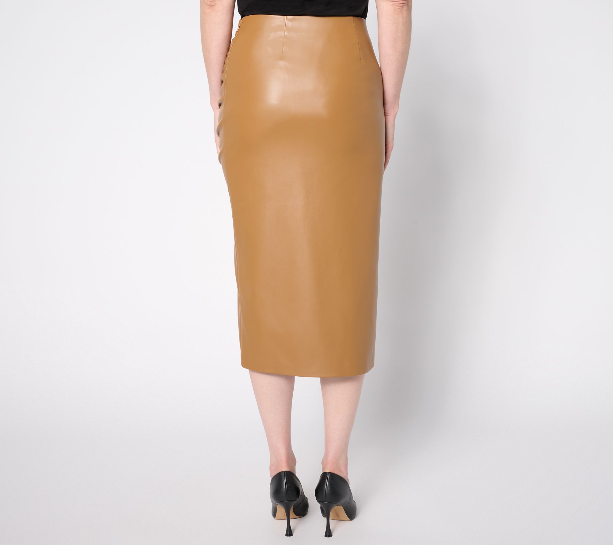 "As Is" Dennis Basso Regular Faux Leather Midi Skirt with Side Ruching