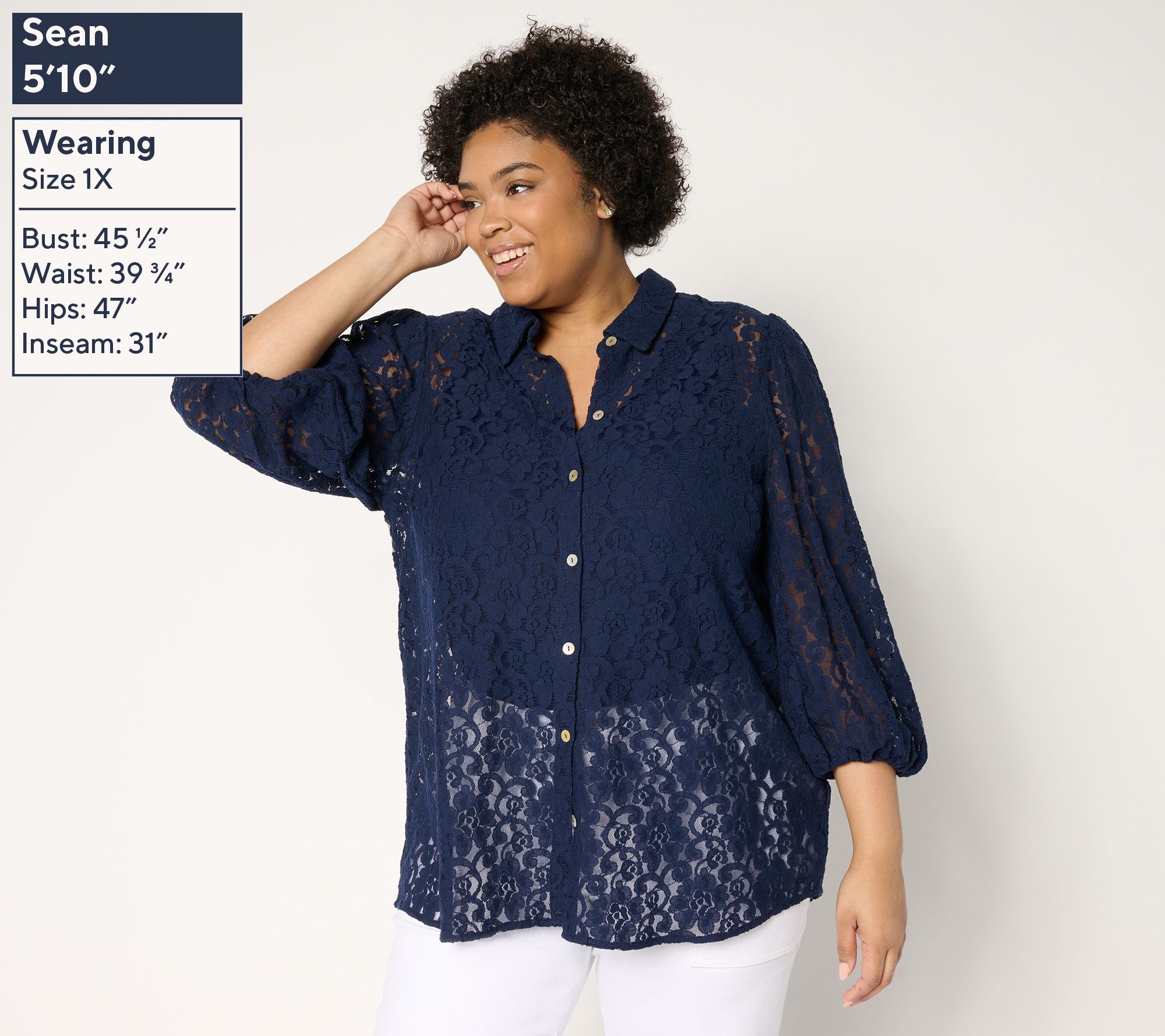 "As Is" Dennis Basso Regular Lace Button Front Tunic