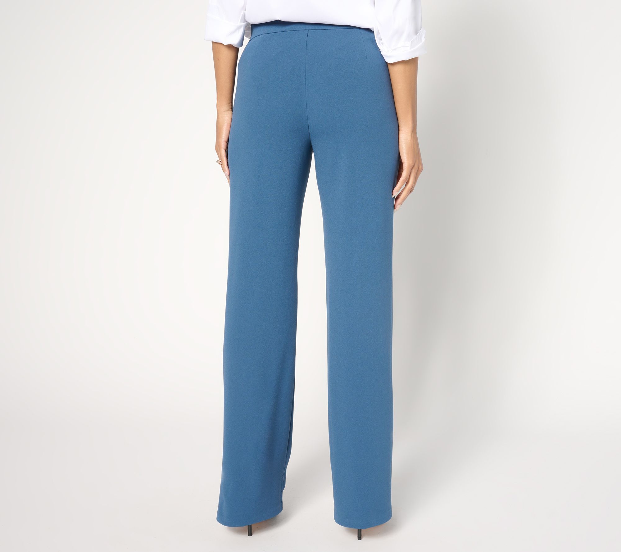 From the boardroom to the breakroom, these pull-on pants in Luxe Crepe are a must-have mix of enduring polish and sneaky comfort. Slits at the hems let the boot-cut style log some serious hours with heeled boots and pumps. From Dennis Basso.