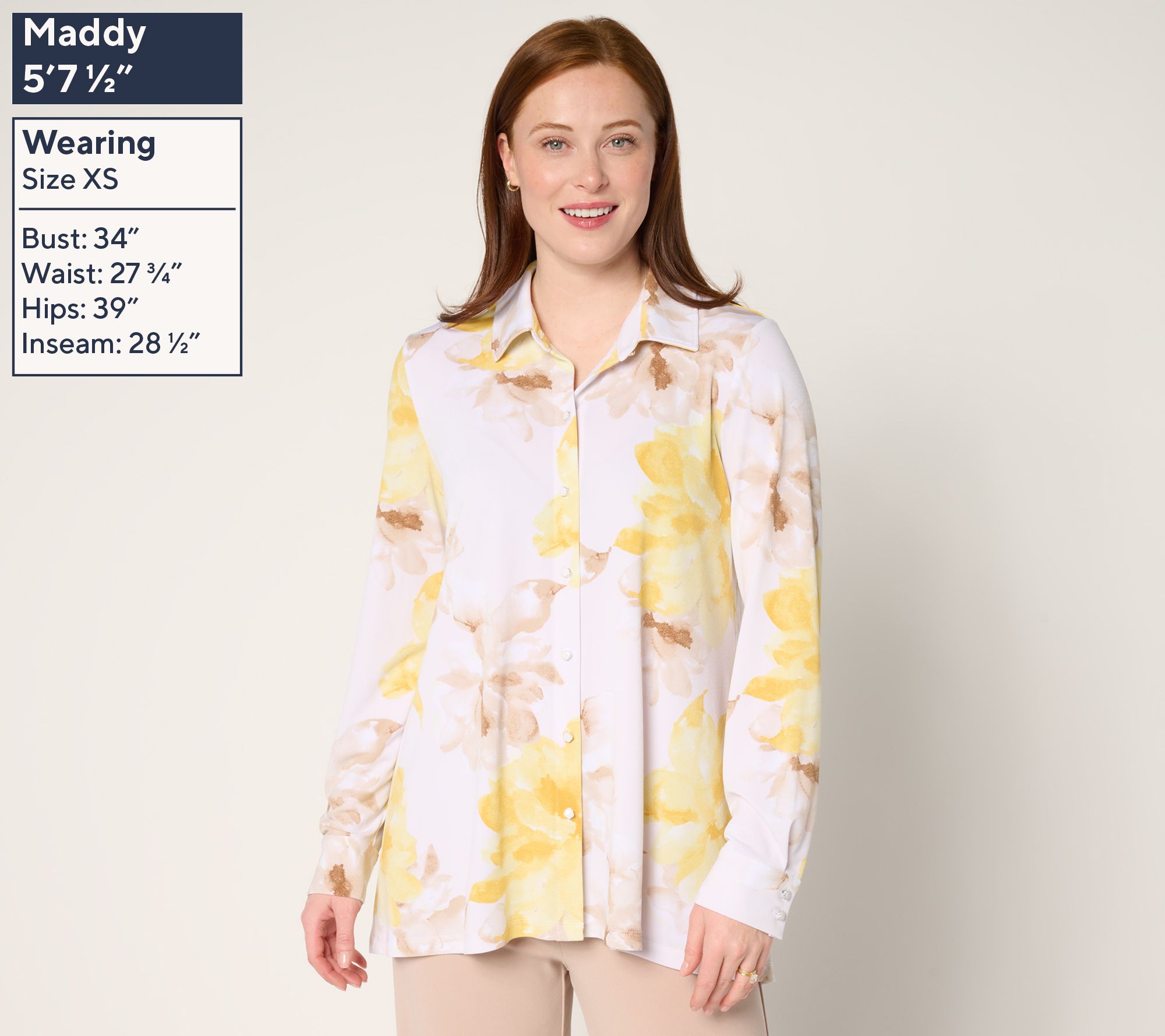 "As Is" Dennis Basso Regular Printed Caviar Crepe Top with Enamel Buttons